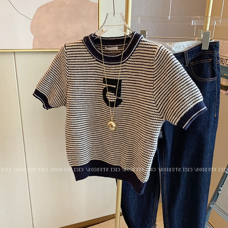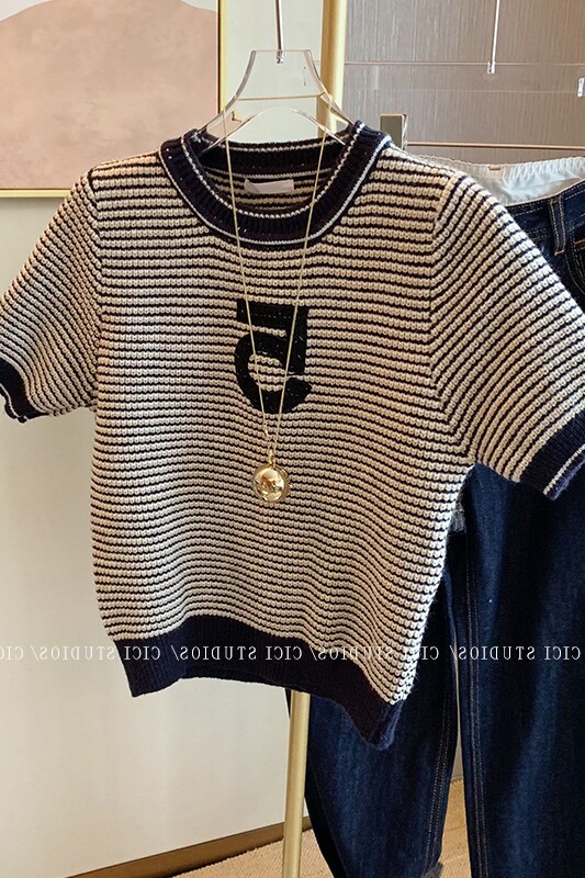 Трикотажный свитер, весенняя летняя короткая рубашка с круглым воротником, в стиле Шанель, коллекция 2022, короткий рукав