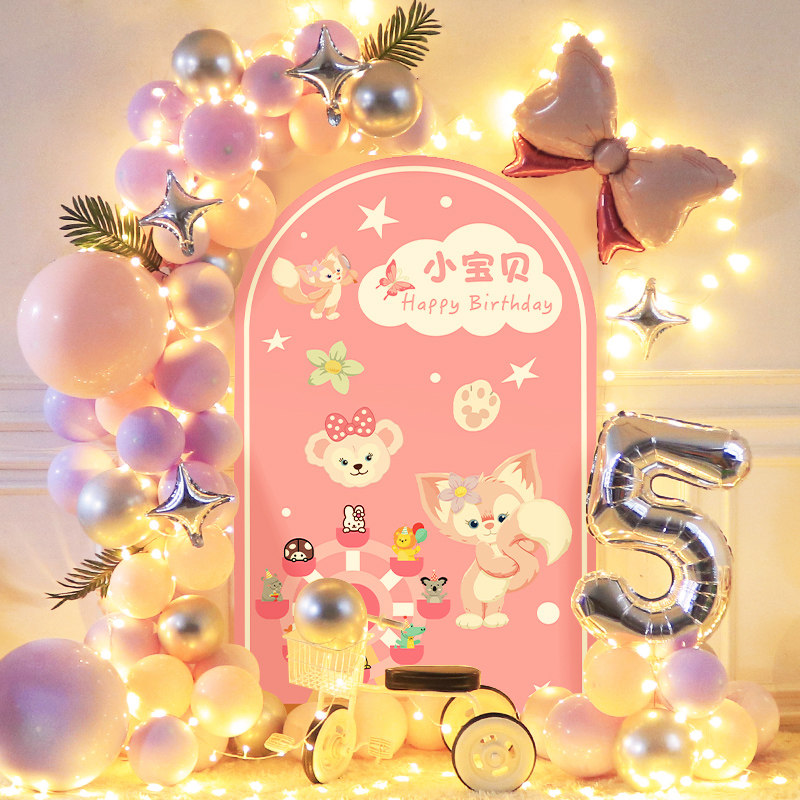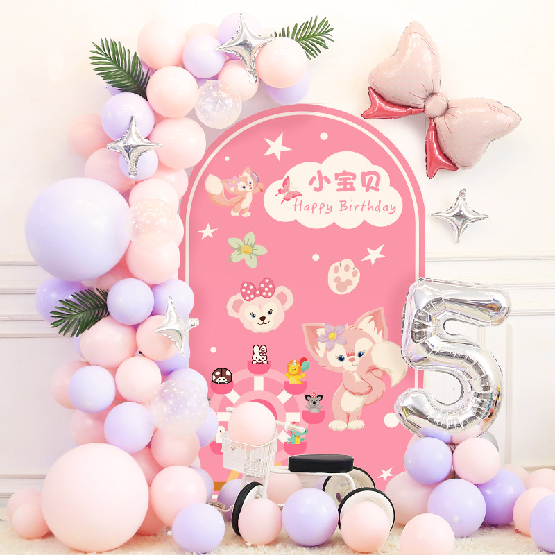 女孩生日布置玲娜贝儿气球装饰场景宝宝周岁宴琳娜贝尔背景墙