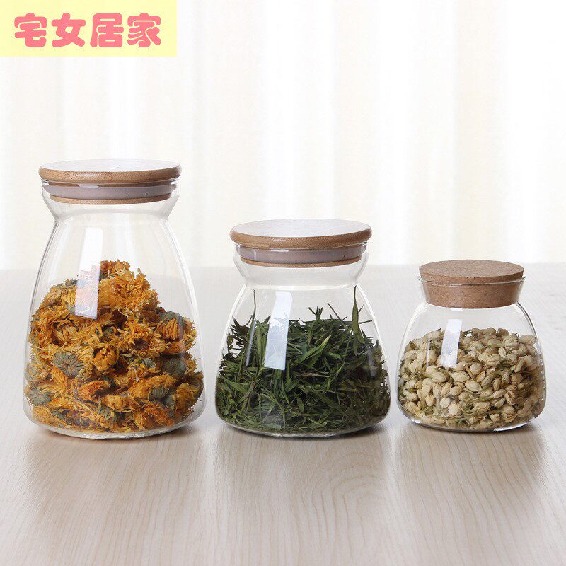 Стеклянный чай, коробочка для хранения, деревянная пробка с уплотнителем, стеклянная упаковка