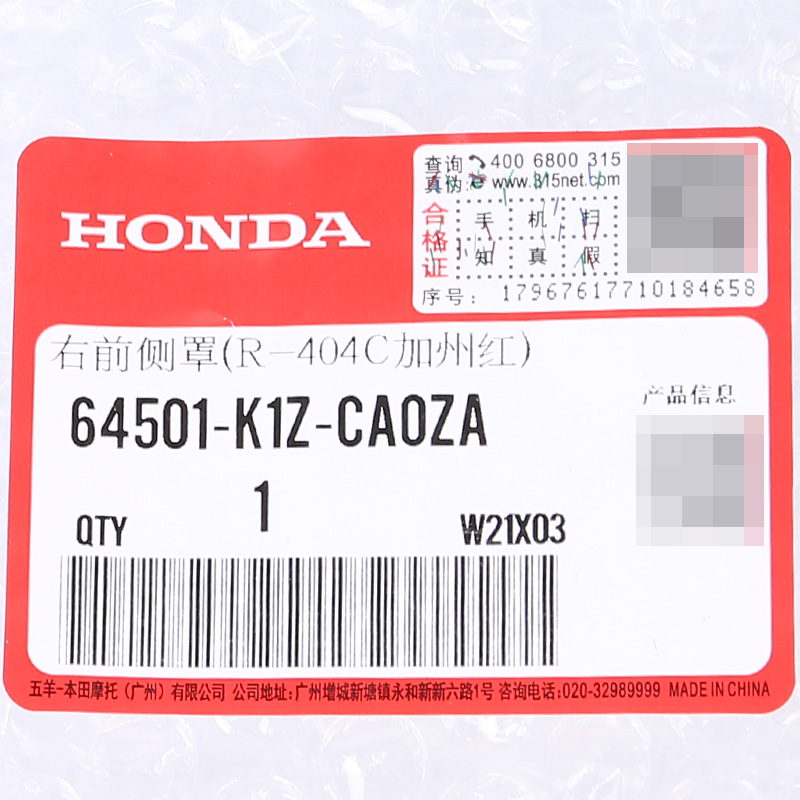 Wuyang Honda PCX160 Передняя сторона передней крышки передней крышки Honda -Director -Diport Side Guard Band (подлинная)