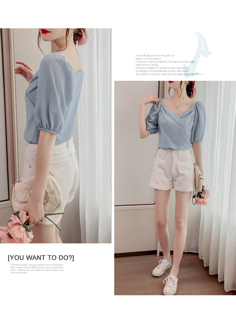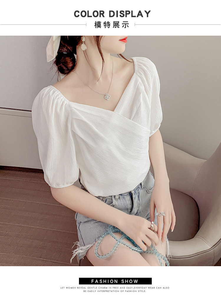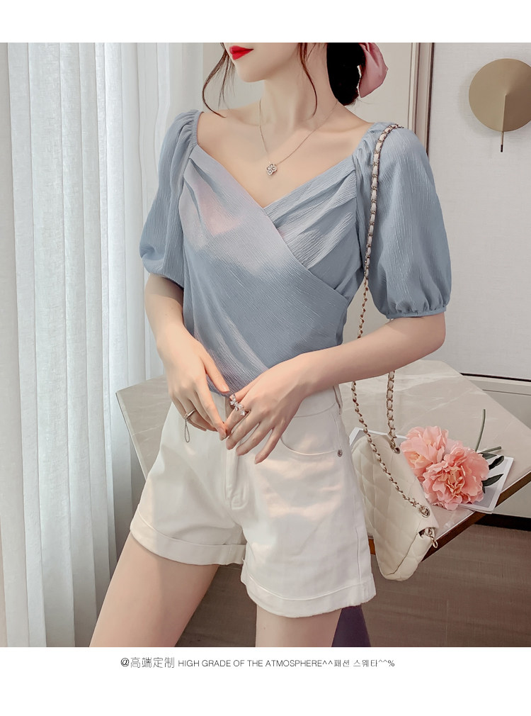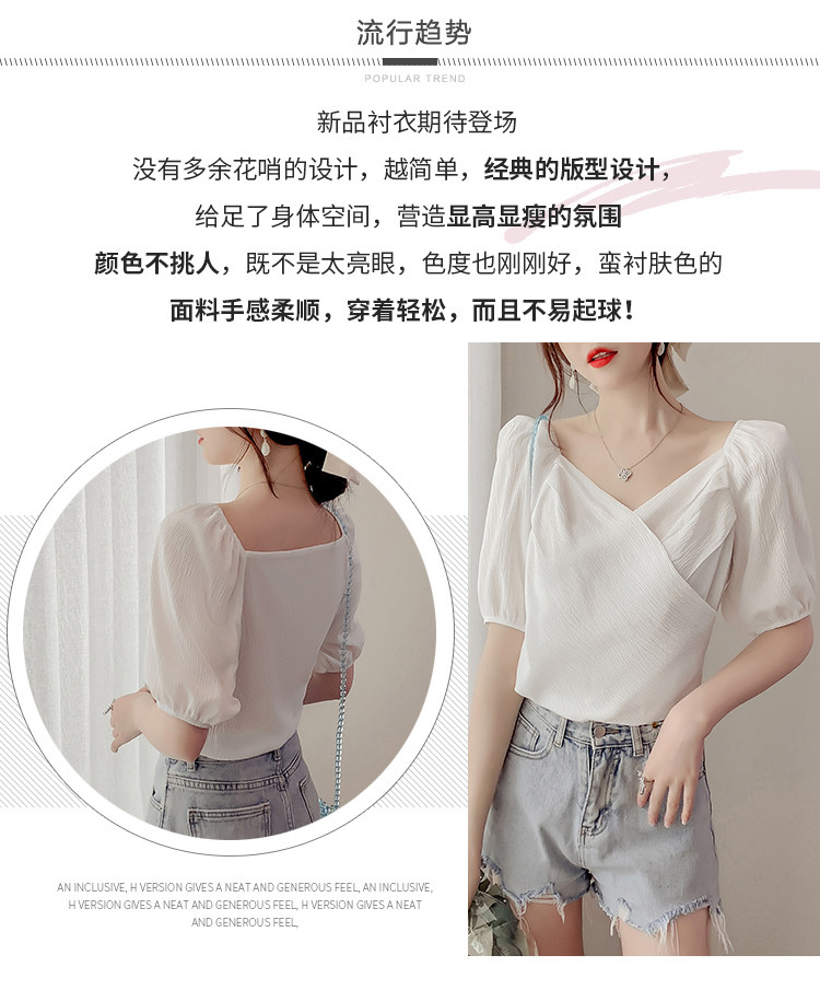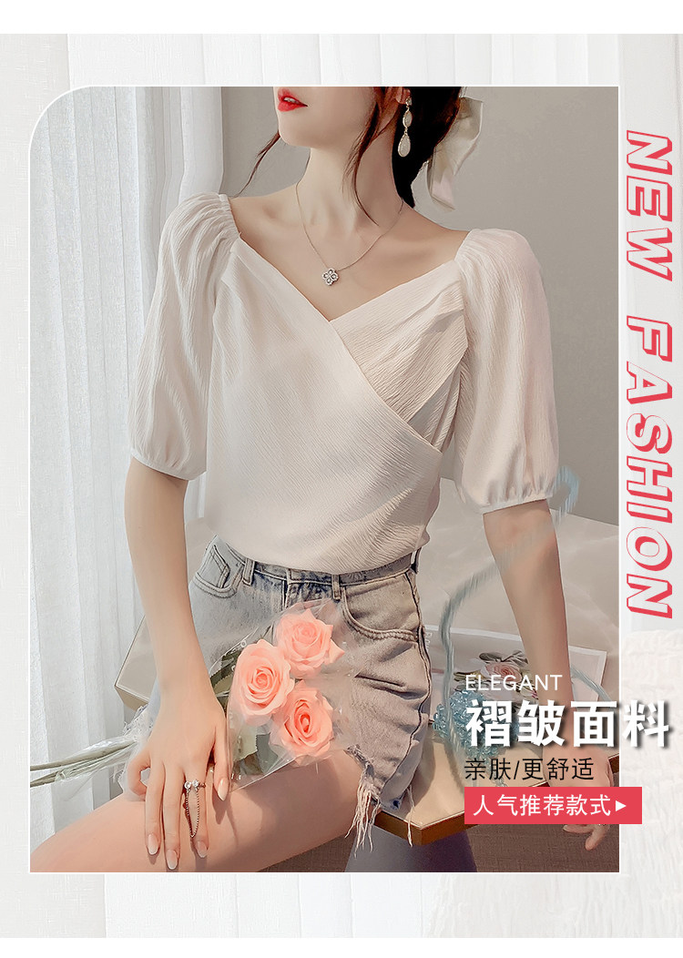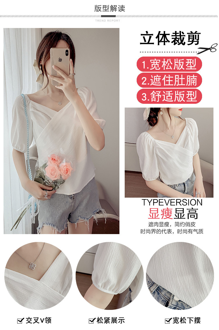 Белая рубашка, дизайнерская летняя одежда, футболка с коротким рукавом, тренд сезона, V-образный вырез, французский стиль, в западном стиле