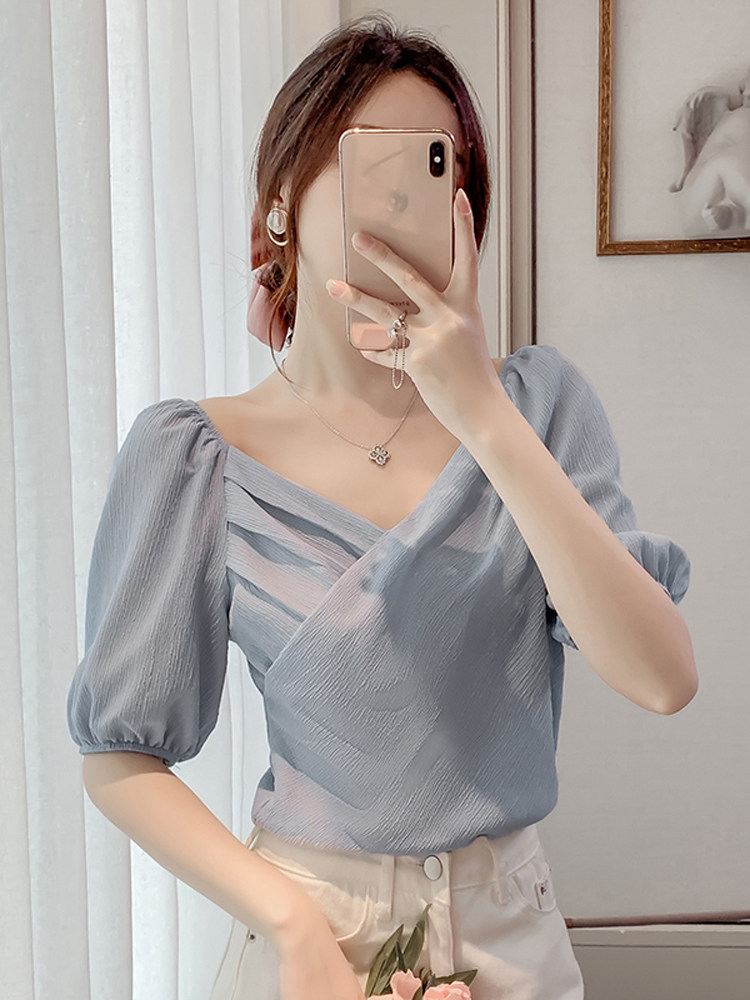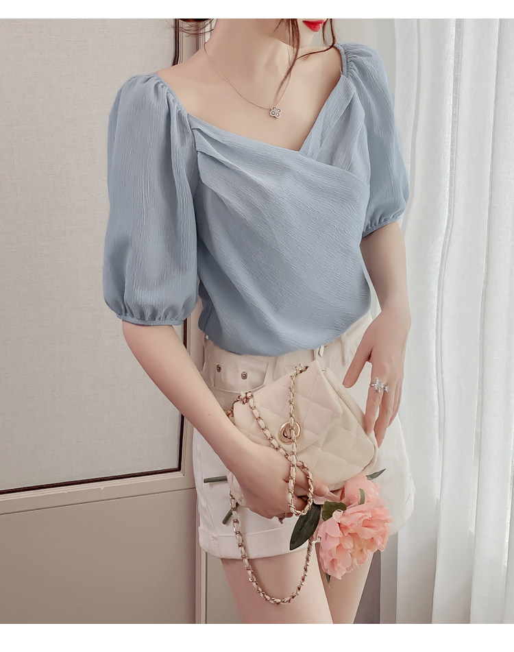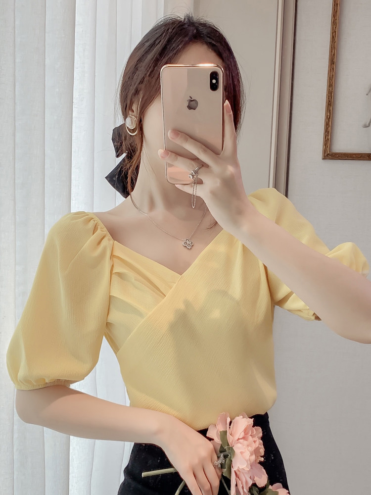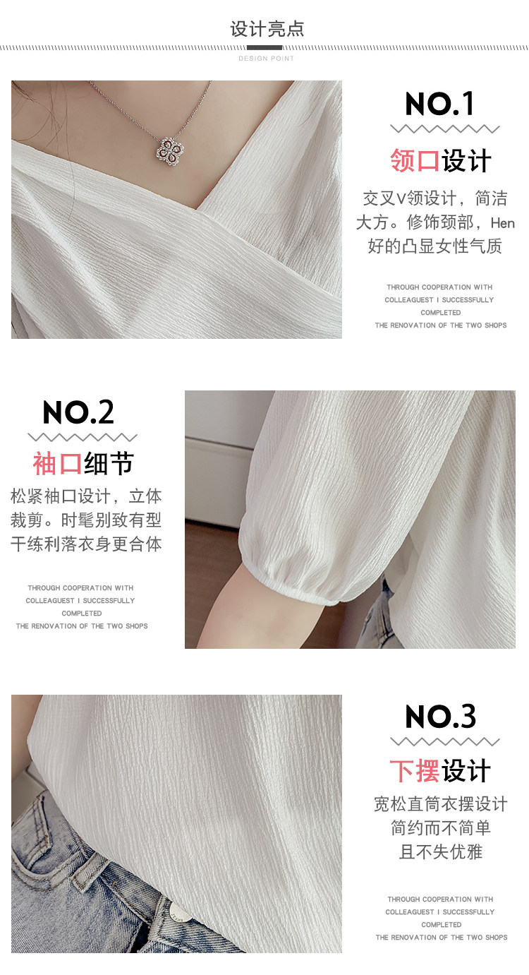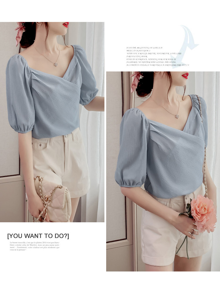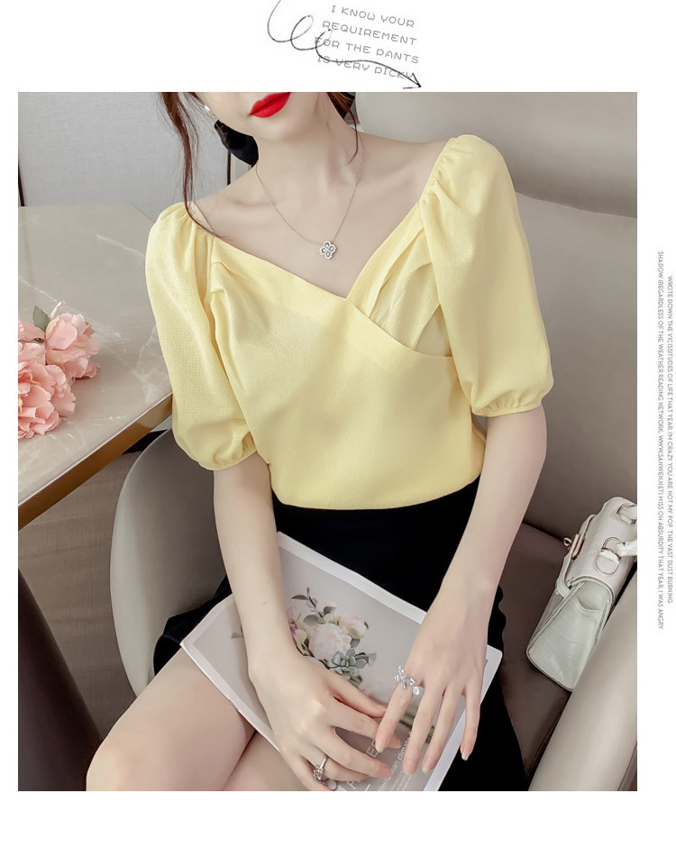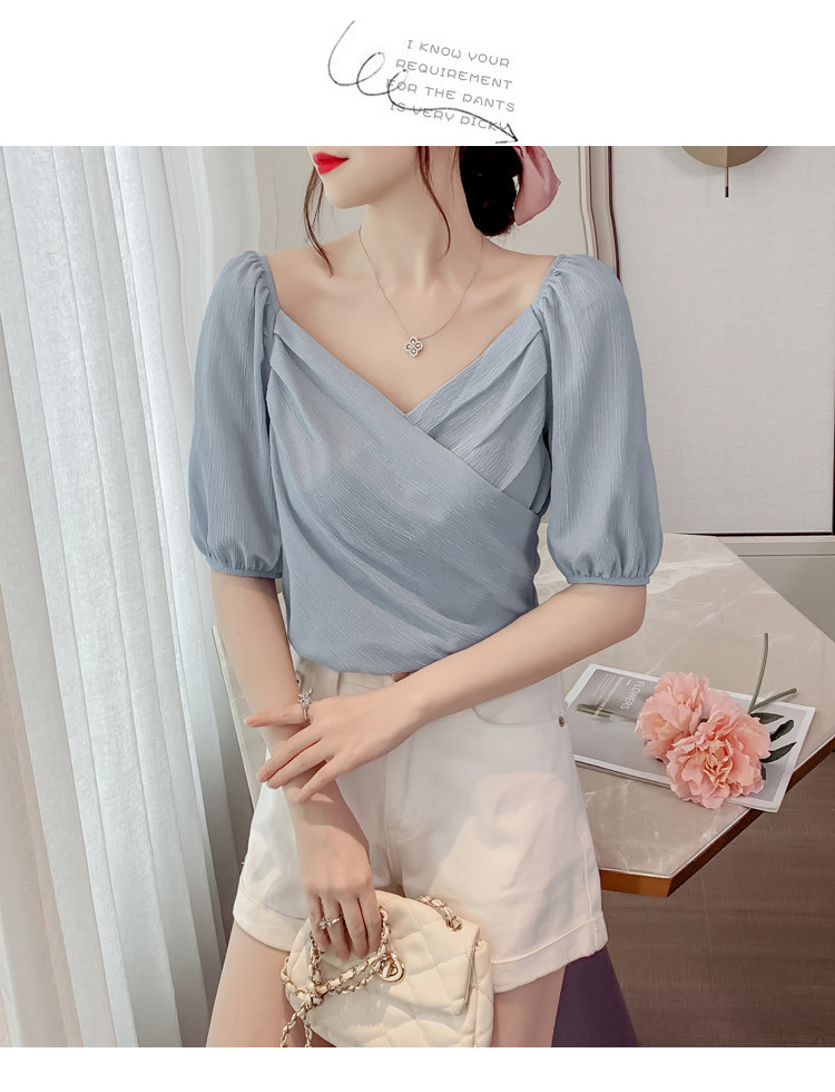 Белая рубашка, дизайнерская летняя одежда, футболка с коротким рукавом, тренд сезона, V-образный вырез, французский стиль, в западном стиле