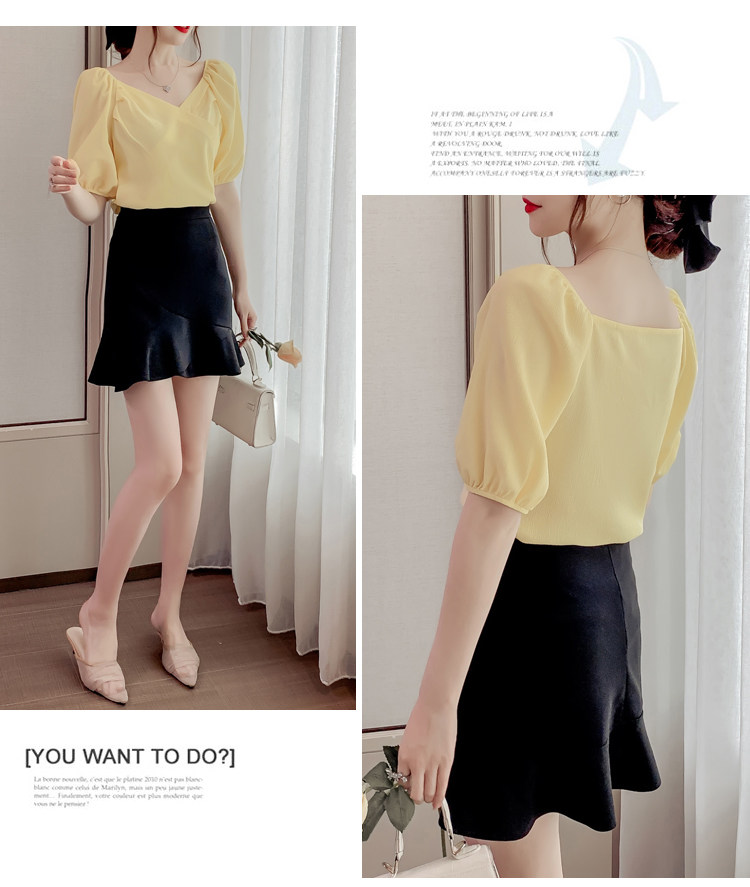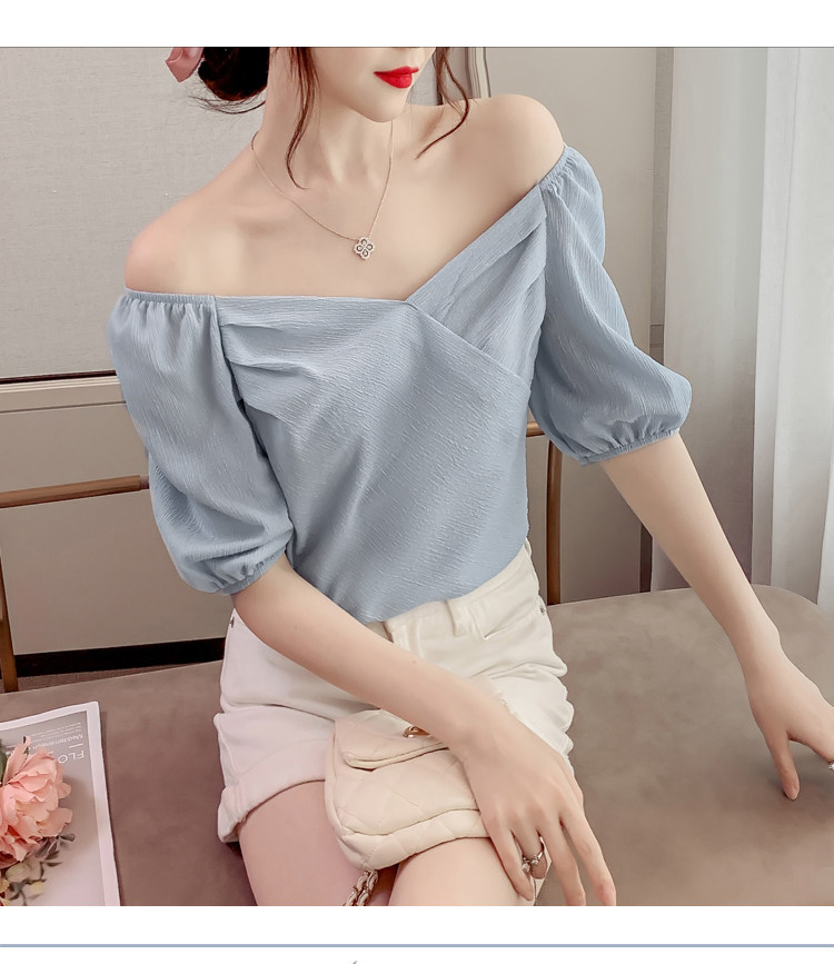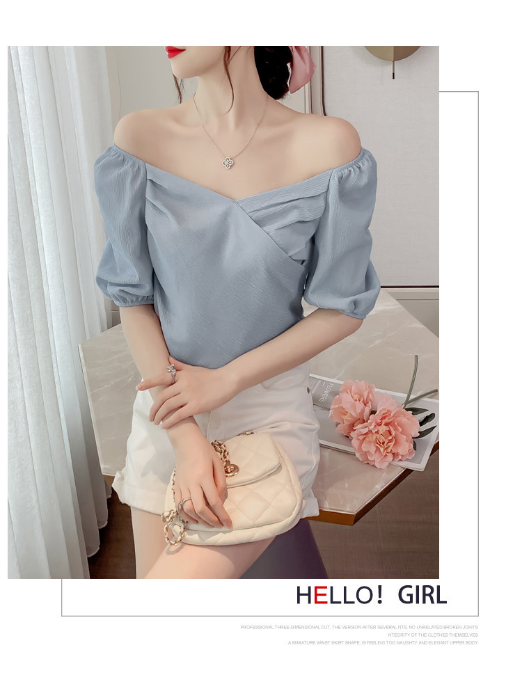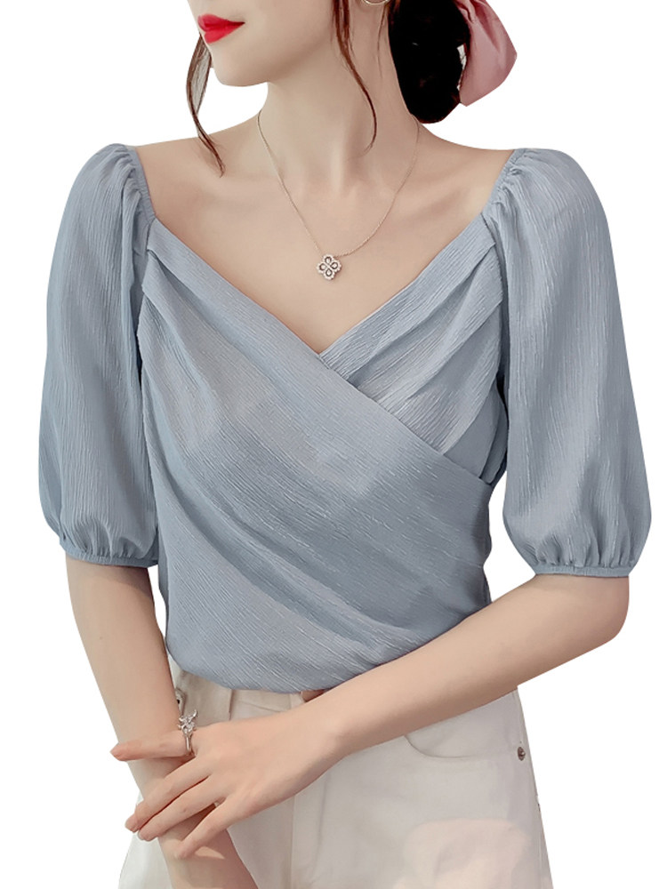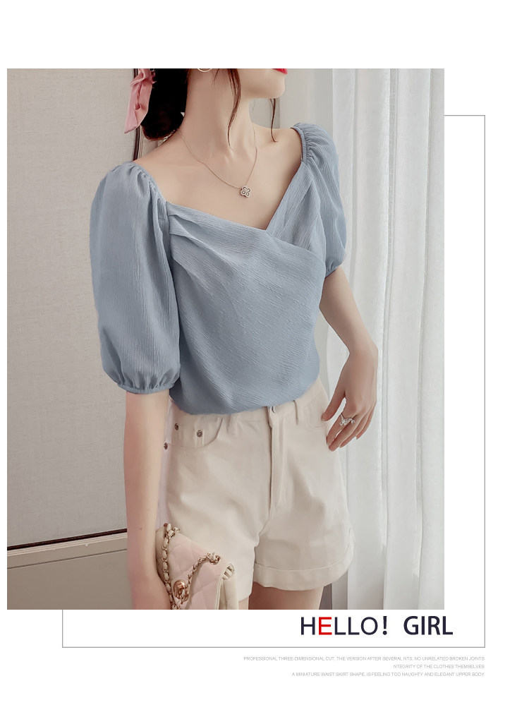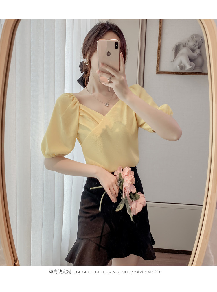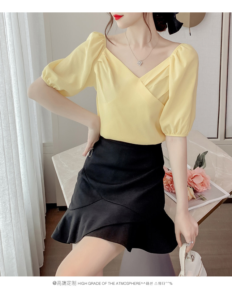 Белая рубашка, дизайнерская летняя одежда, футболка с коротким рукавом, тренд сезона, V-образный вырез, французский стиль, в западном стиле
