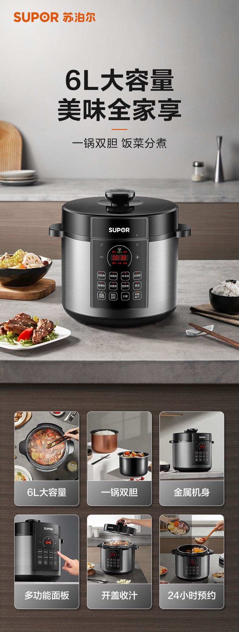Supor Electric Pligert Домохозяйство с большой емкостью с высокой высокой 6L.