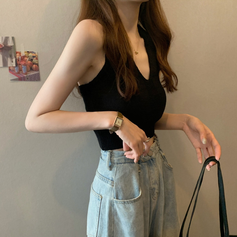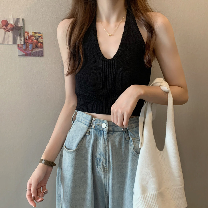 Дизайнерская сексуальная короткая базовая трикотажная майка топ, красивая спина, тренд сезона, V-образный вырез