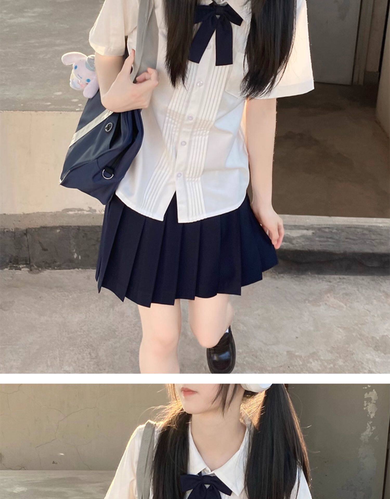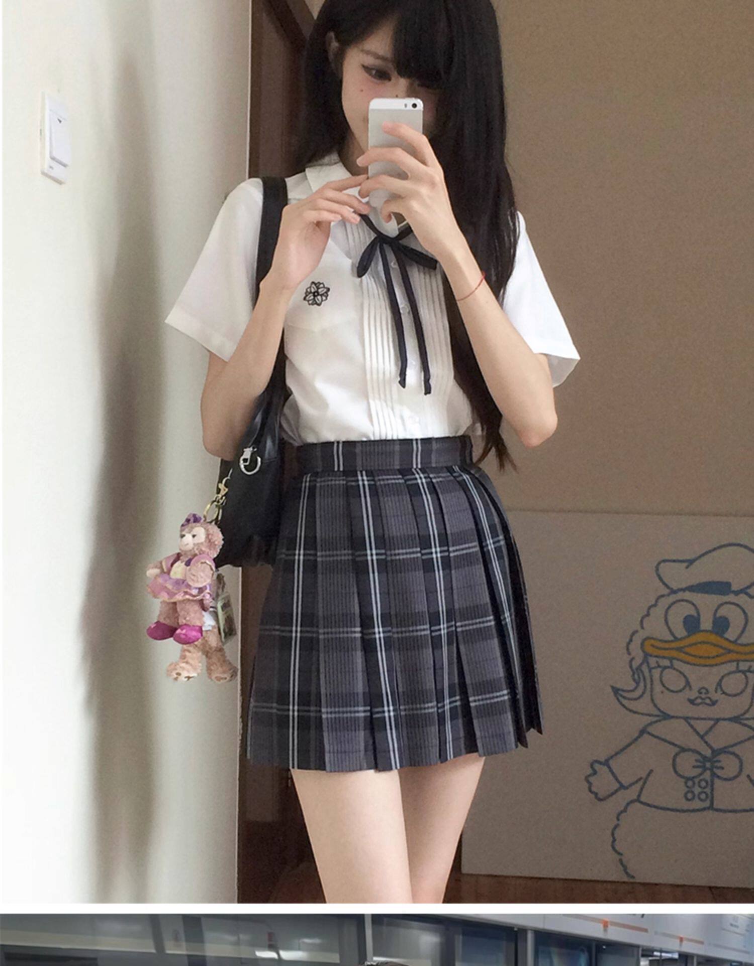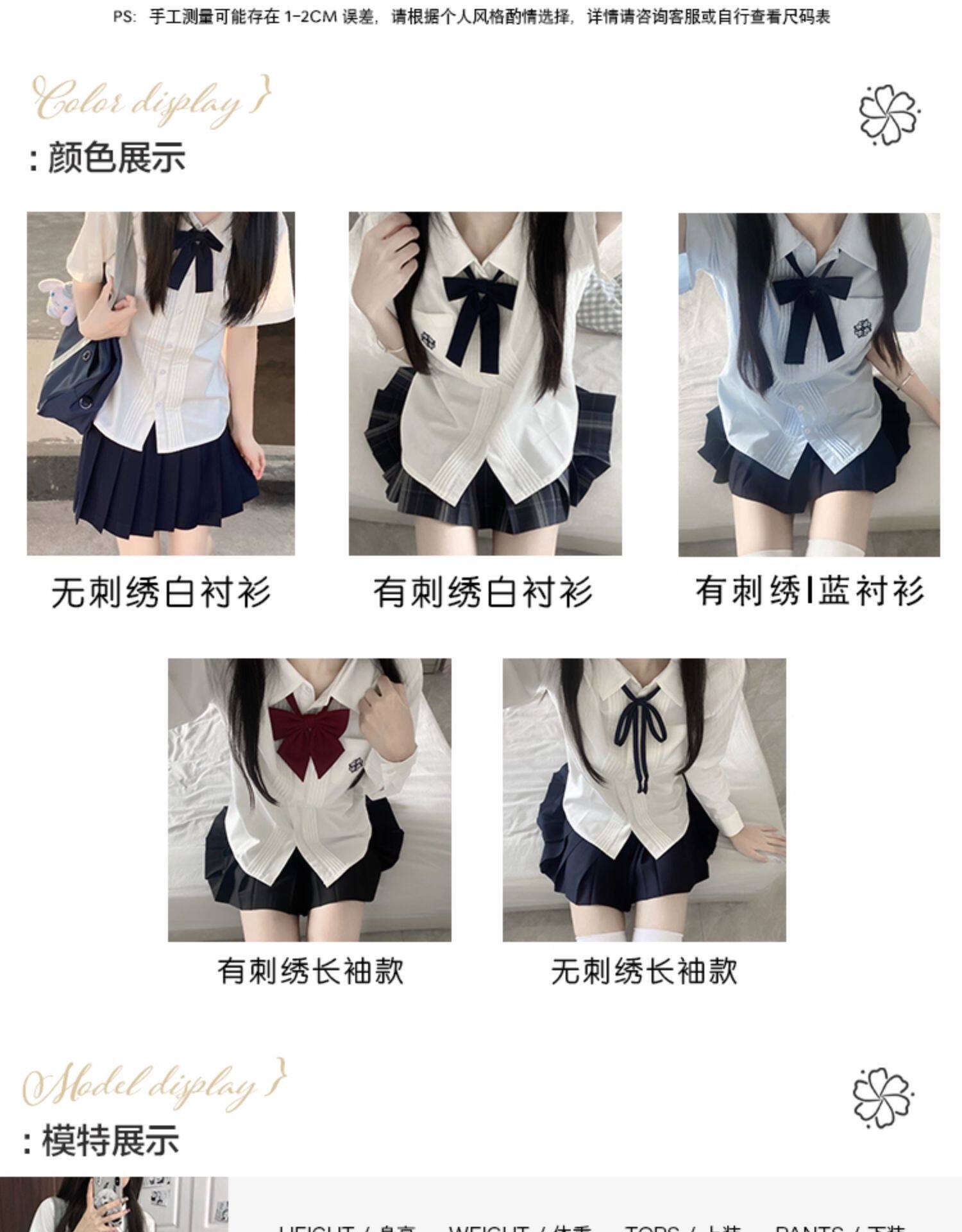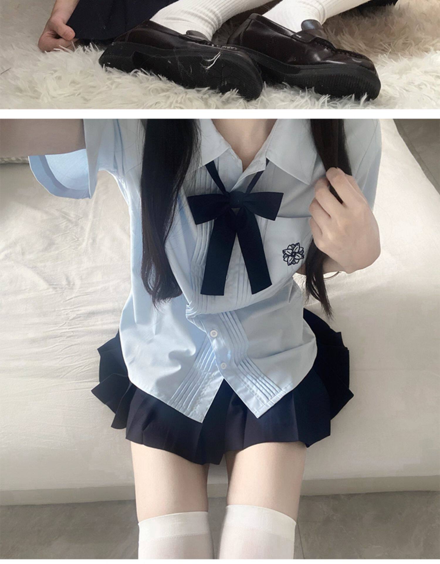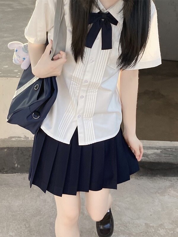 花千猪 Оригинальная рубашка, белый синий лонгслив, студенческая юбка в складку, короткий рукав, с вышивкой