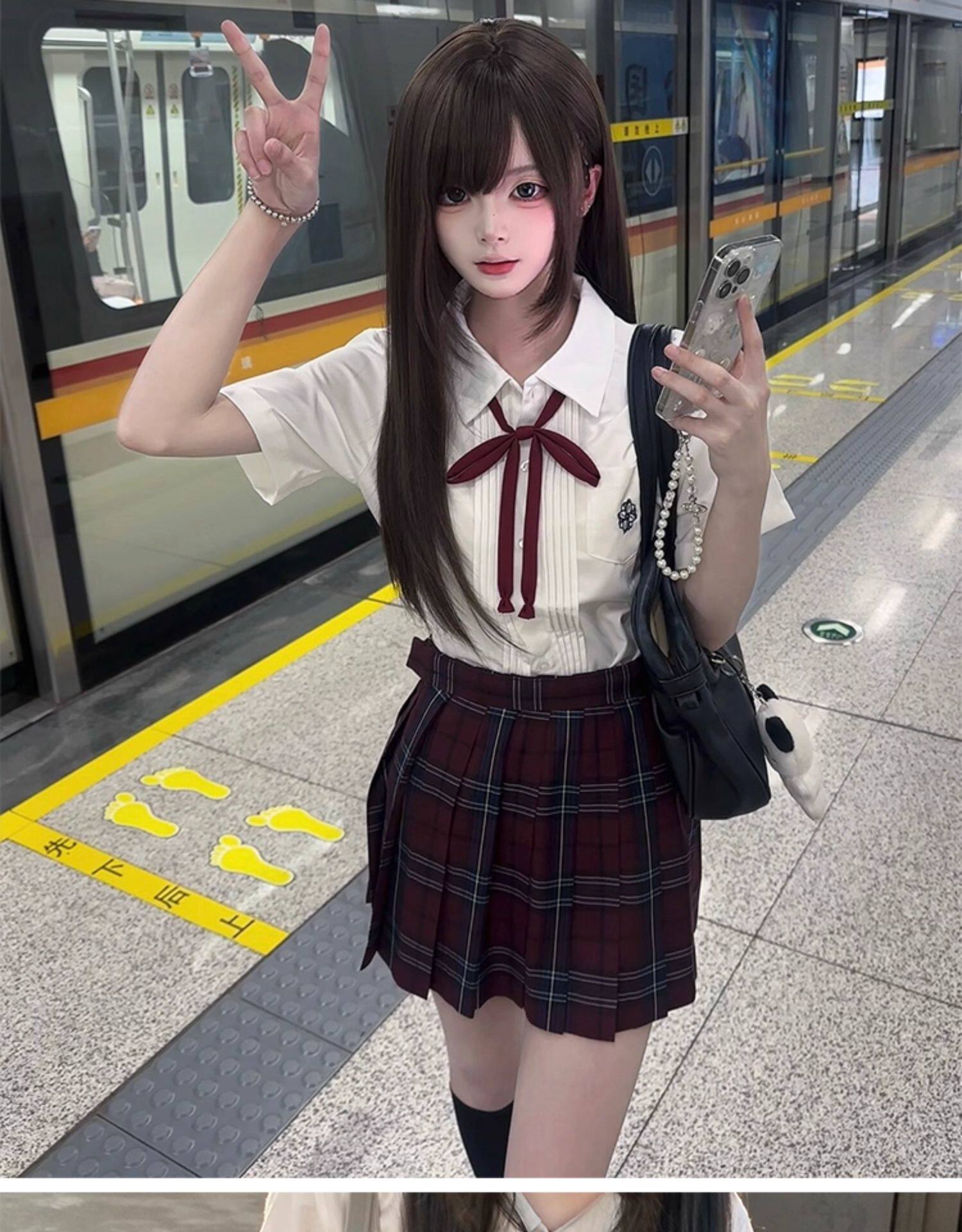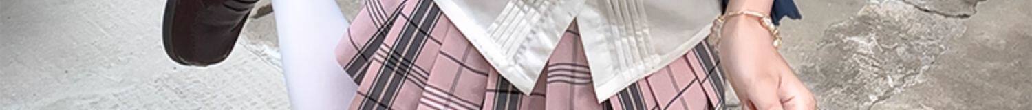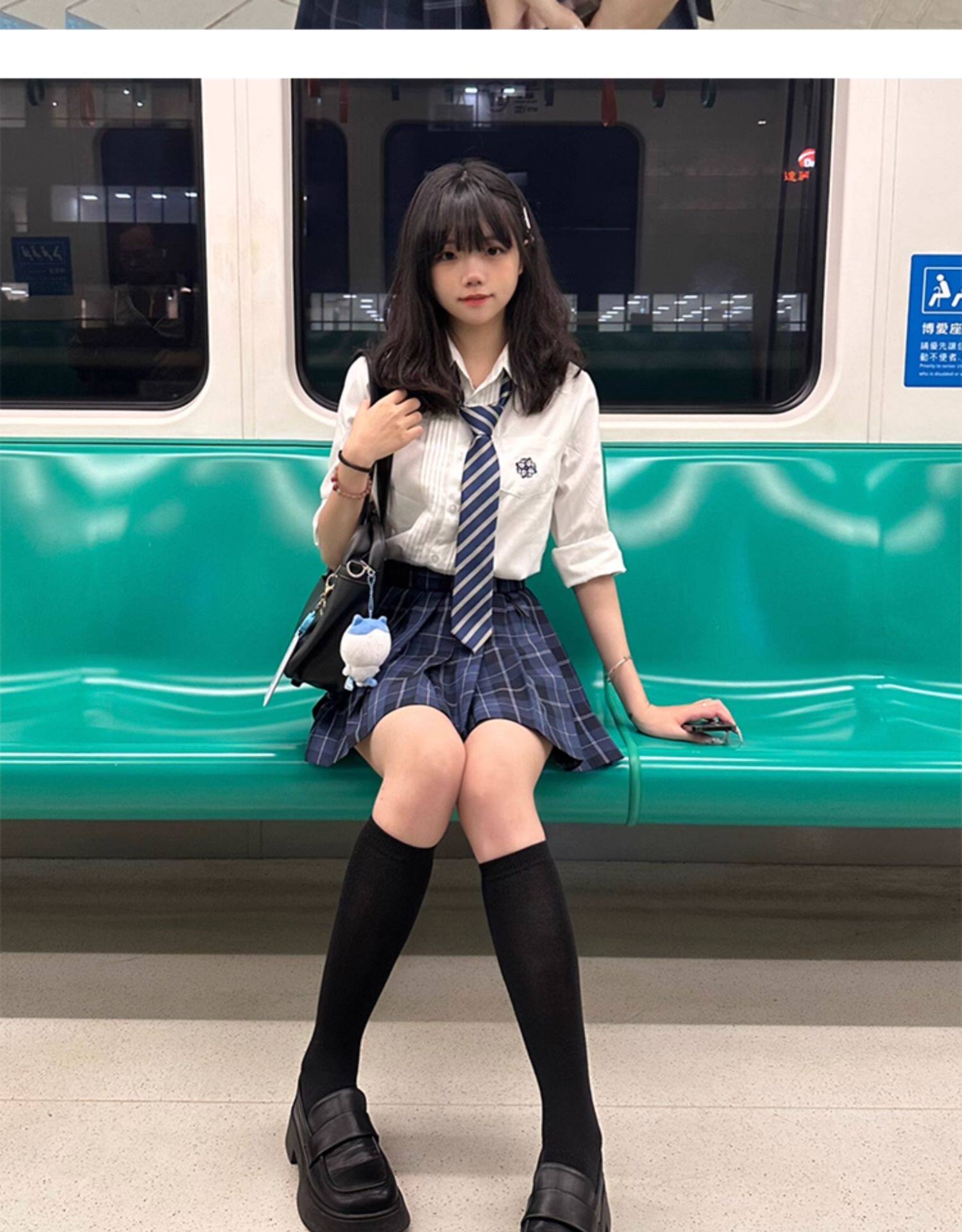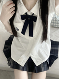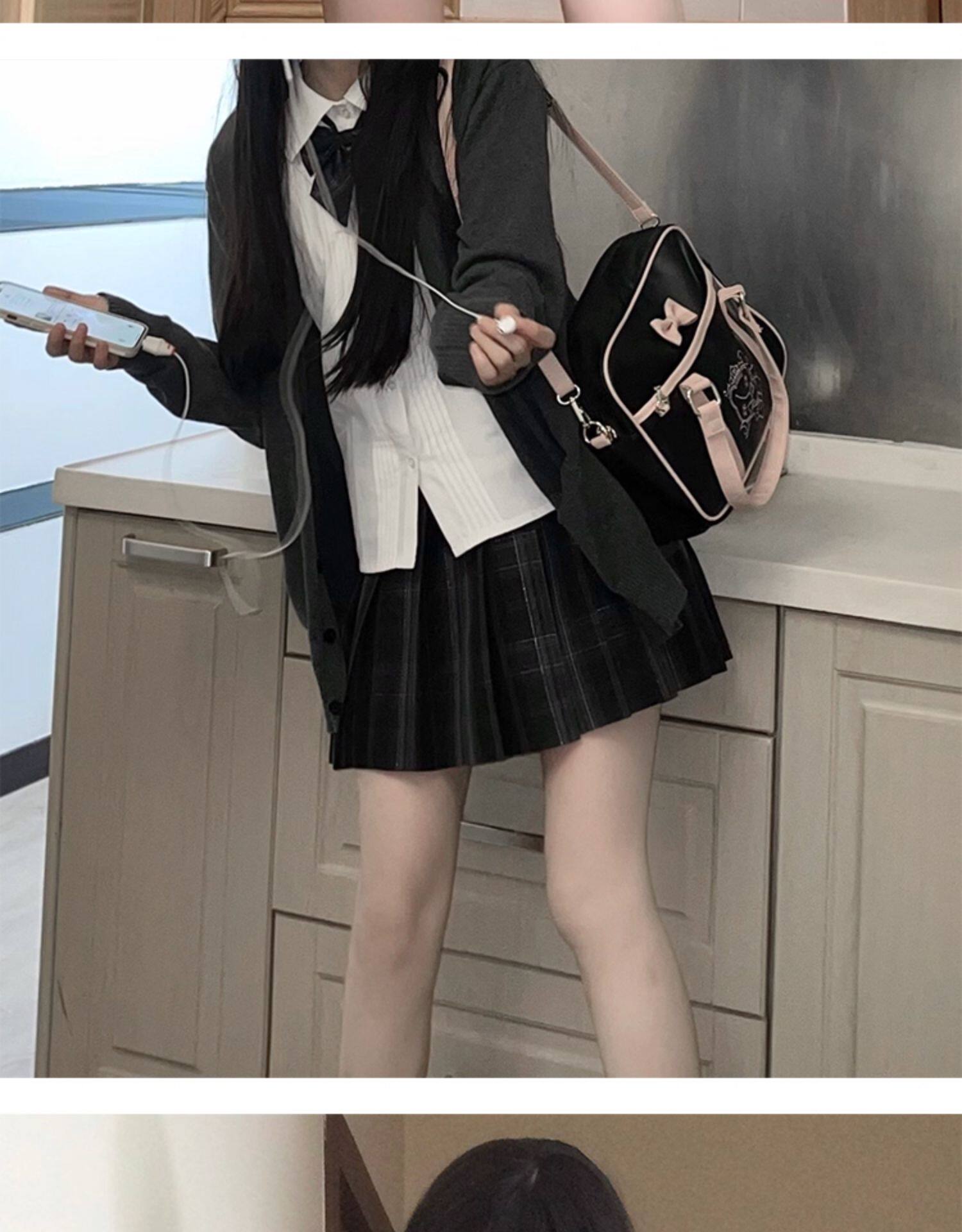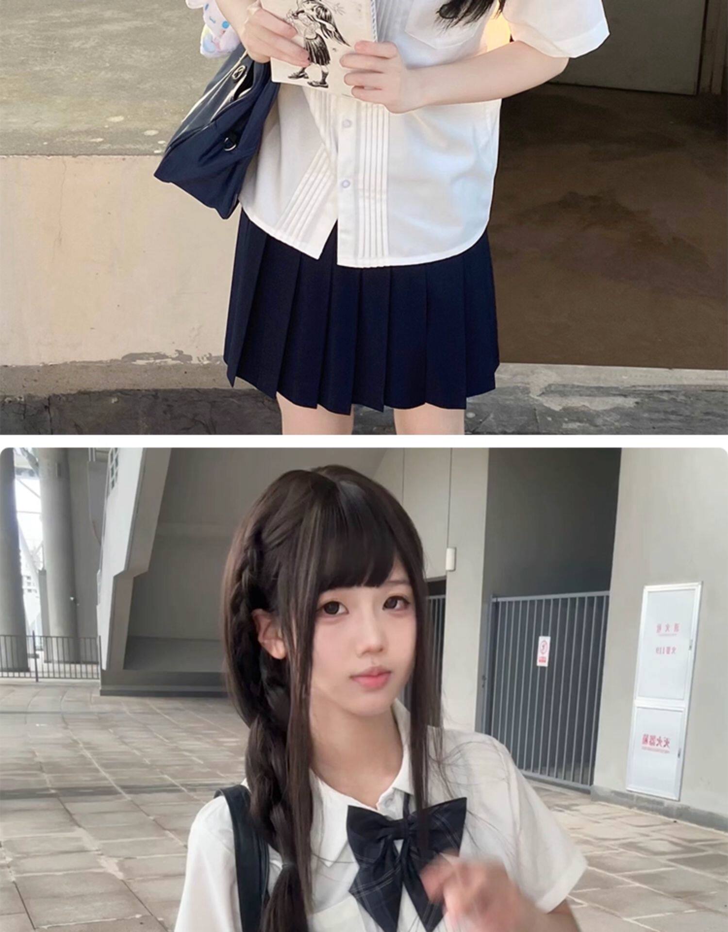 花千猪 Оригинальная рубашка, белый синий лонгслив, студенческая юбка в складку, короткий рукав, с вышивкой