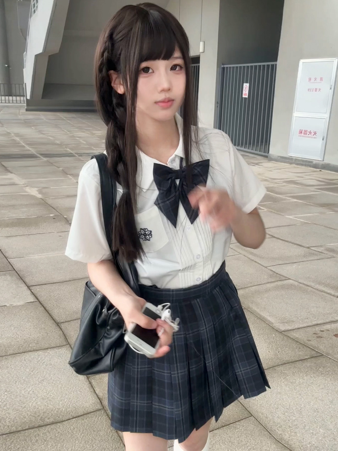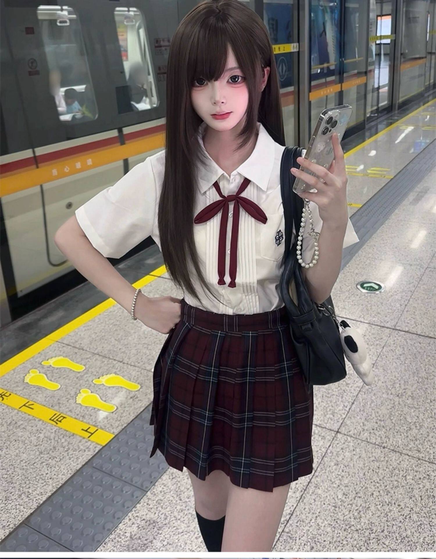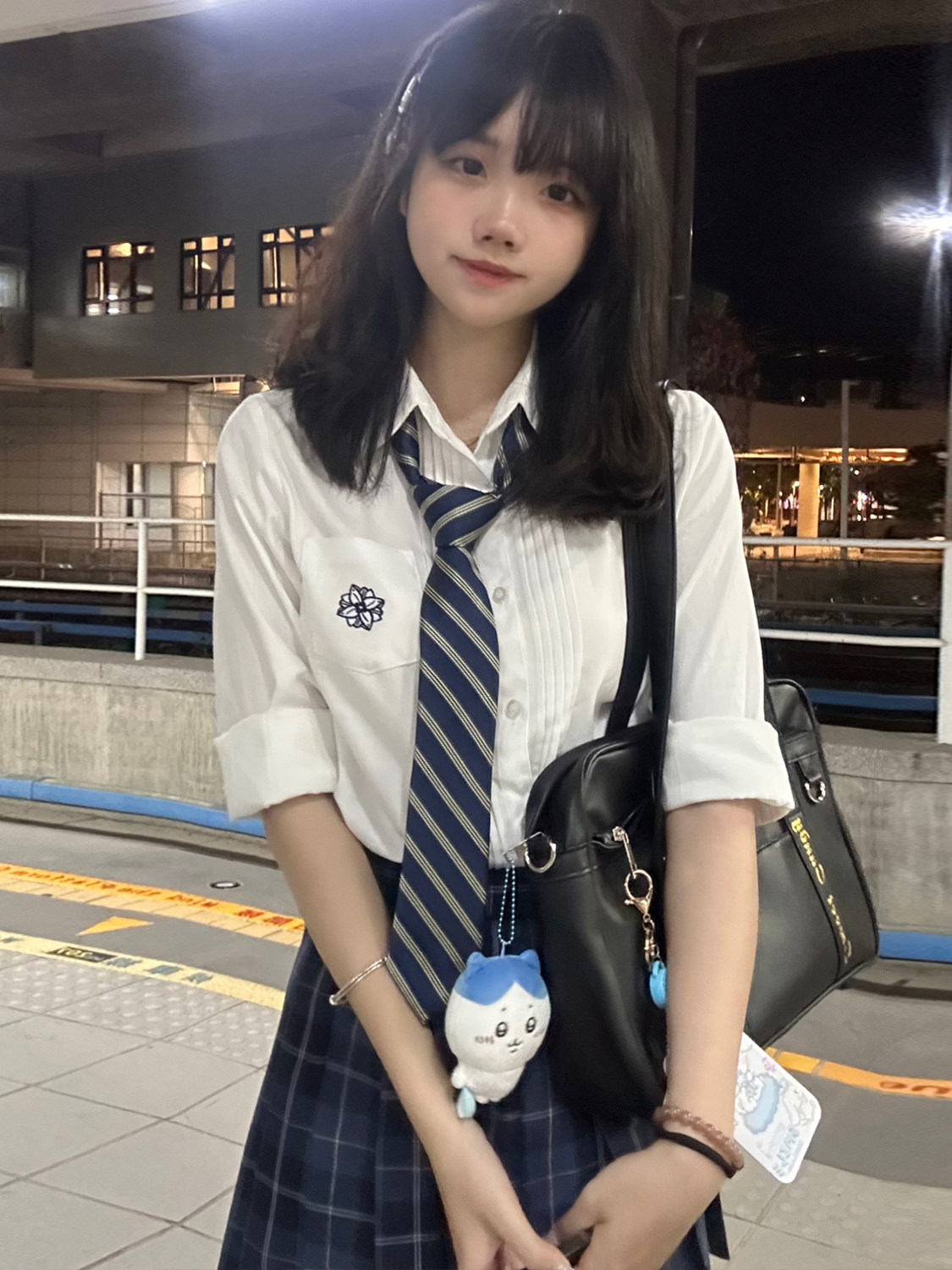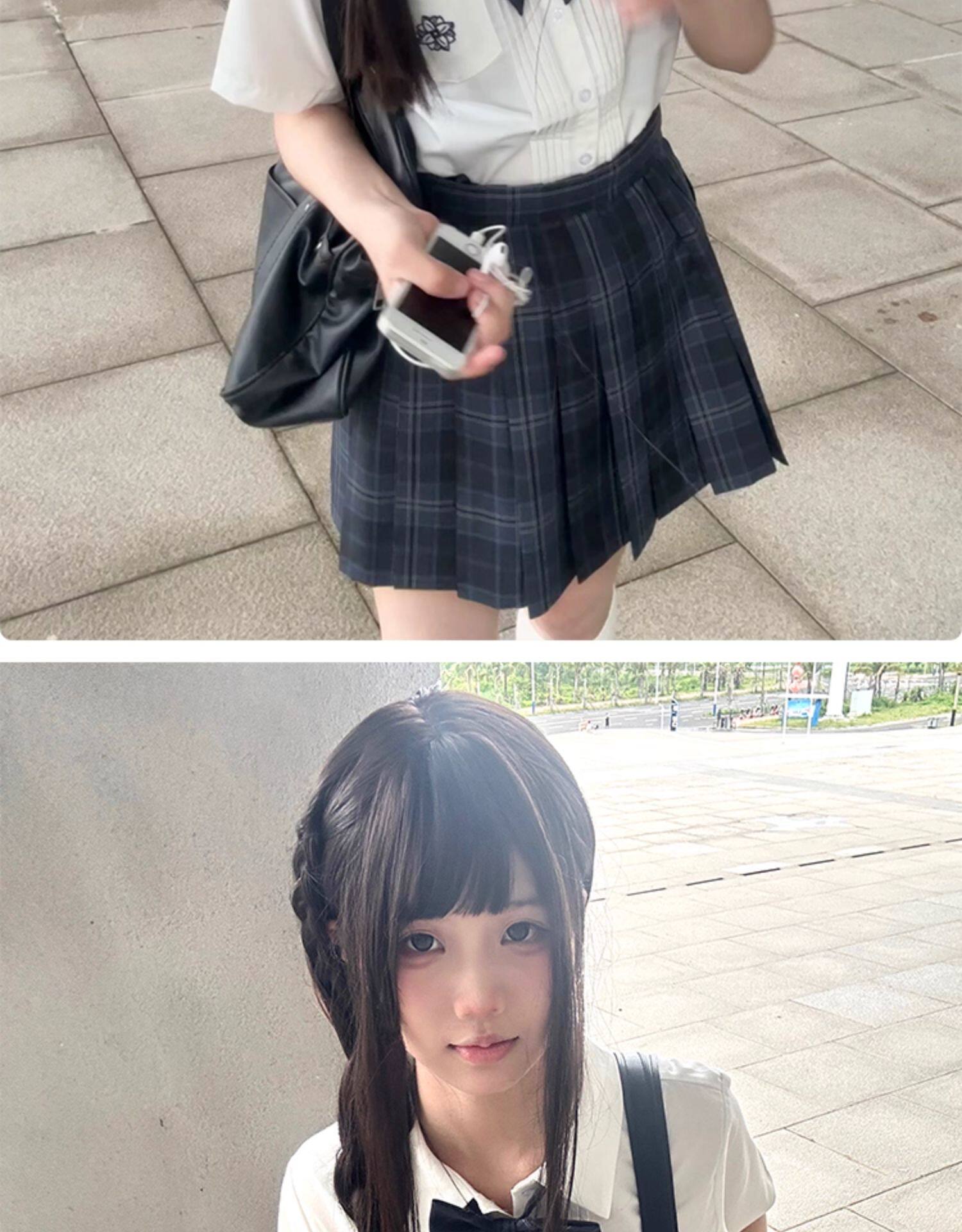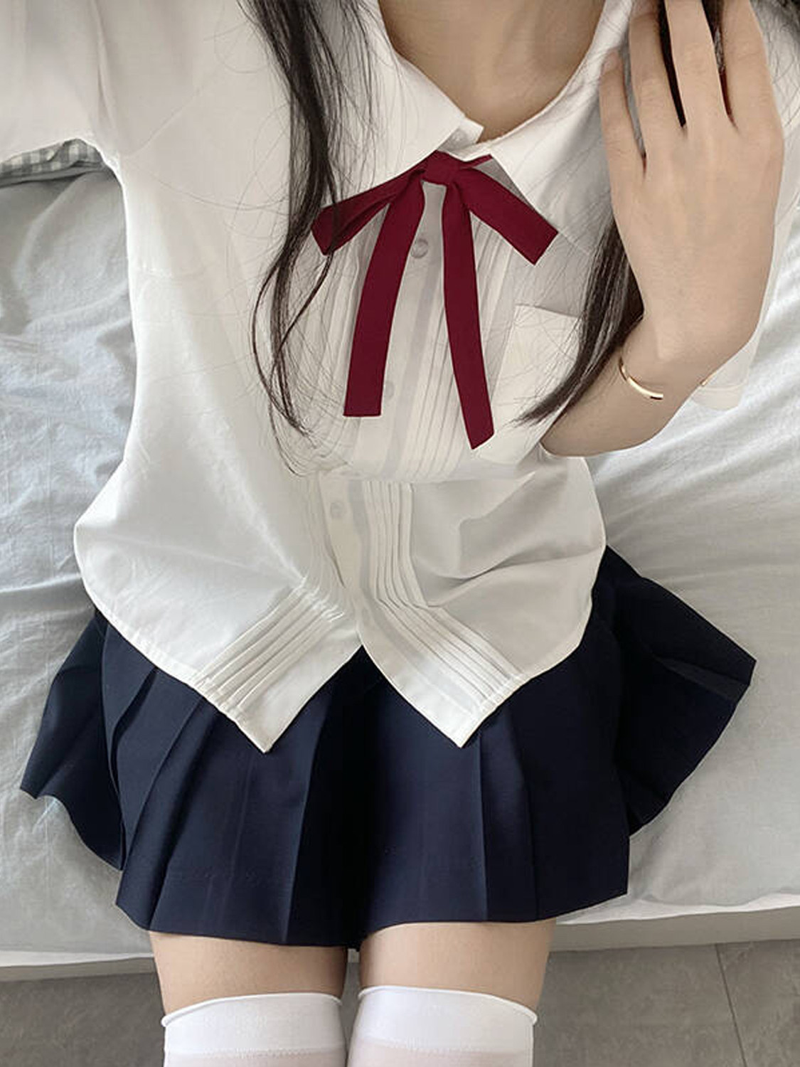 花千猪 Оригинальная рубашка, белый синий лонгслив, студенческая юбка в складку, короткий рукав, с вышивкой