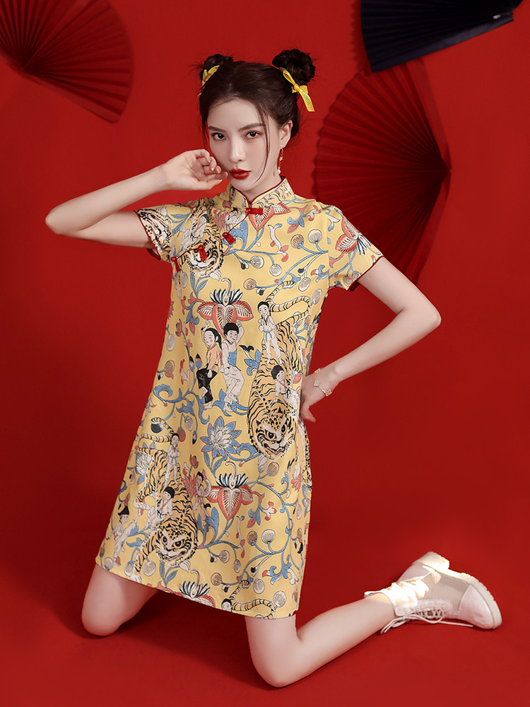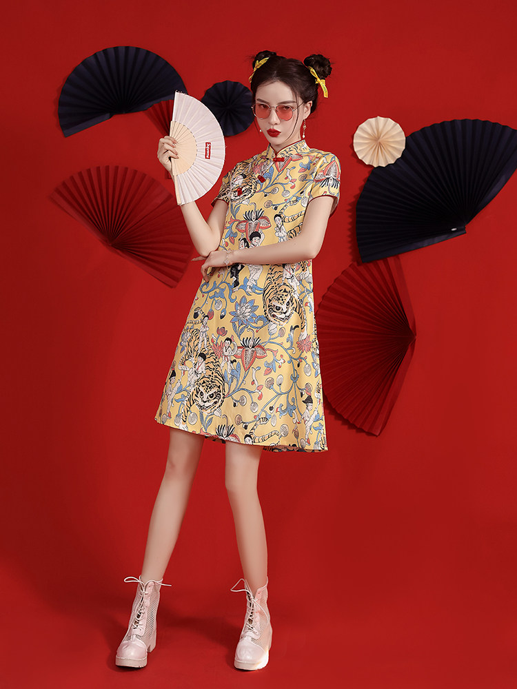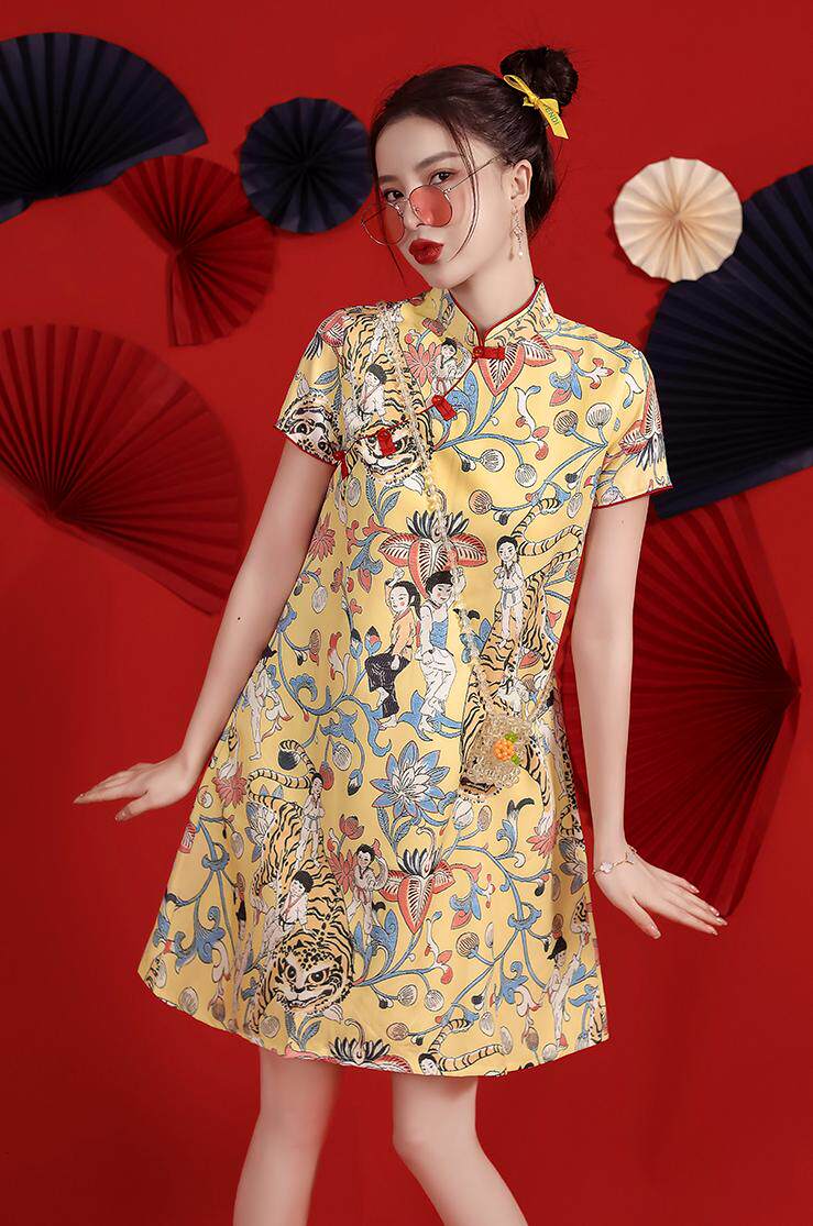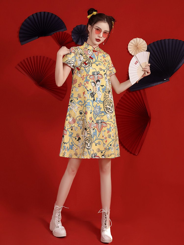 Легкое современное летнее ципао, платье, светлый стиль, оверсайз, китайский стиль