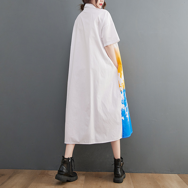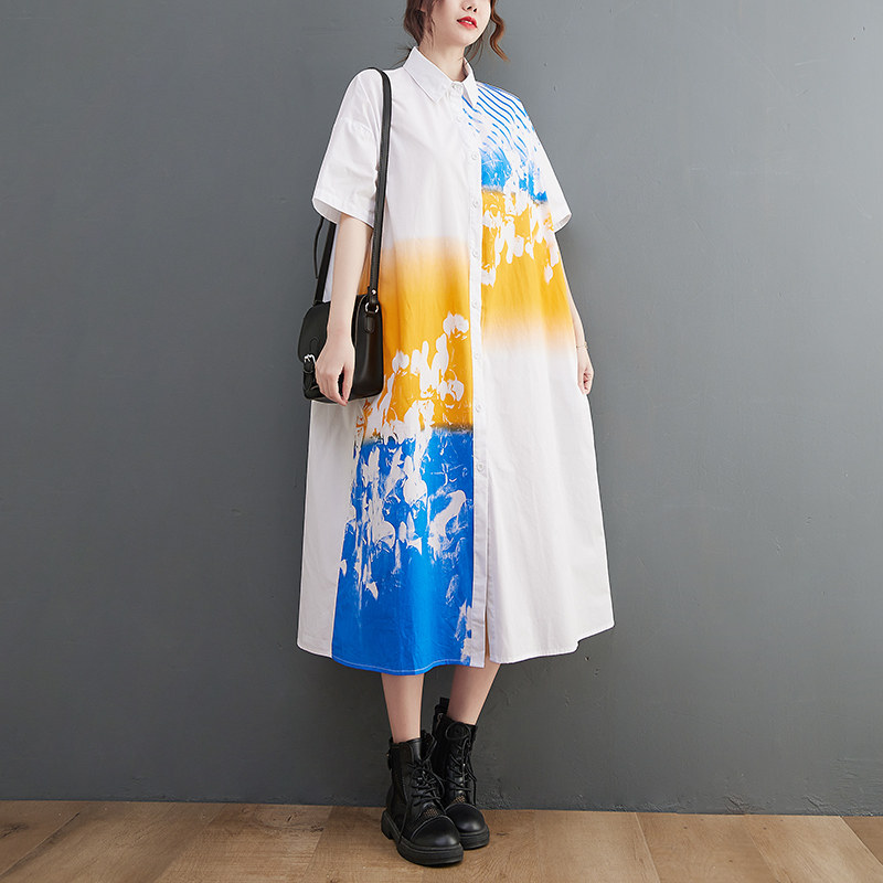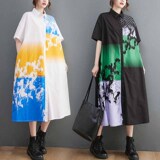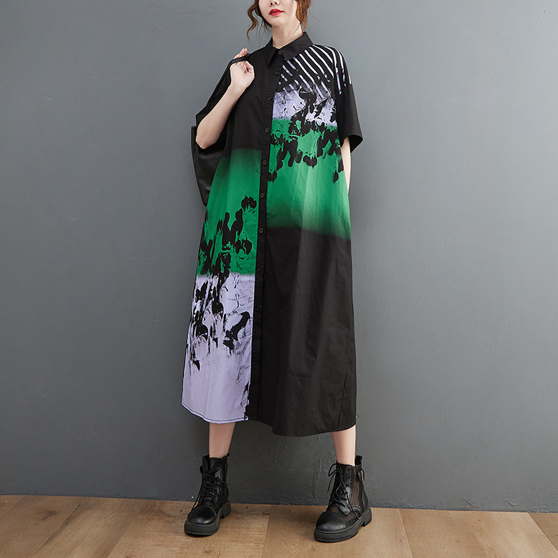 Летний кардиган, длинное платье, большой размер, свободный крой, в западном стиле, короткий рукав, средней длины