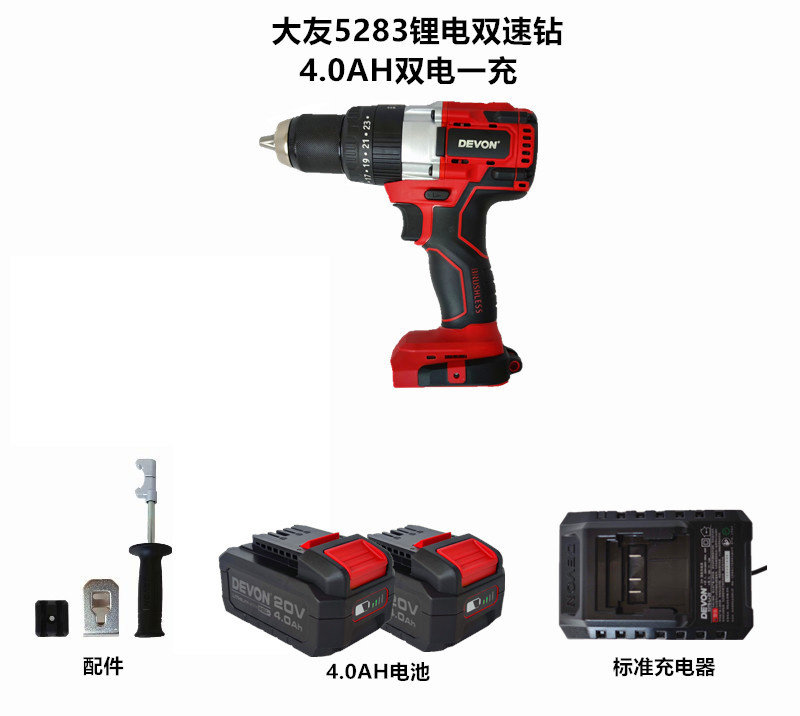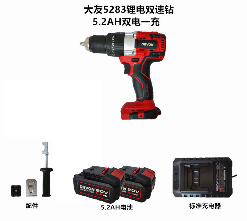 [DEVON大有5283锂电充电手电钻无刷冲击钻多功能起子机大扭力冰钻]