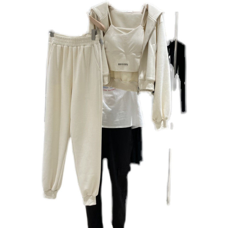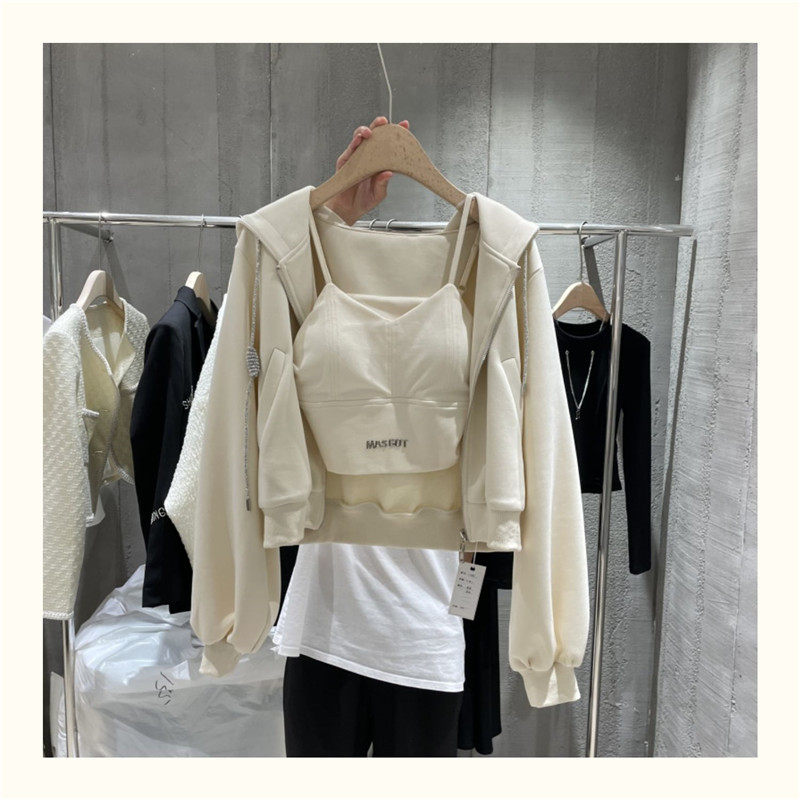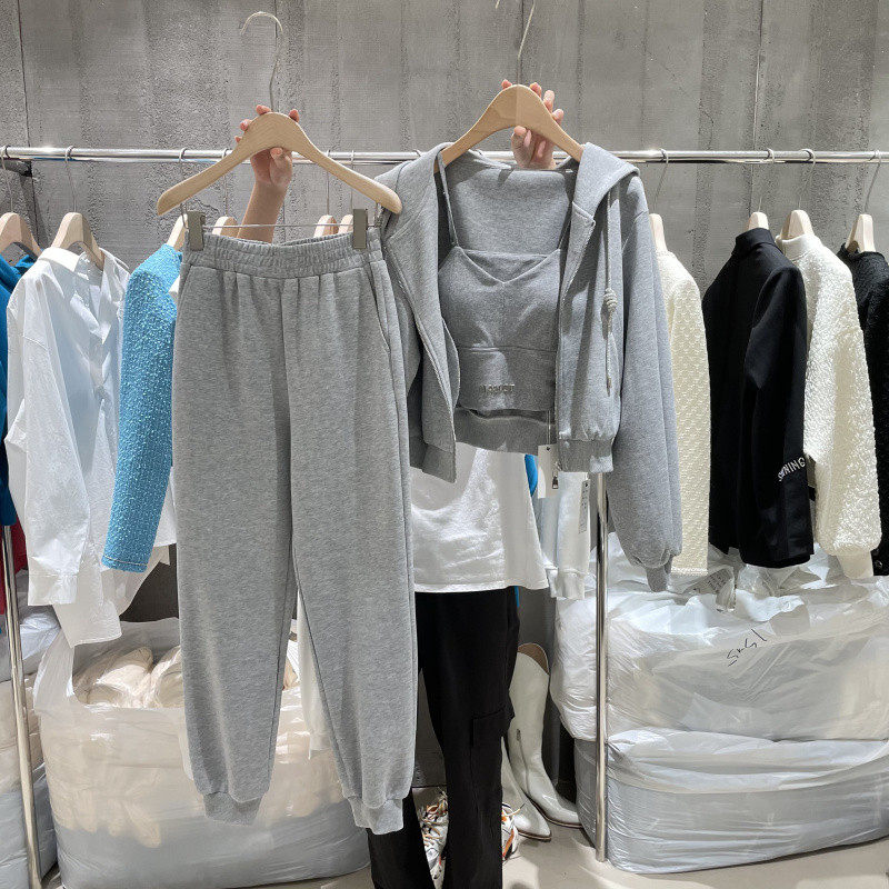 Спортивный костюм для отдыха, комплект, лонгслив, толстовка с капюшоном, жилет, коллекция 2022, в корейском стиле, в западном стиле, 3 предмета