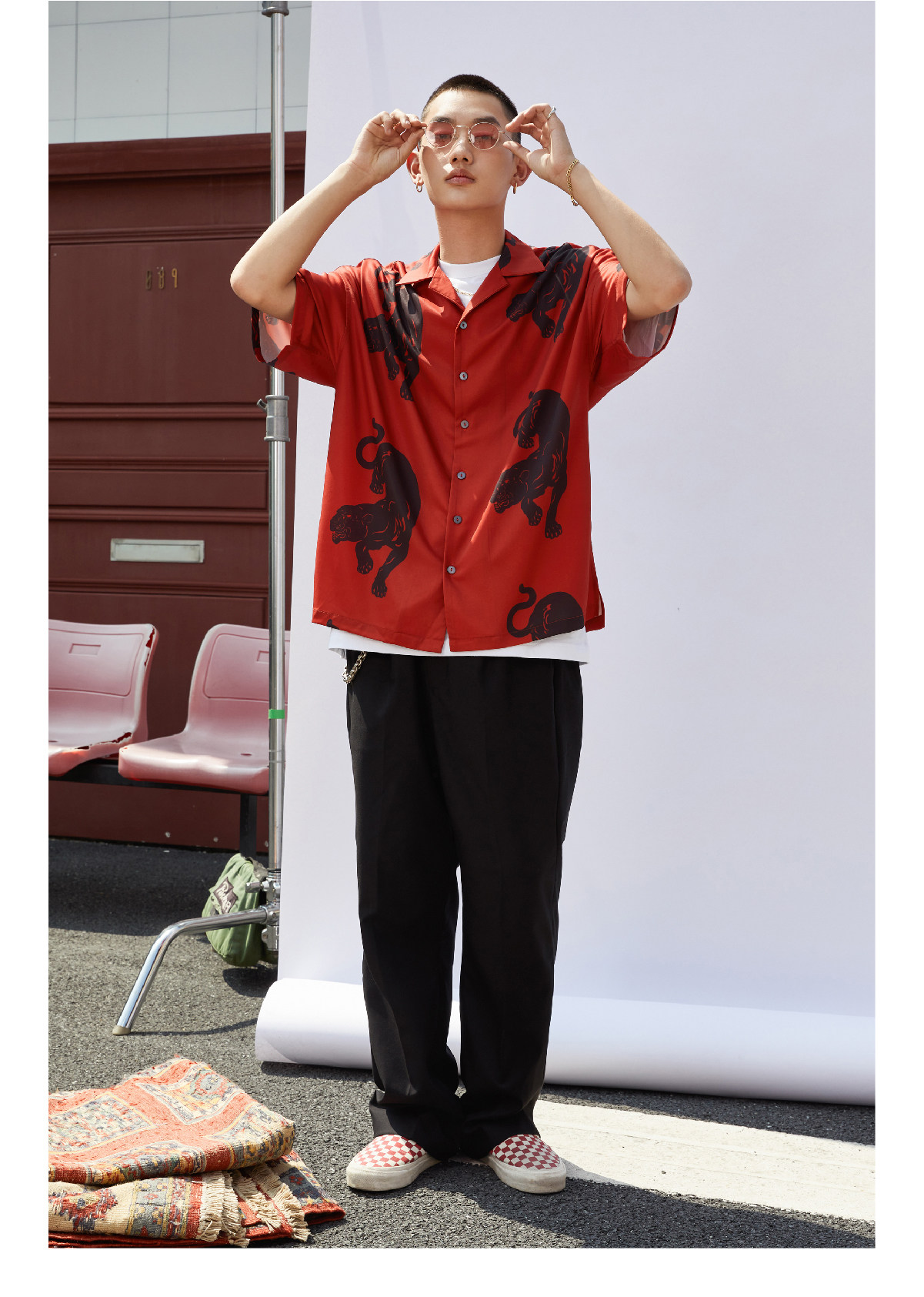 Supertofu (SPTF) SS22 Black Panther Pattern Aloha Hawaiian Short -Sleeed Рубашка
