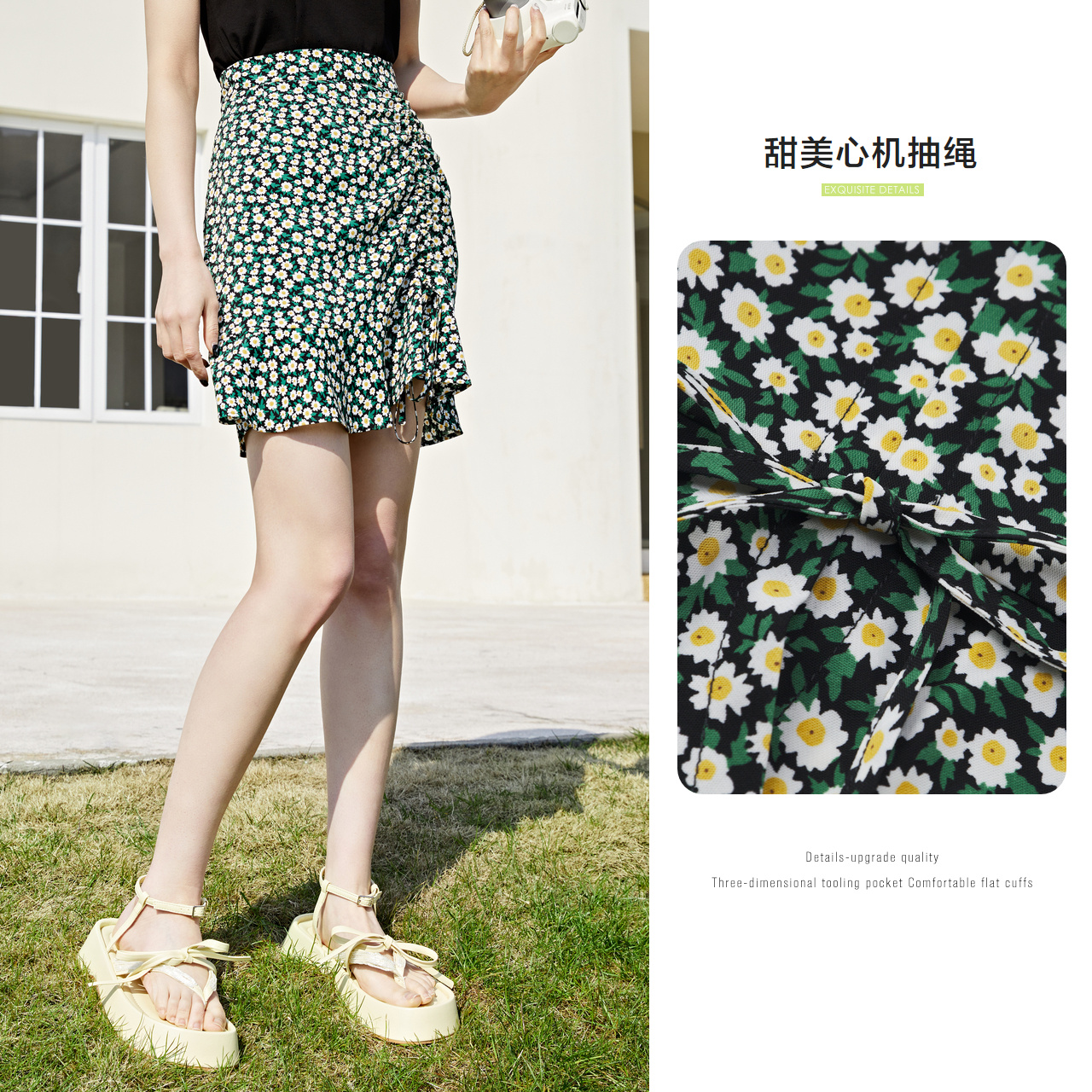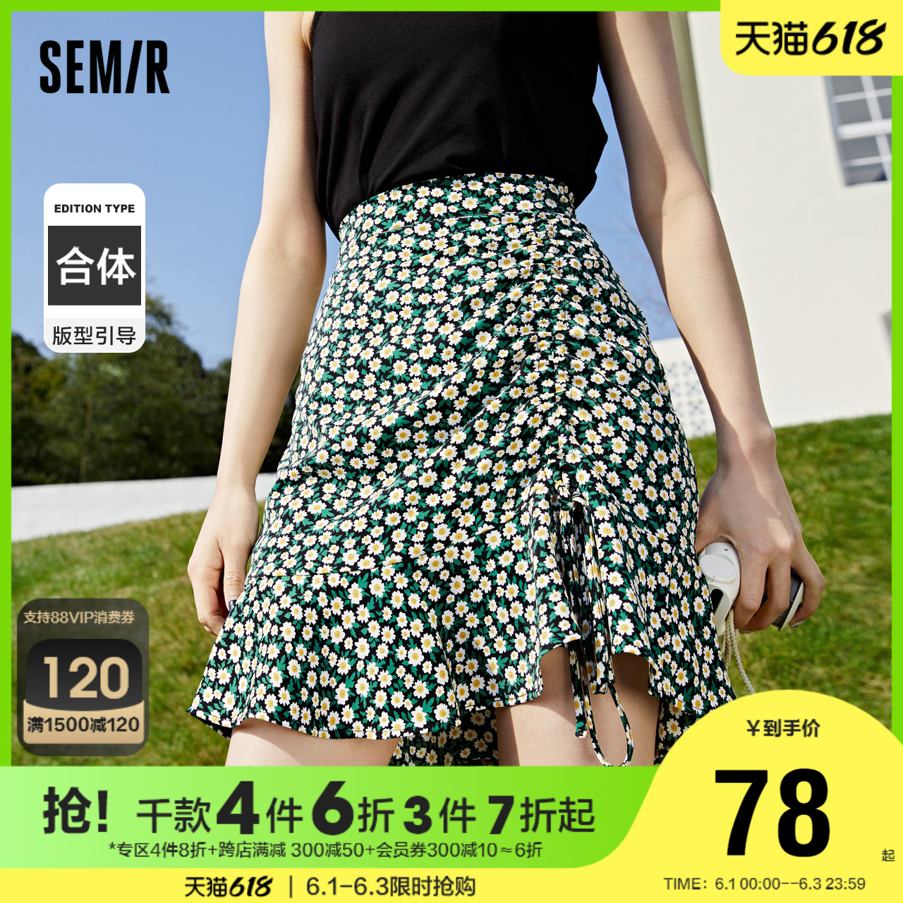 Semir, шифоновая летняя сексуальная милая юбка, на шнурках, в цветочек