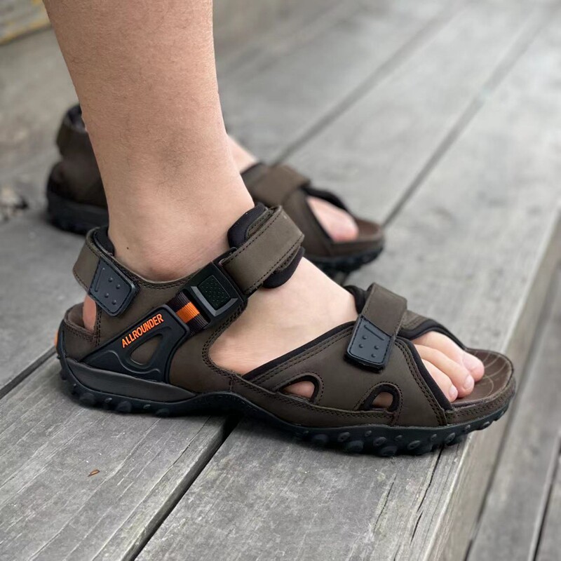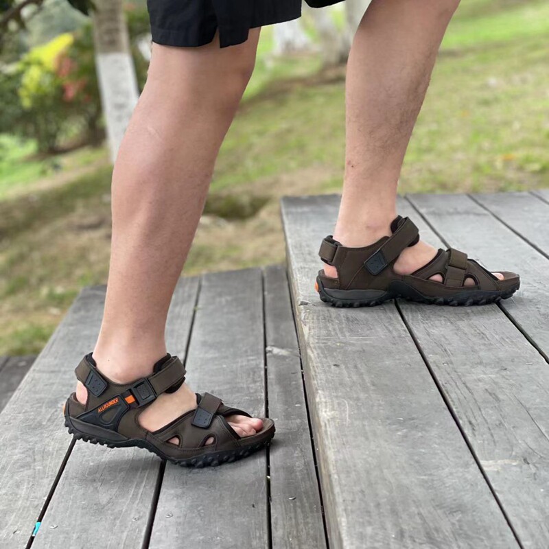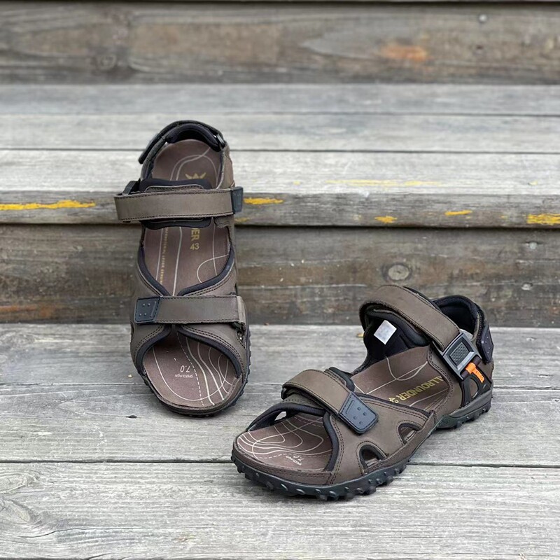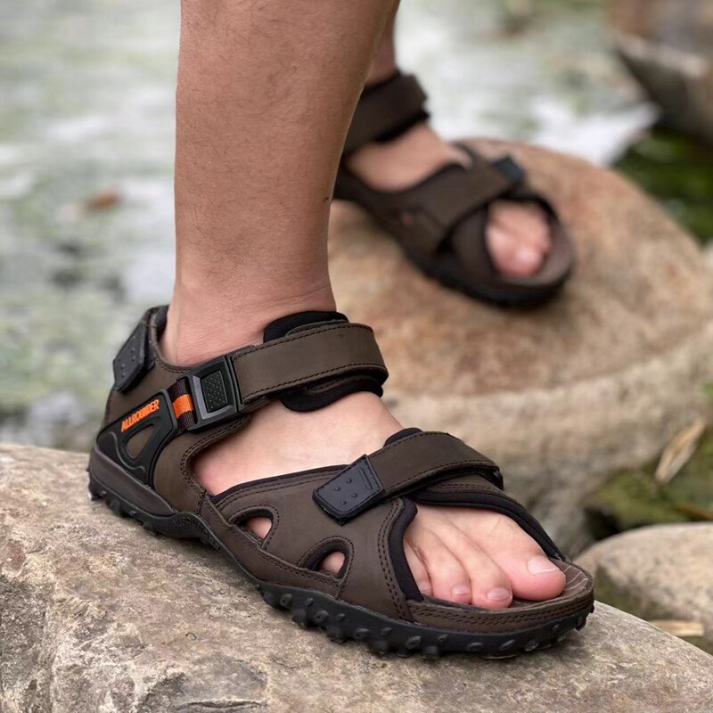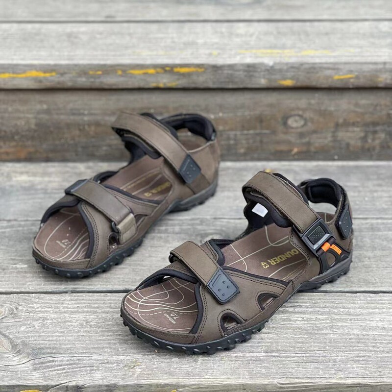 Элитная кожаная нескользящая износостойкая амортизирующая пляжная обувь подходит для пеших прогулок, босоножки, европейский стиль, воловья кожа, большой размер