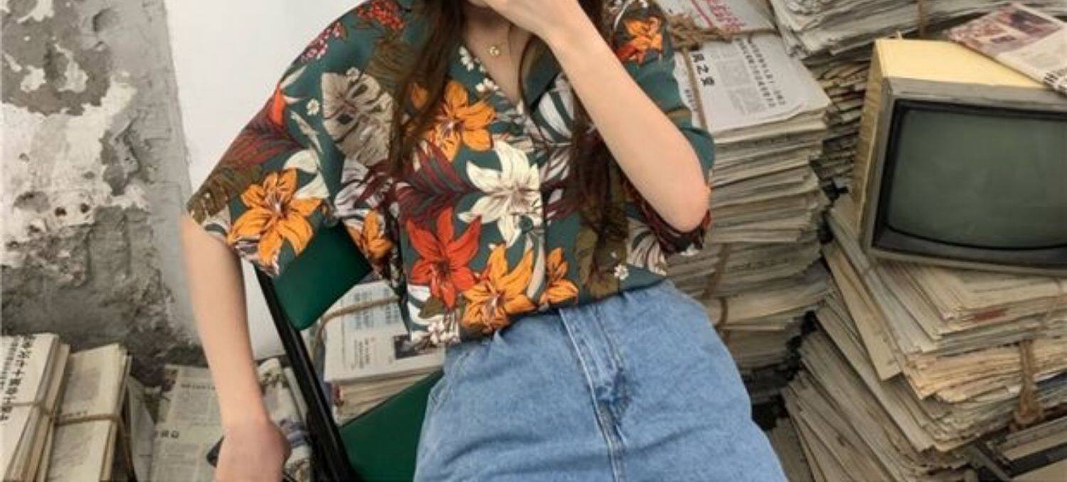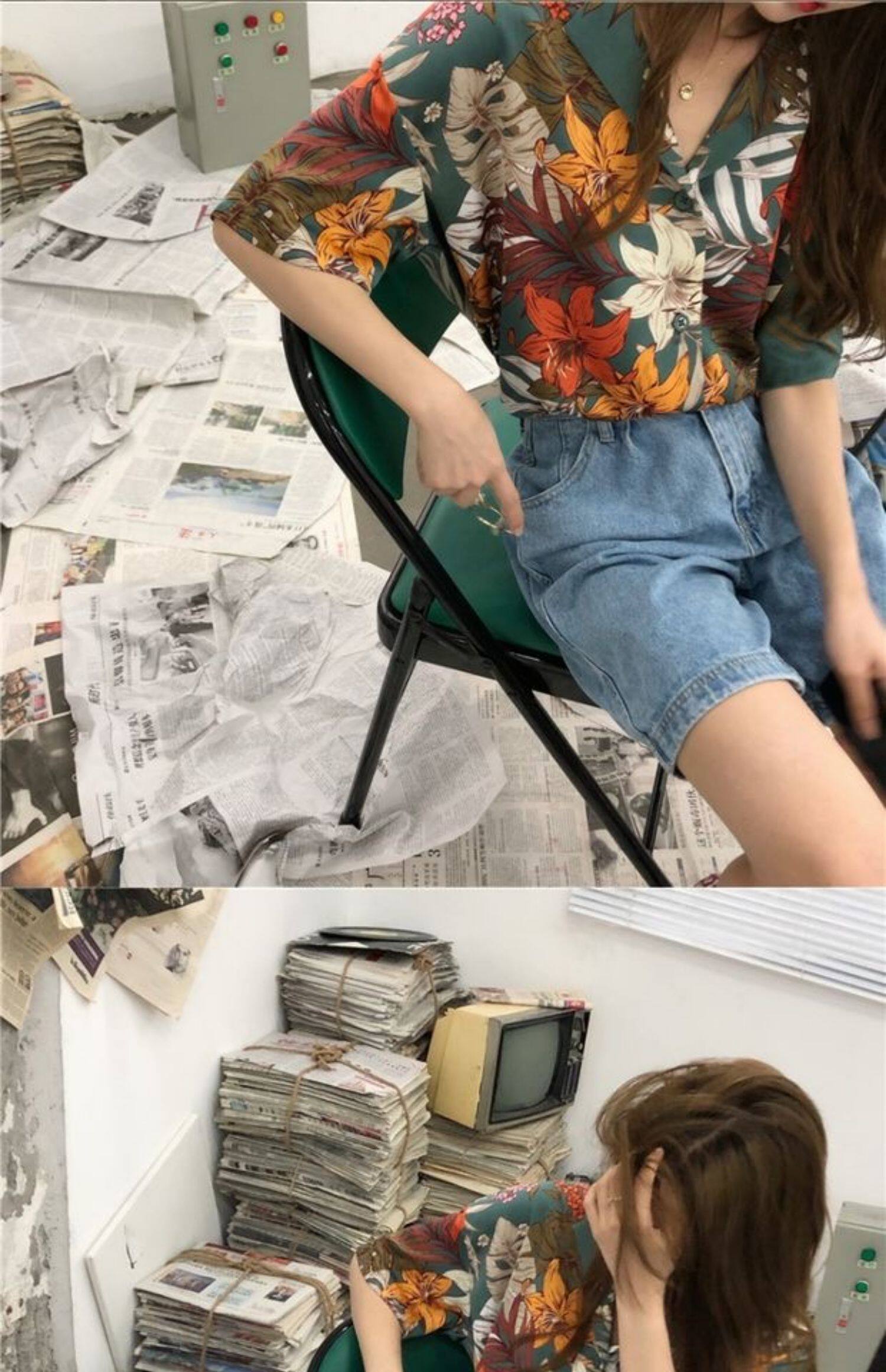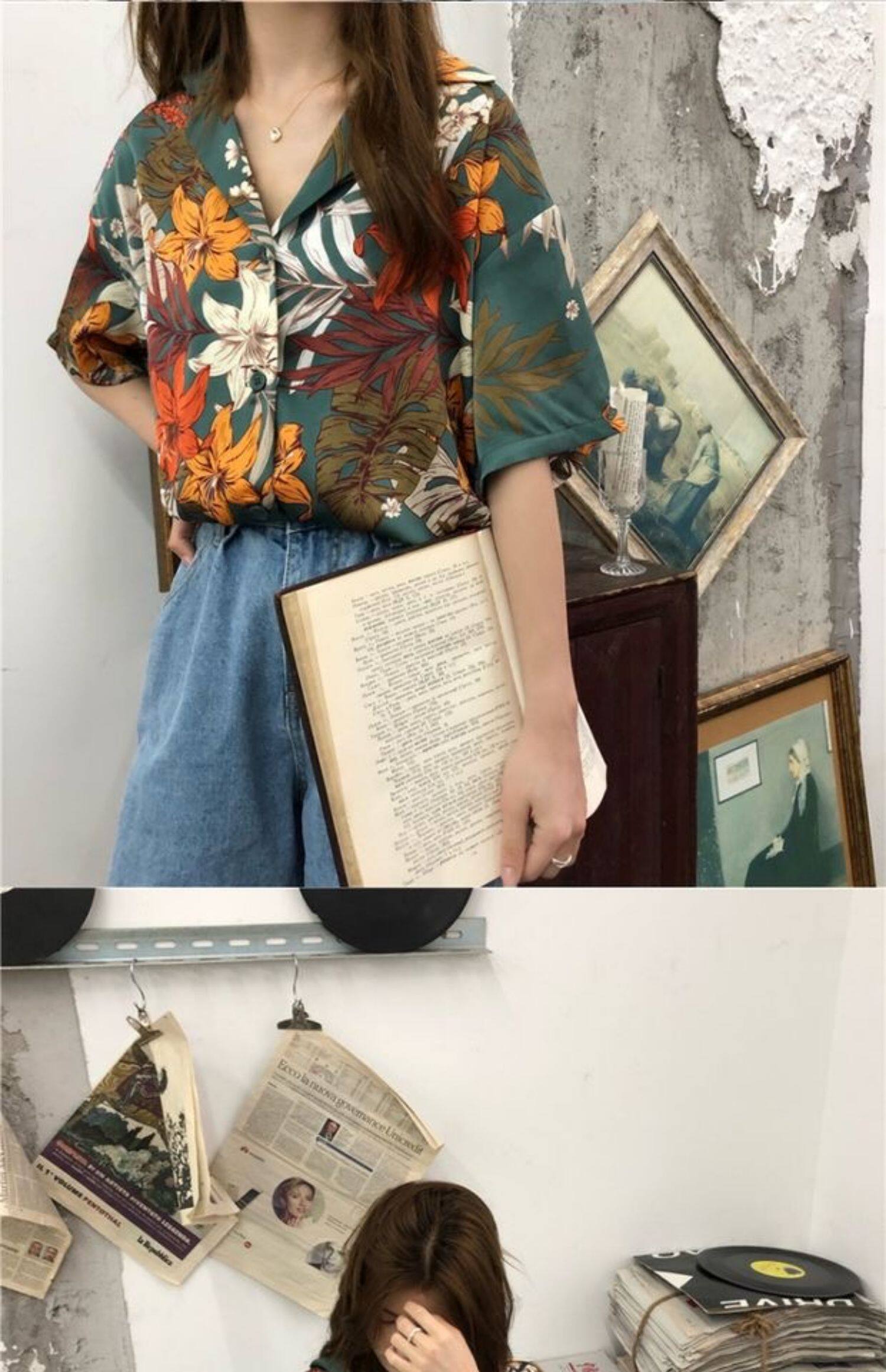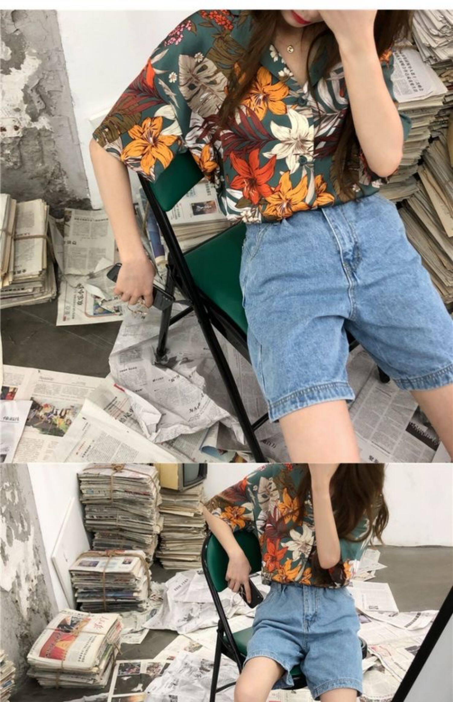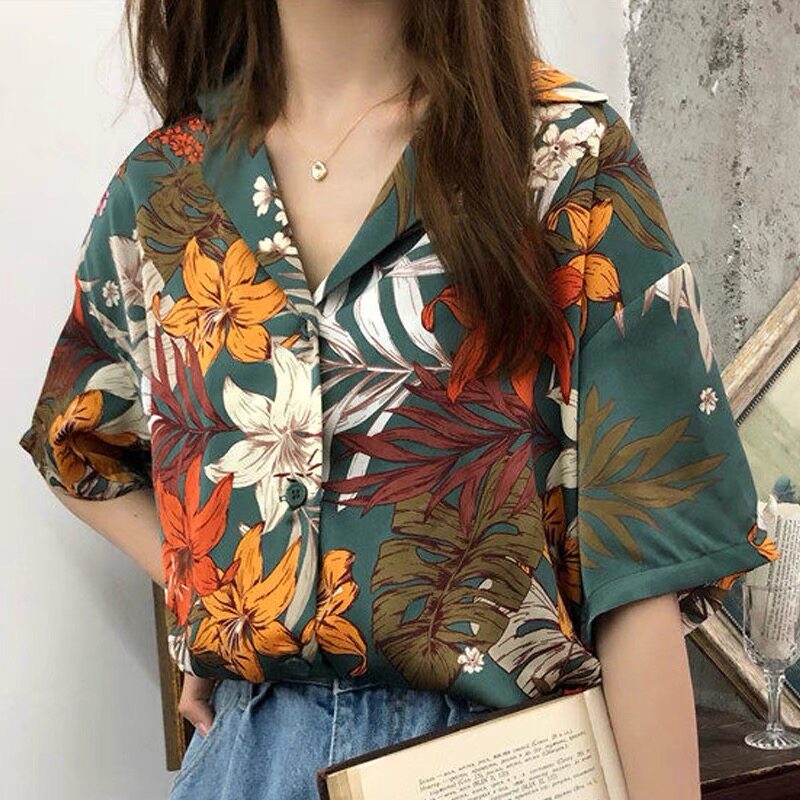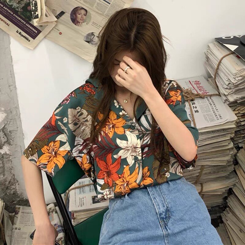 Летняя ретро небольшая дизайнерская трендовая рубашка, тренд сезона, короткий рукав, защита от солнца