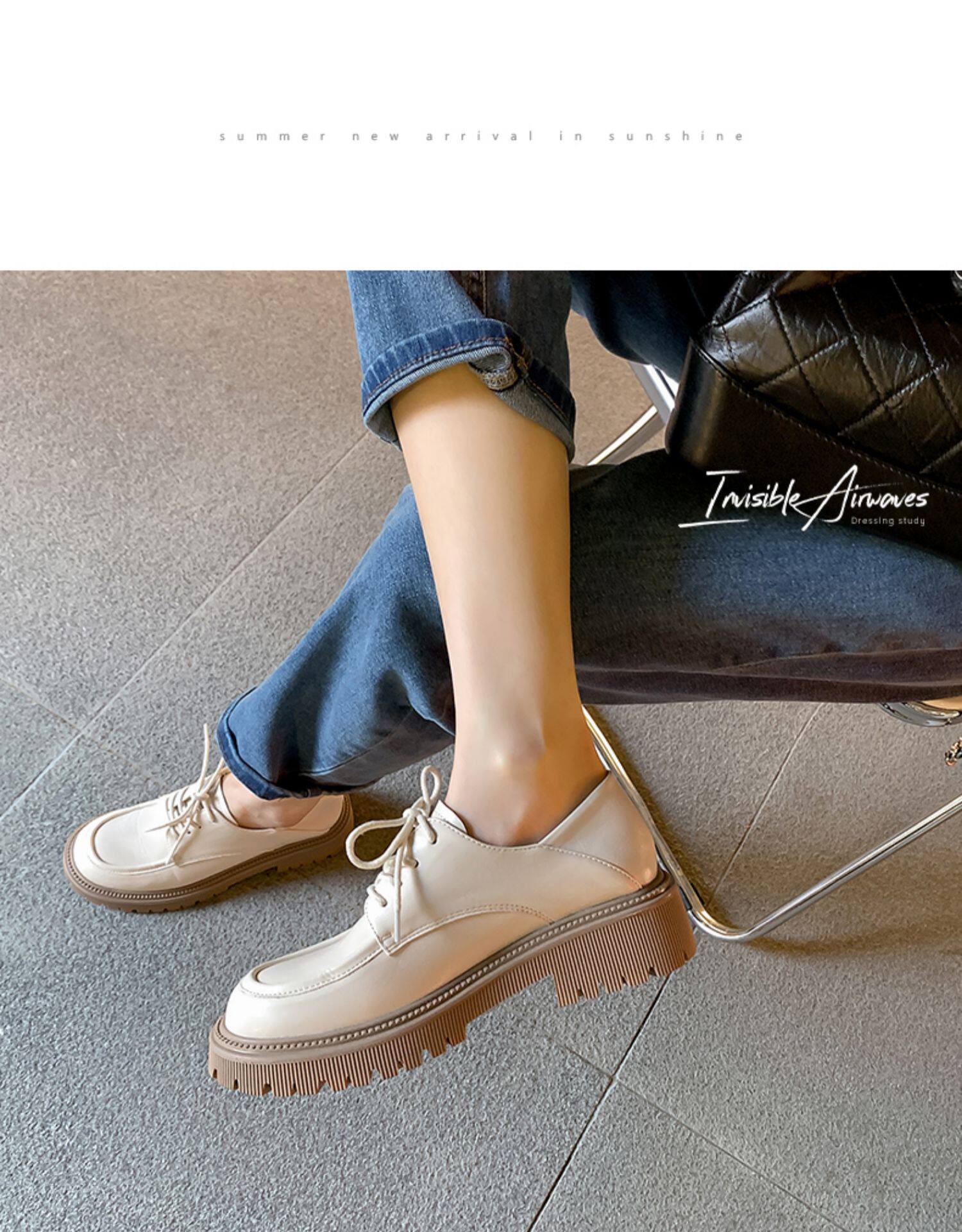 Белые лоферы, весенняя японская обувь на платформе для кожаной обуви, из натуральной кожи