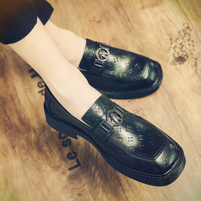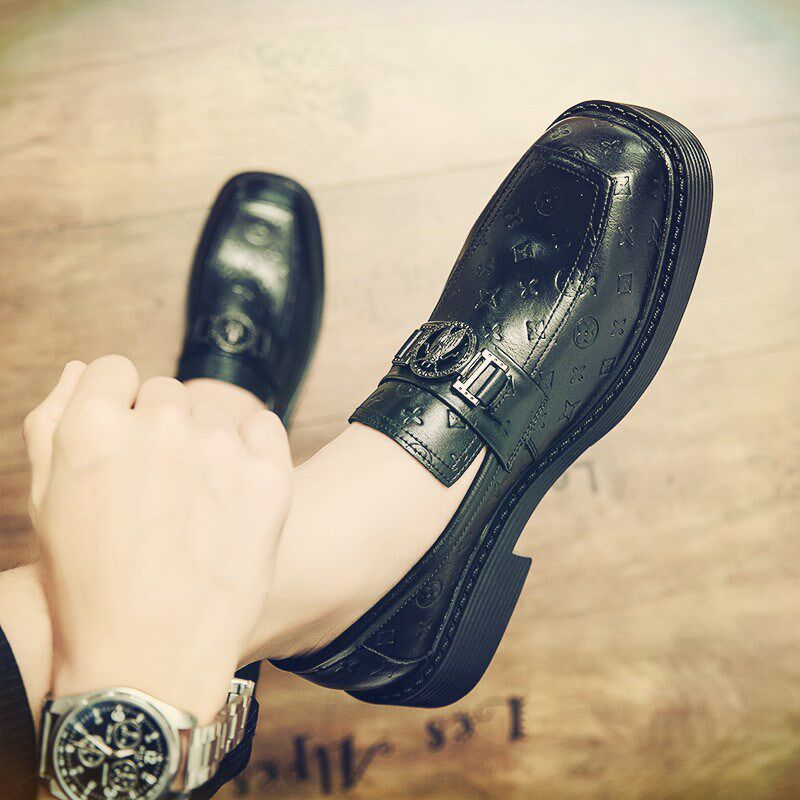 Весенние дышащие туфли с квадратным носком, мужские деловые туфли в британском стиле, модные одношаговые туфли в стиле «Маленькая пчелка» с внутренней высотой