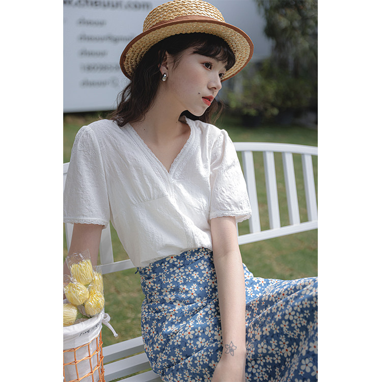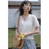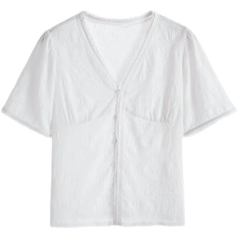 Кружевная летняя дизайнерская белая рубашка, кружевное платье, V-образный вырез, тренд сезона, оверсайз
