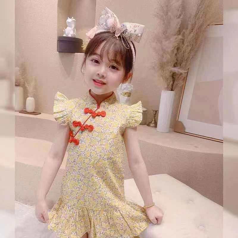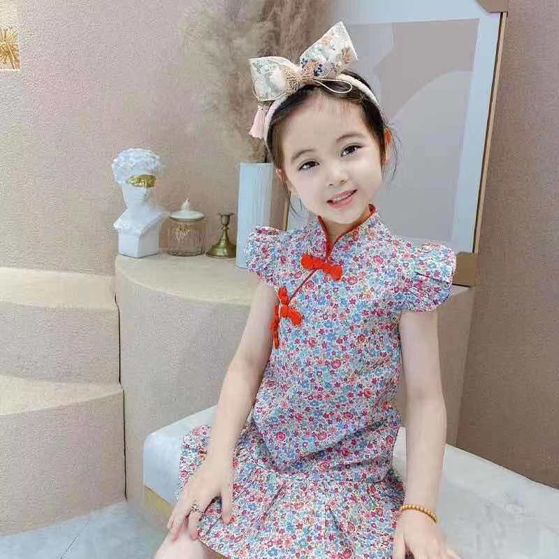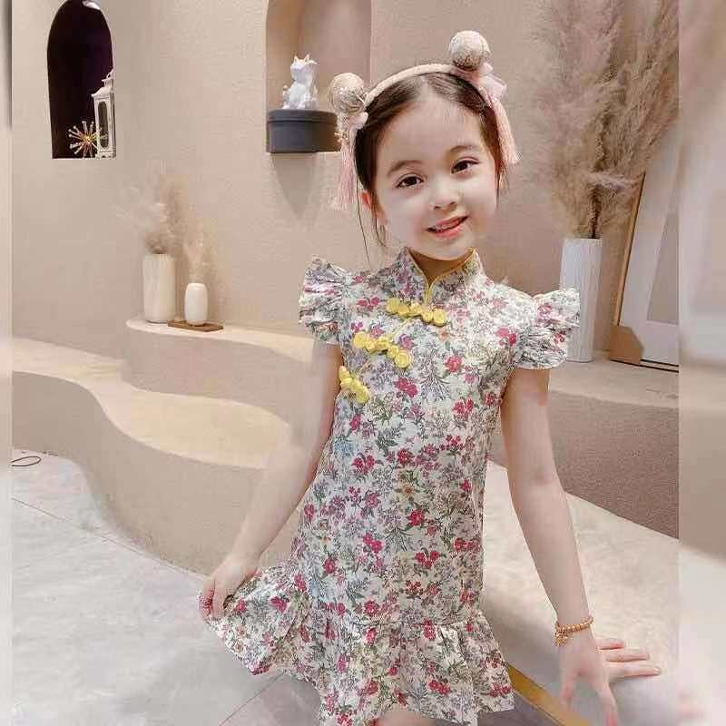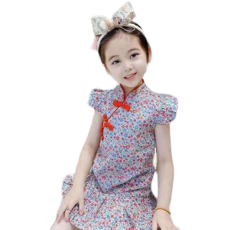 Ханьфу, детское ципао, платье, юбка на девочку, китайский стиль, в западном стиле, в цветочек