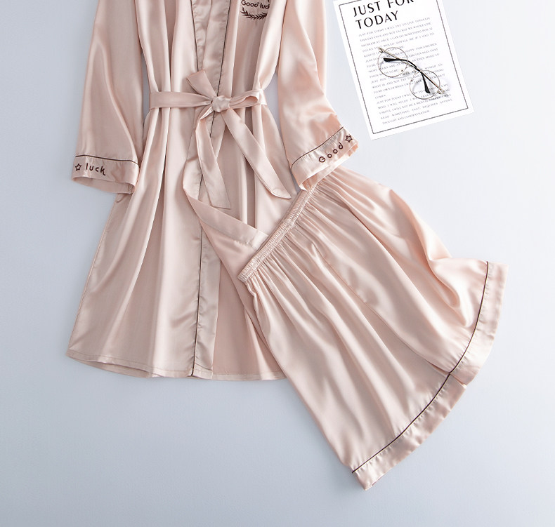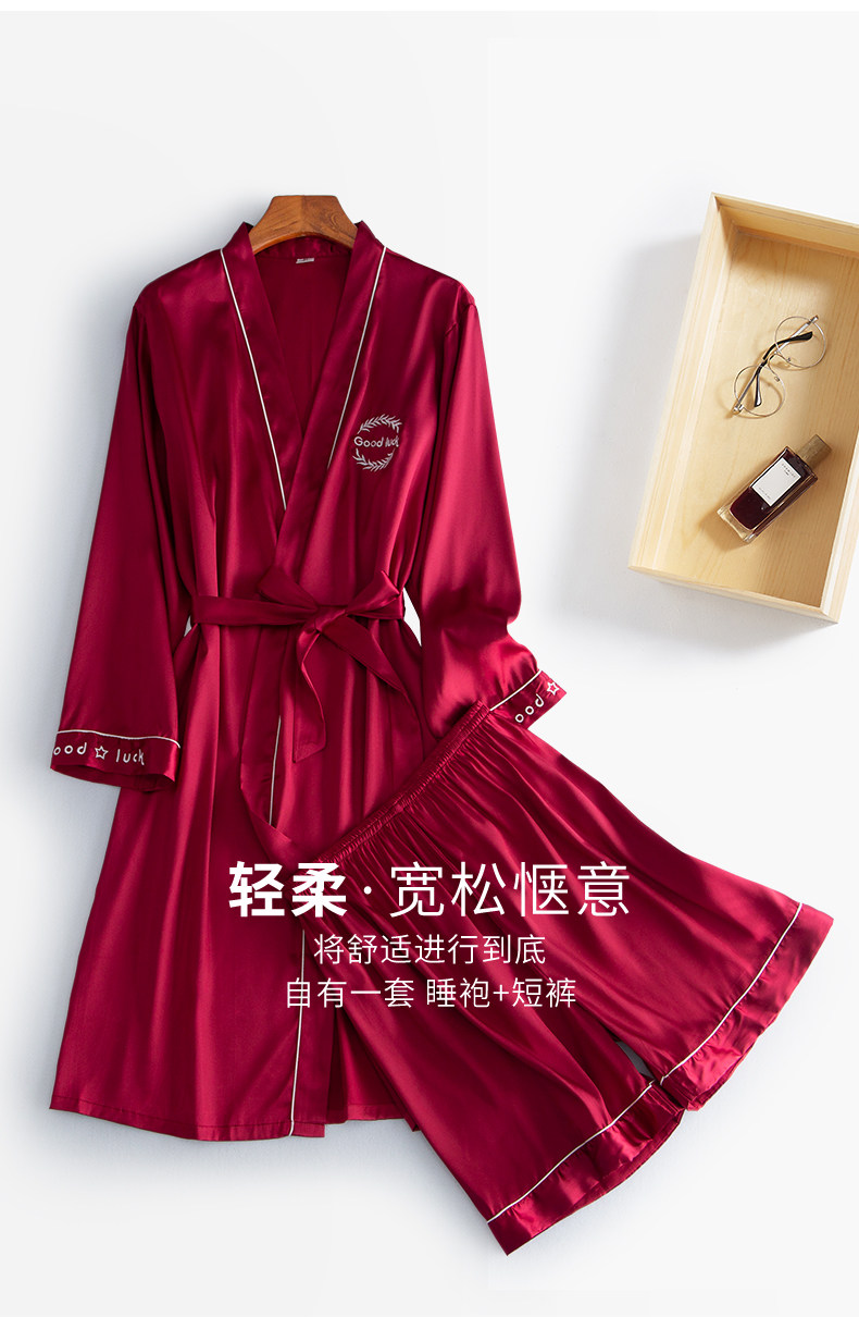 Летний банный халат, шелковые тонкие длинные шорты, шелковая пижама, комплект, средней длины, оверсайз, большой размер