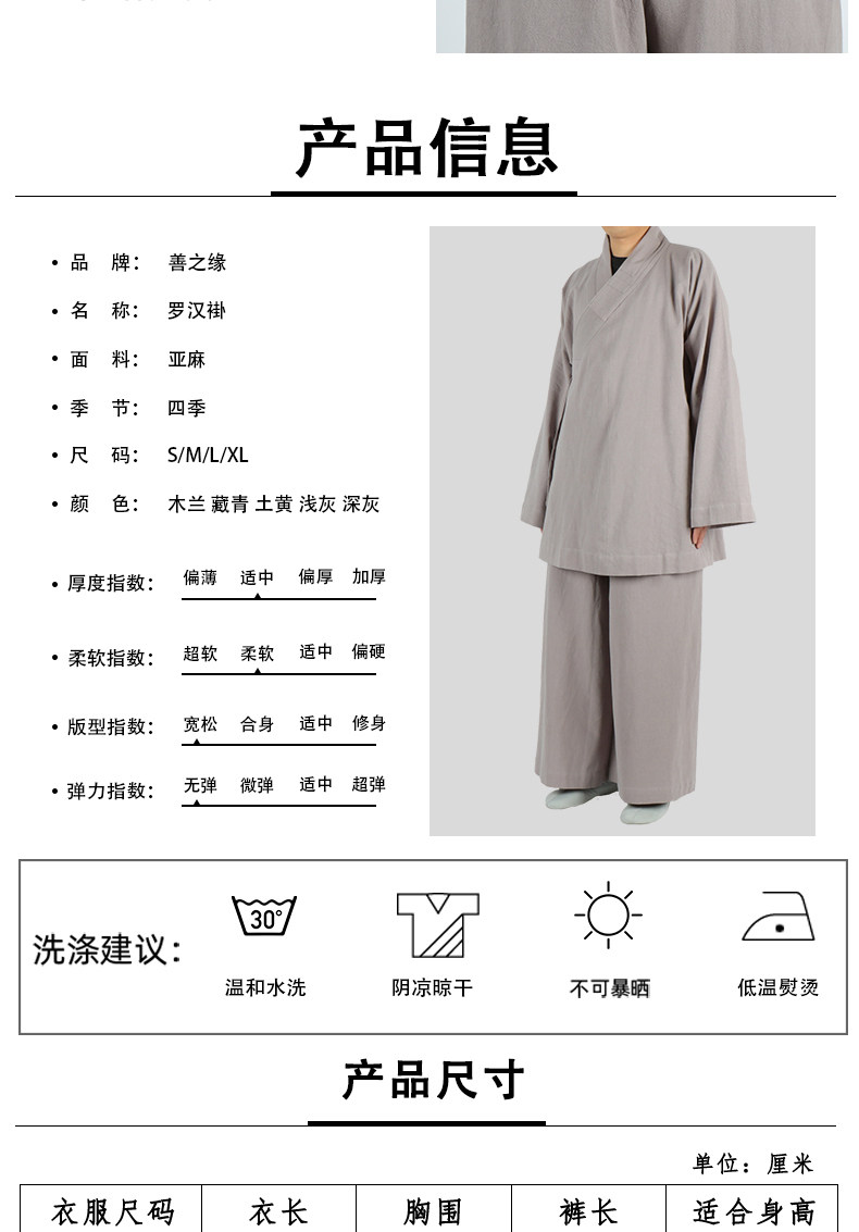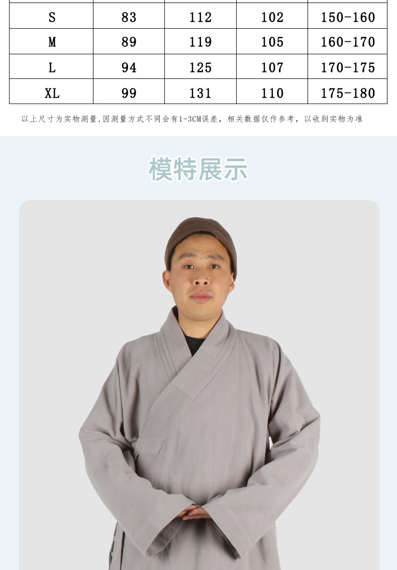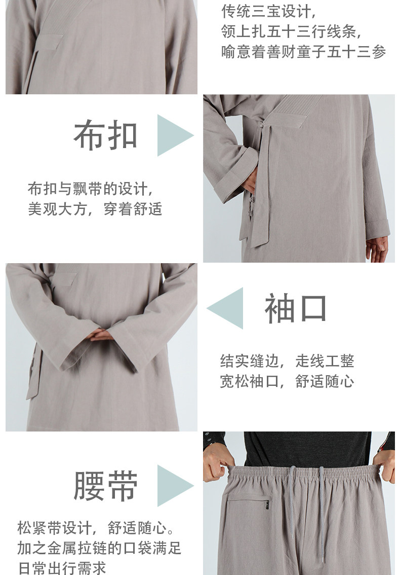 Монаховая одежда Короткие платья, мужские весенние и осенние линии, платья Линси Хана, монахи, хлопок и льня