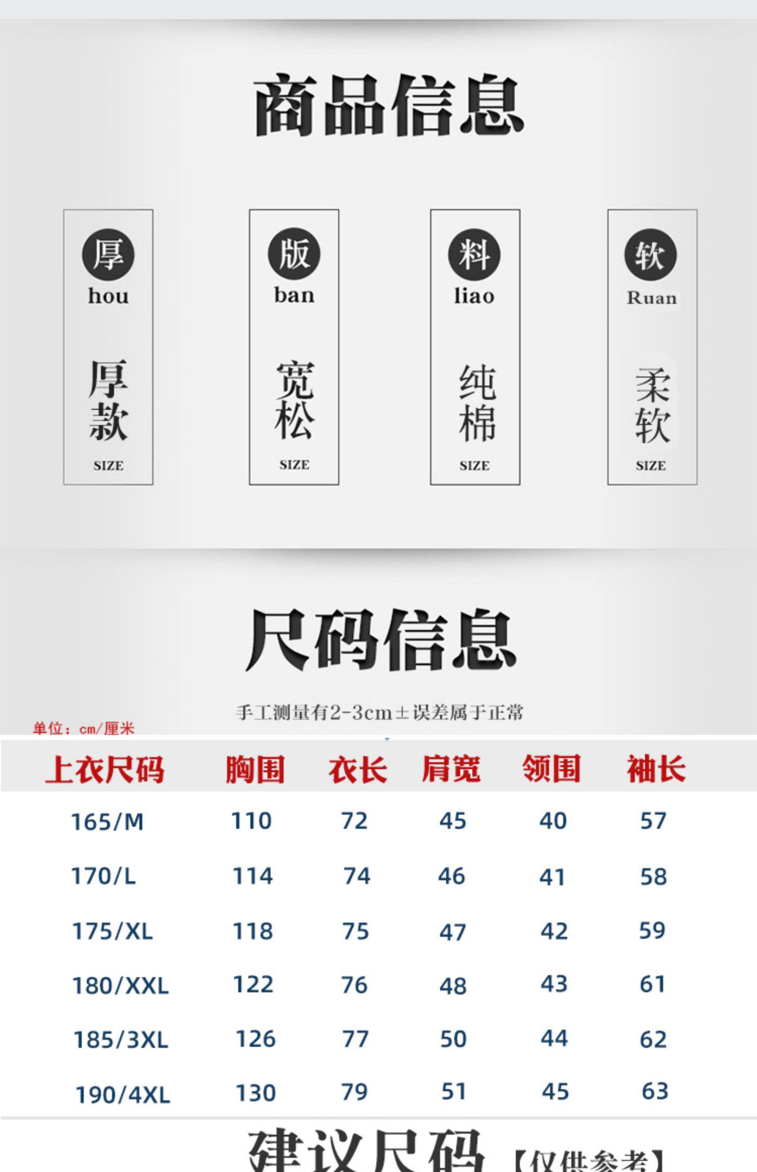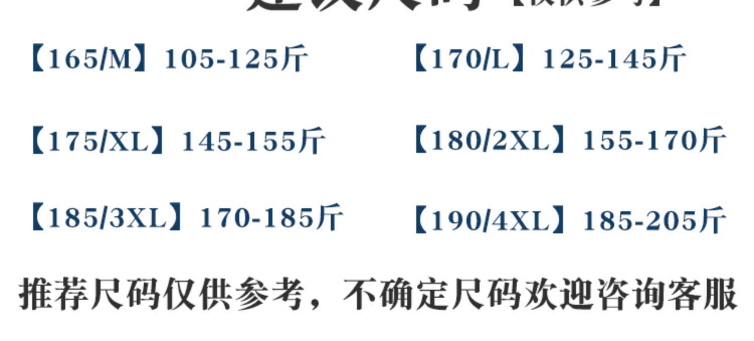 | Размер: | 165/м [105-125 Catties], 170/л 【125-145 Catties】, 175/xl 【145-158 Catties】, 180/2xl 【160-170 Catties】, 185/3xl 【170-185 Catties】, 190/4xl 【185-205 Catties】 |