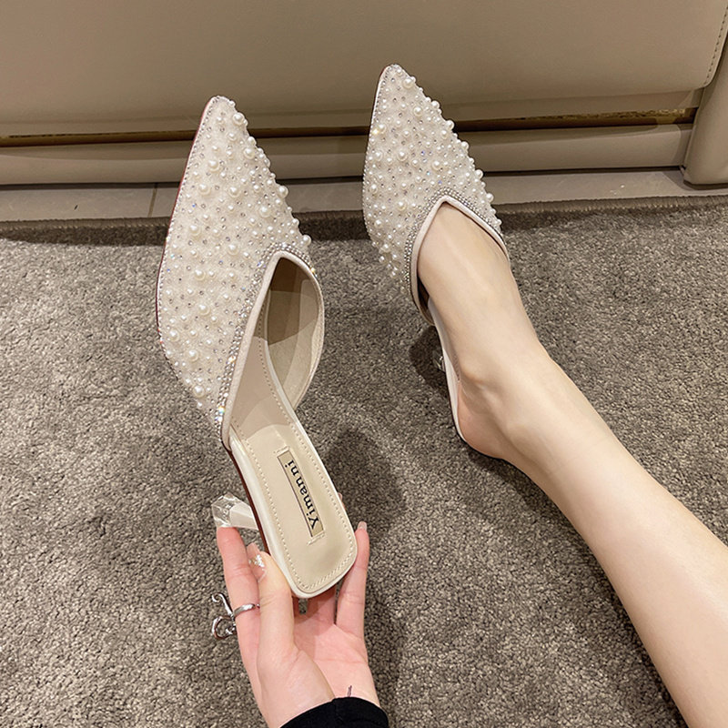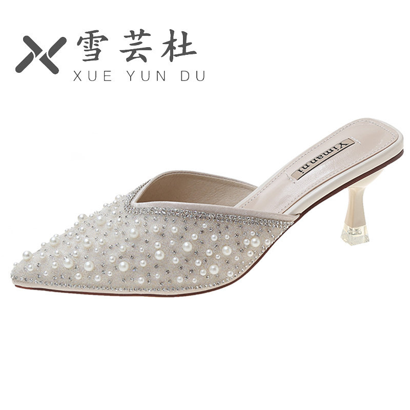 Весенние тапочки, слайдеры с заостренным носом на высоком каблуке, тренд сезона