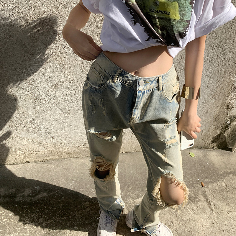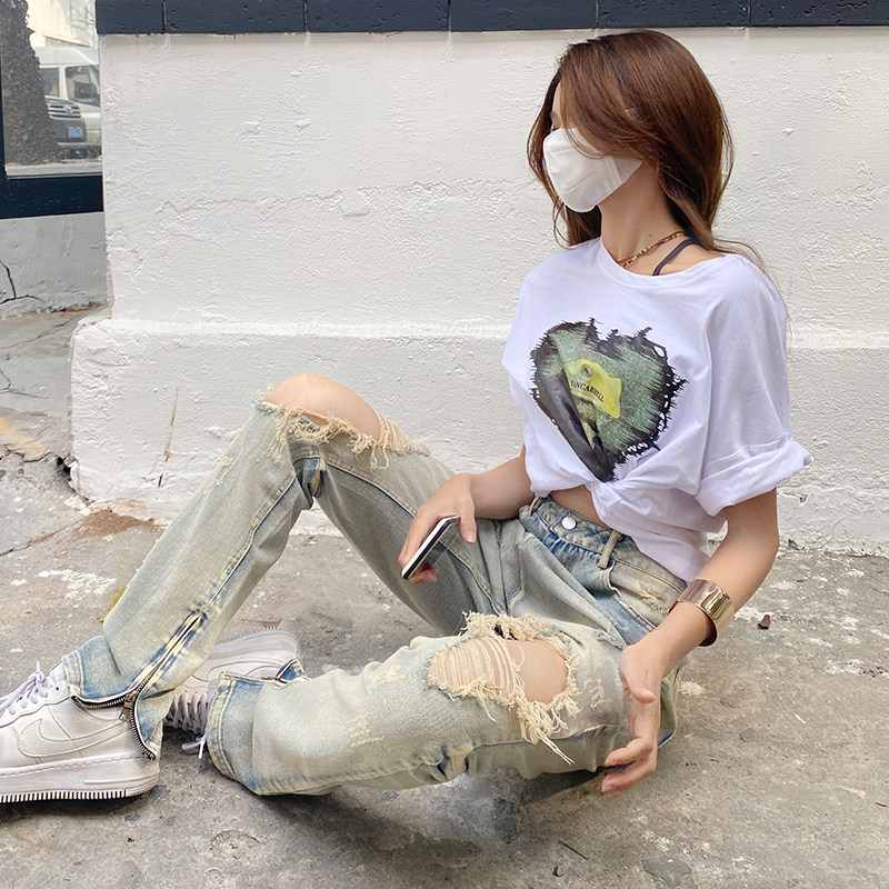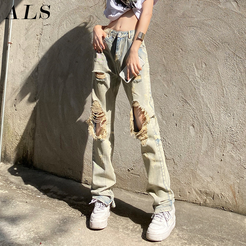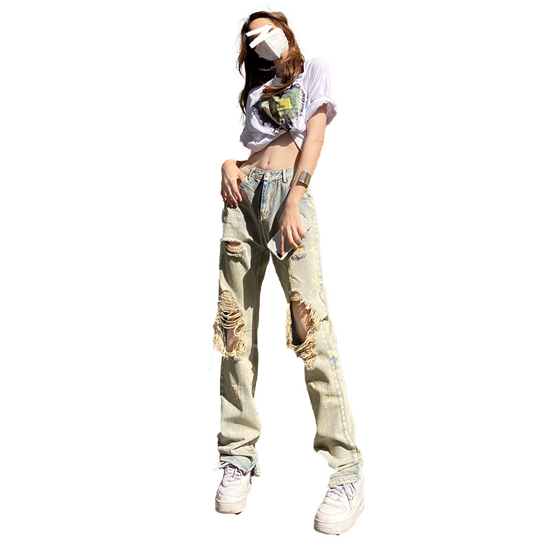 Летние дизайнерские джинсы, штаны, в американском стиле, тренд сезона, свободный прямой крой