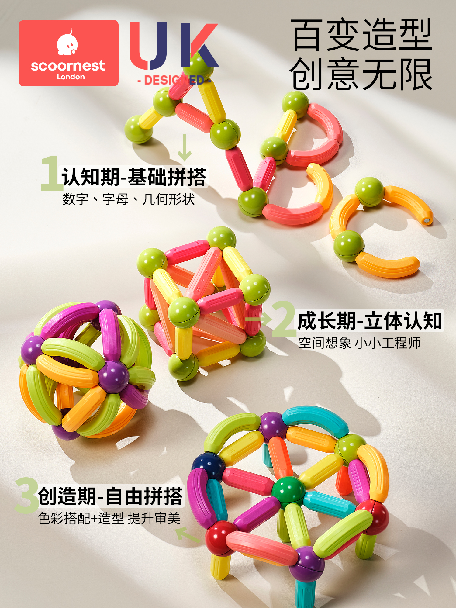 Вариационная магнитная интеллектуальная игрушка, магнитный конструктор для мальчиков и девочек, 2 лет