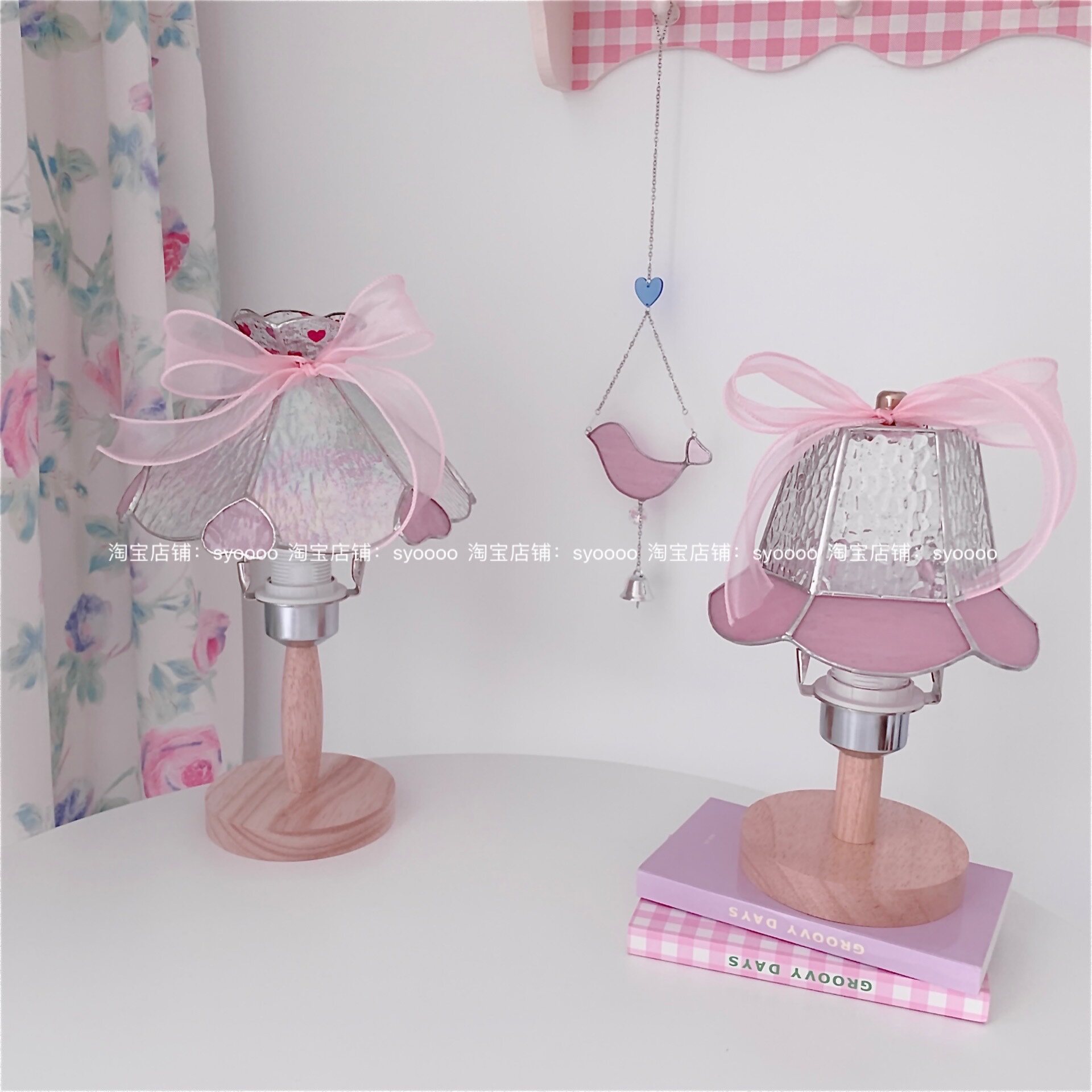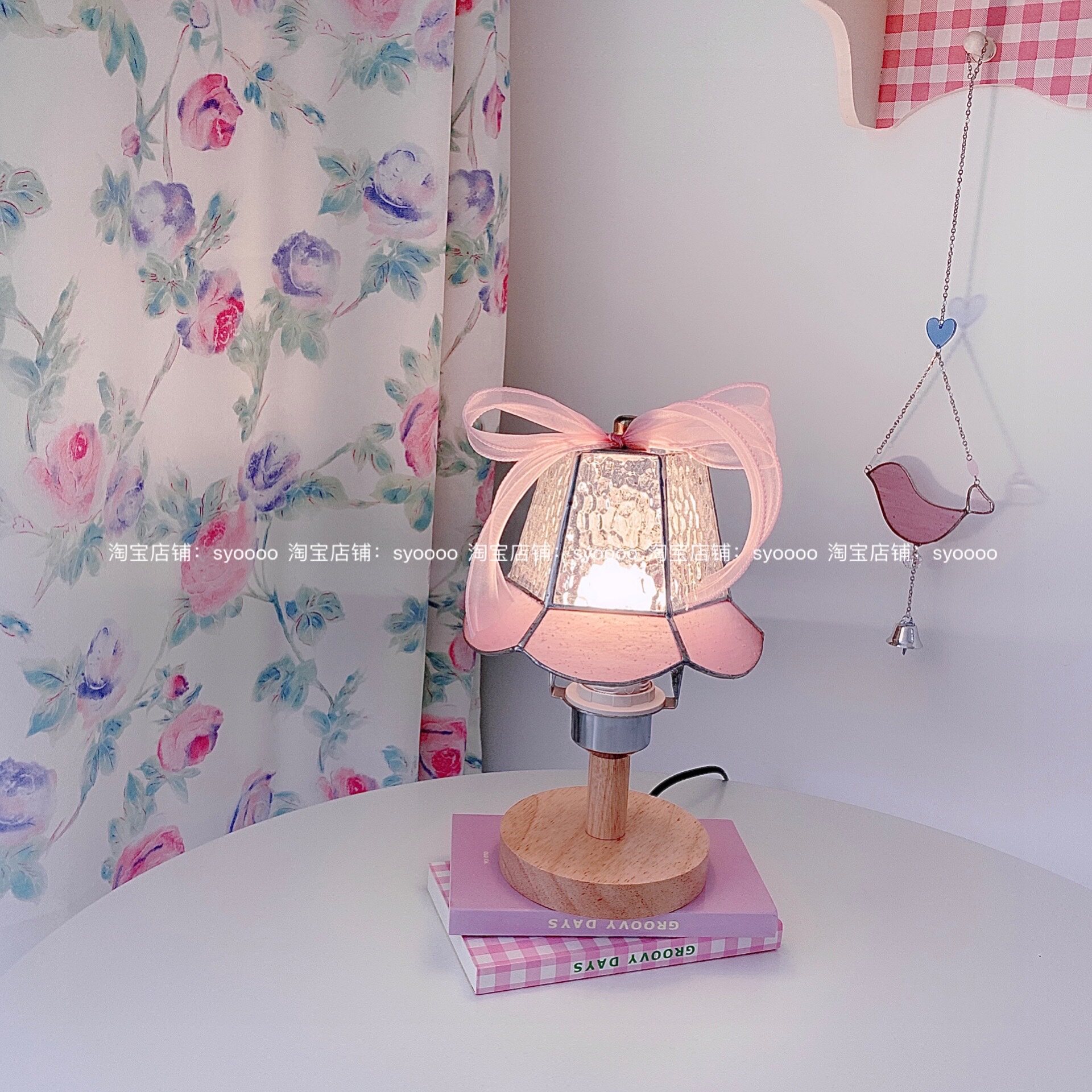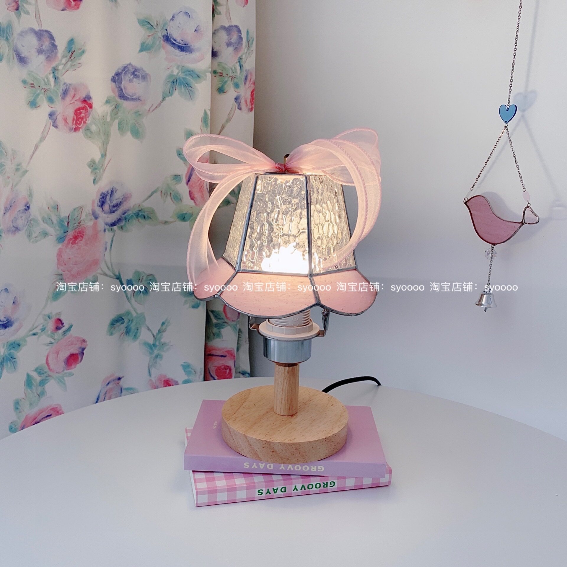 Syoooo Original Pink Cherry Blossom Platform Lamp | Корейская цветовая стеклянная стекло Тифани инкрустированные нишевые лампы сердца