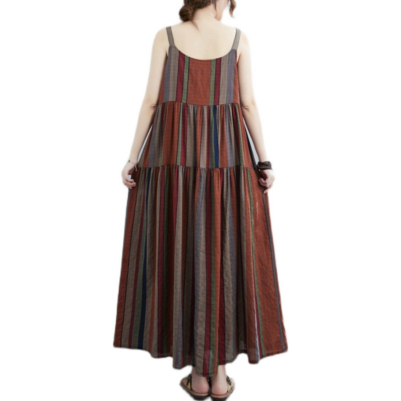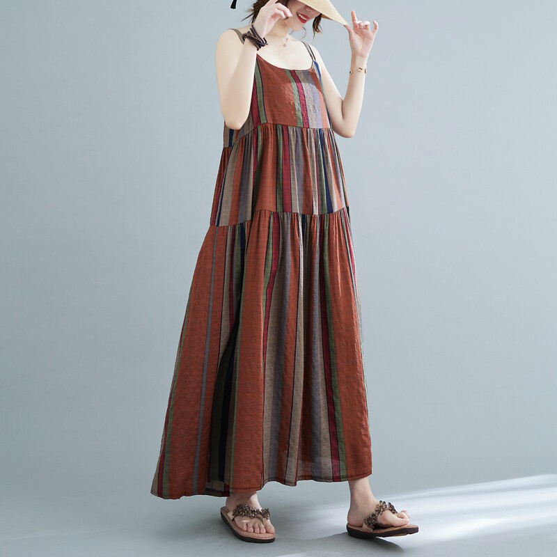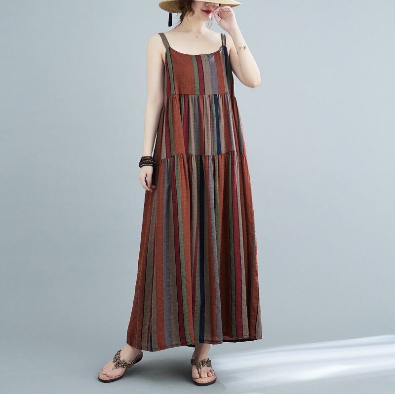 Платье-комбинация, боди, длинная юбка, в цветочек, свободный крой, большой размер, из хлопка и льна