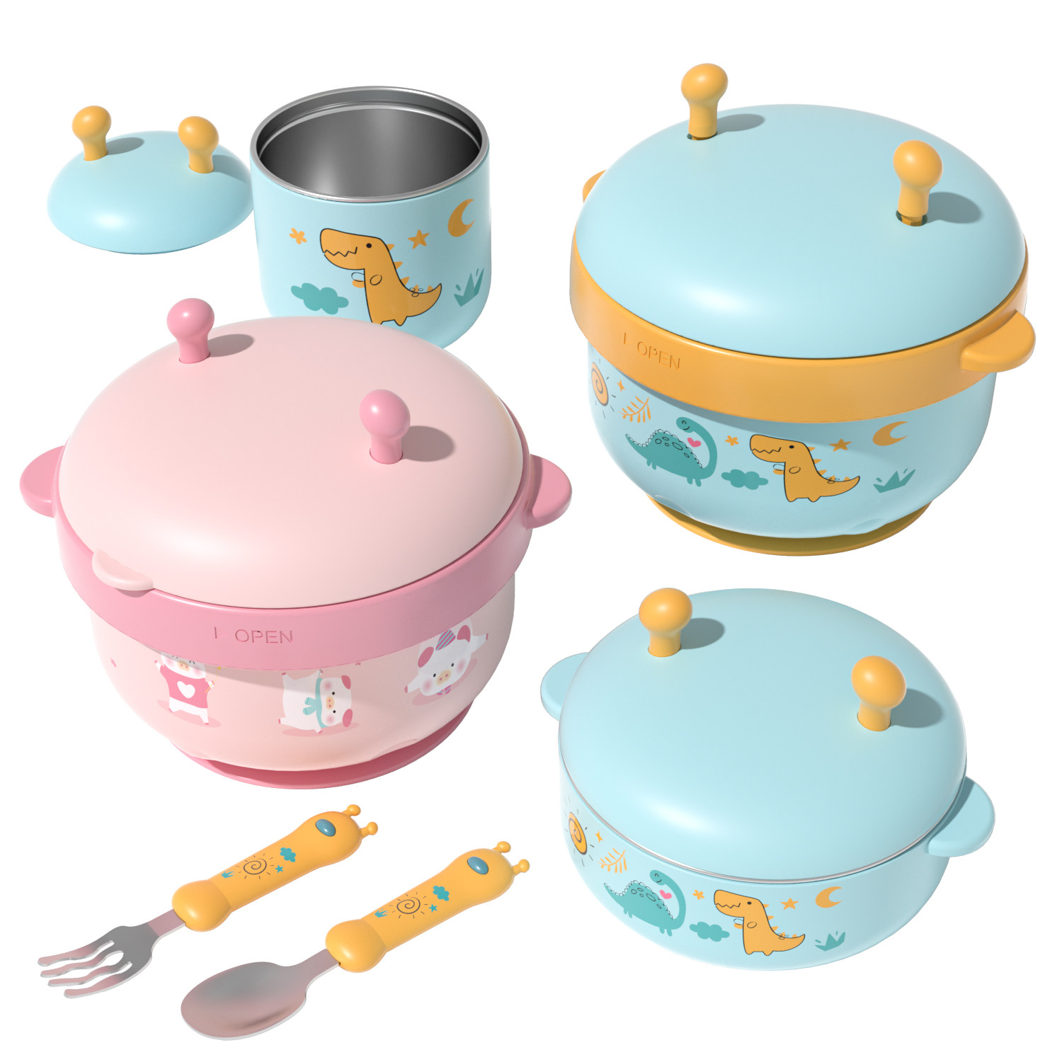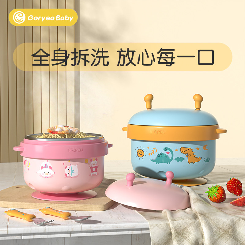 Детская обеденная тарелка, увлажняющий термос для раннего возраста из нержавеющей стали, посуда для выхода на улицу для кормления, комплект, защита при падении