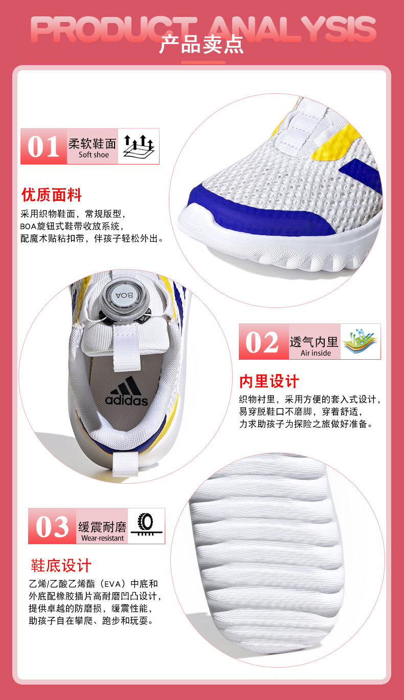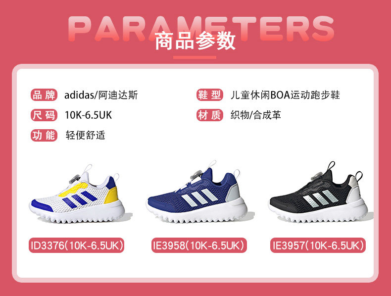 Детская обувь Adidas, летняя и осенняя мужская и женская спортивная обувь для бега с дышащей сеткой и ручкой BOA ID3376