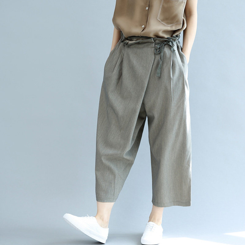 | Корейская версия литературной минималистской большой размер косой промежности повседневные брюки показывают тонкие толстые штаны для ног. | ||