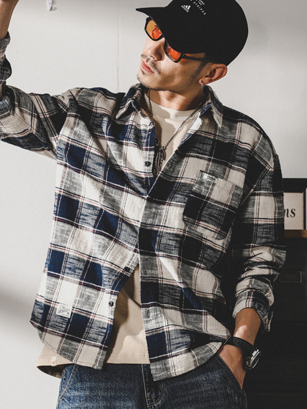Ретро рубашка, мужская японская куртка, в американском стиле, оверсайз, осенняя