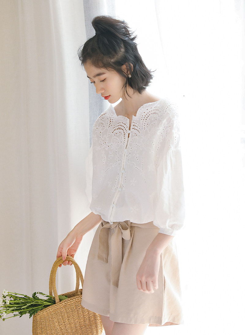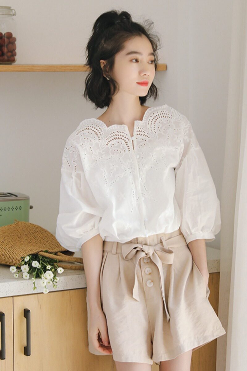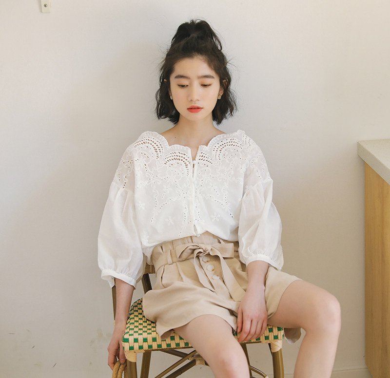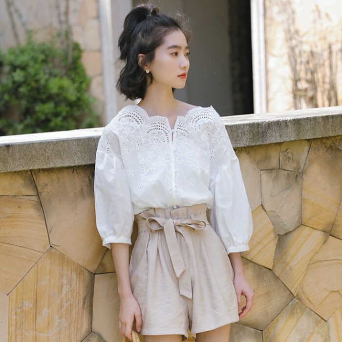 Ретро кружевная летняя рубашка, футболка, французский стиль, в западном стиле, короткий рукав