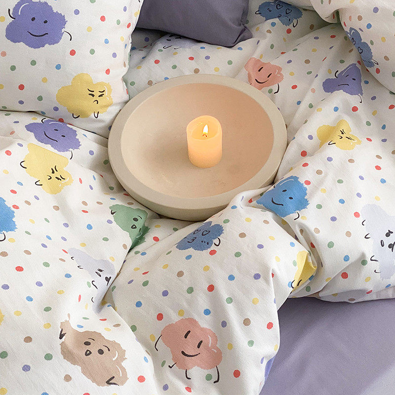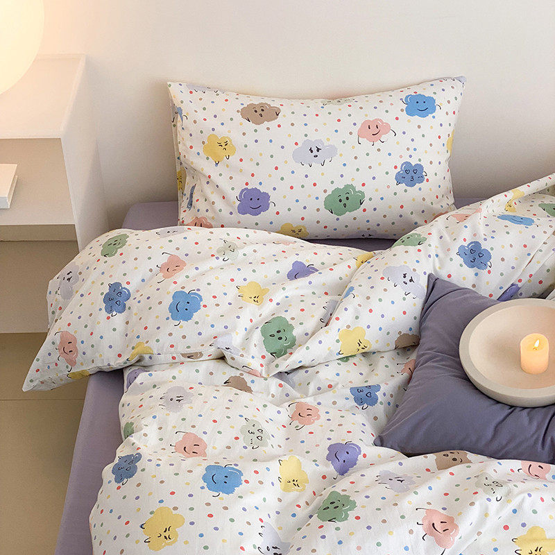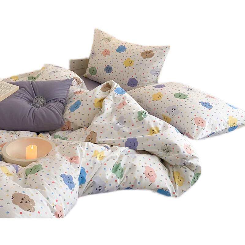 Свежий хлопковый мультяшный комплект для школьников и студентов, пододеяльник, простыня, 4 предмета, 3 предмета, постельные принадлежности