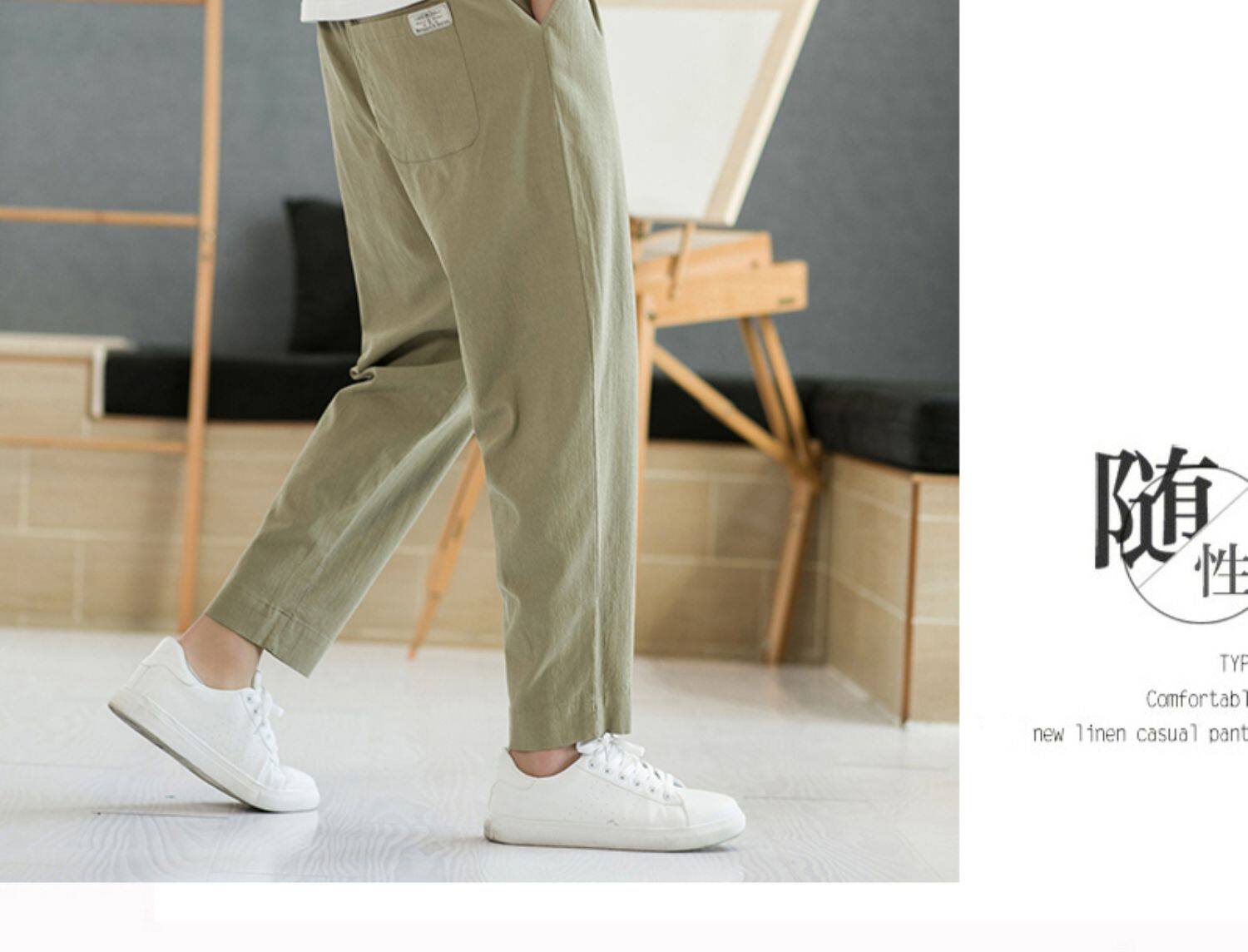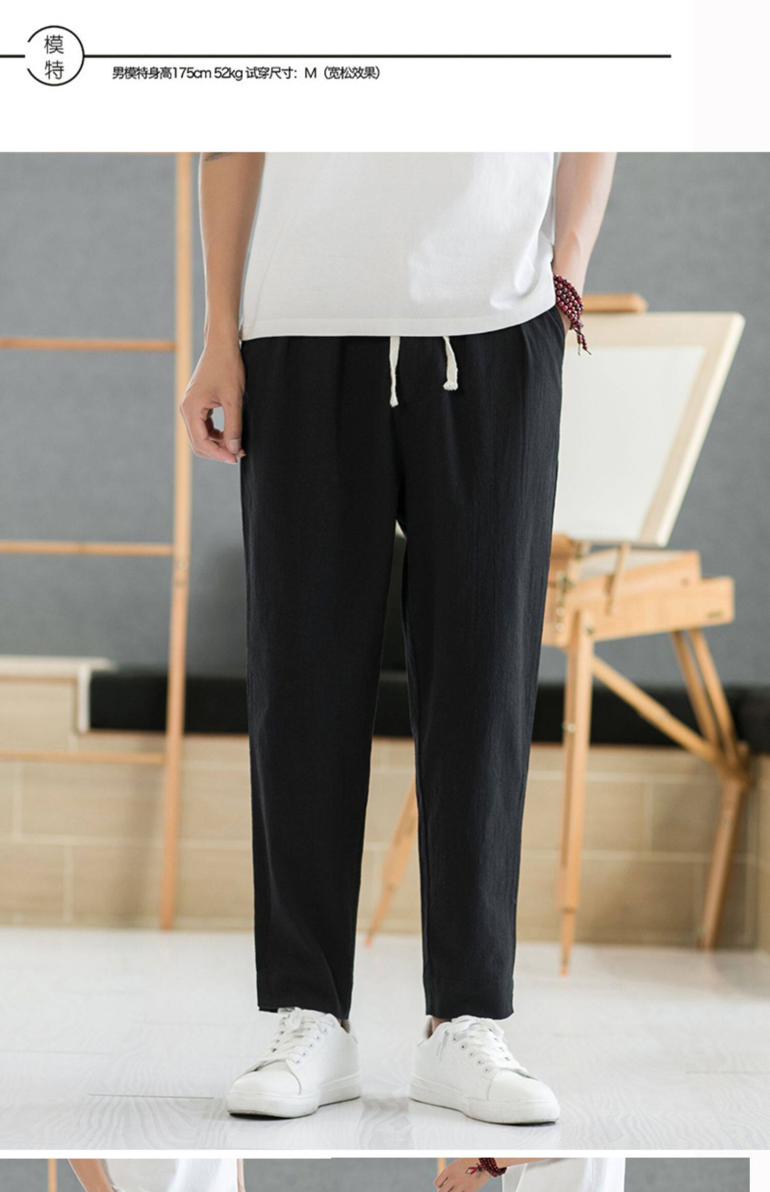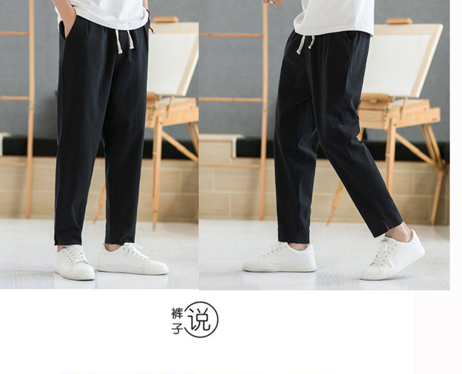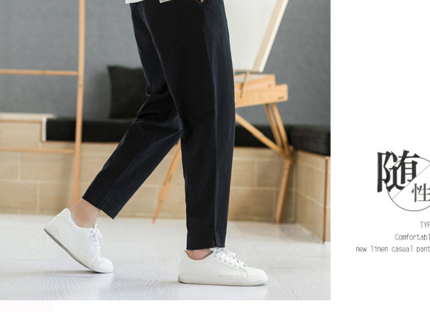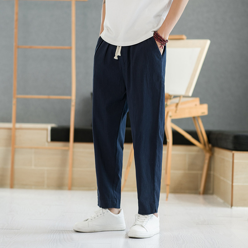 Летние тонкие штаны, из хлопка и льна, свободный прямой крой, китайский стиль