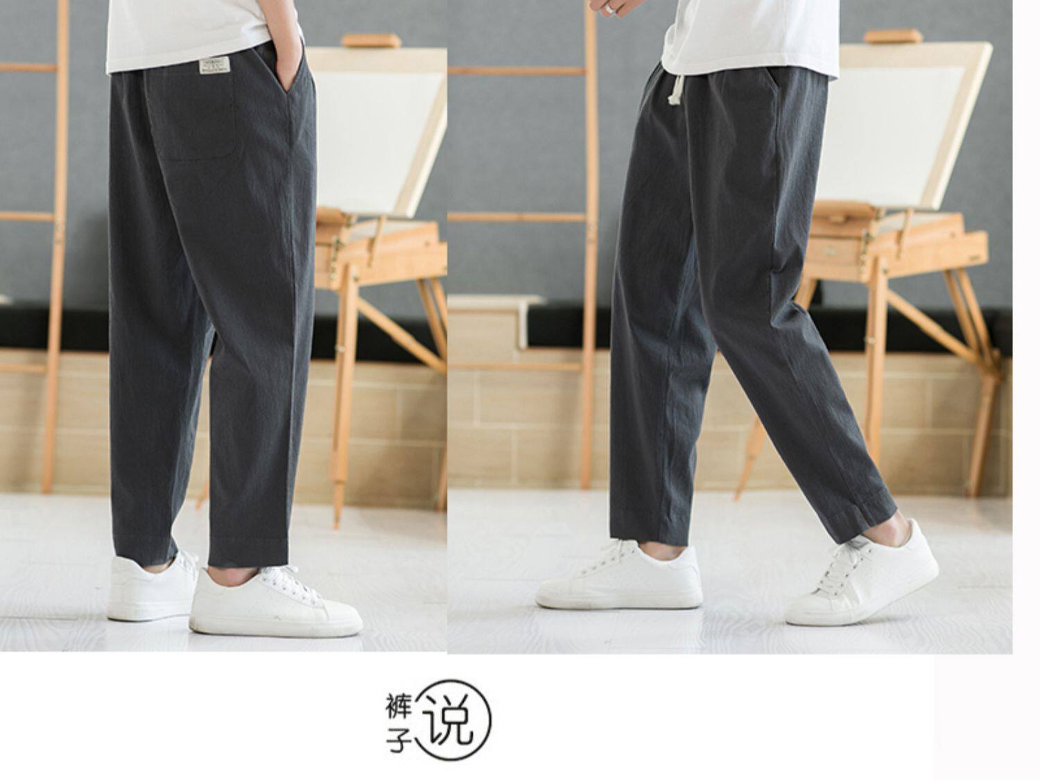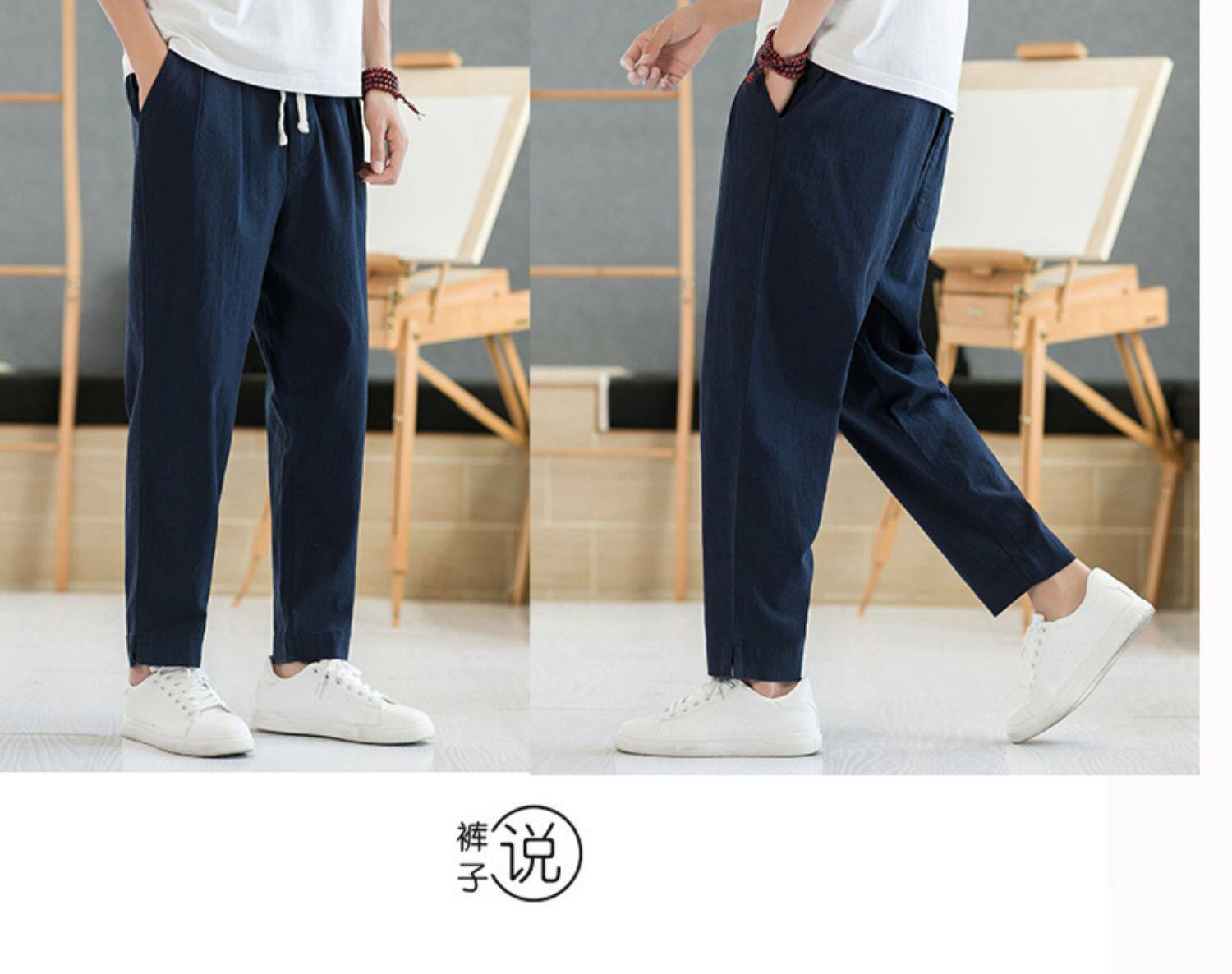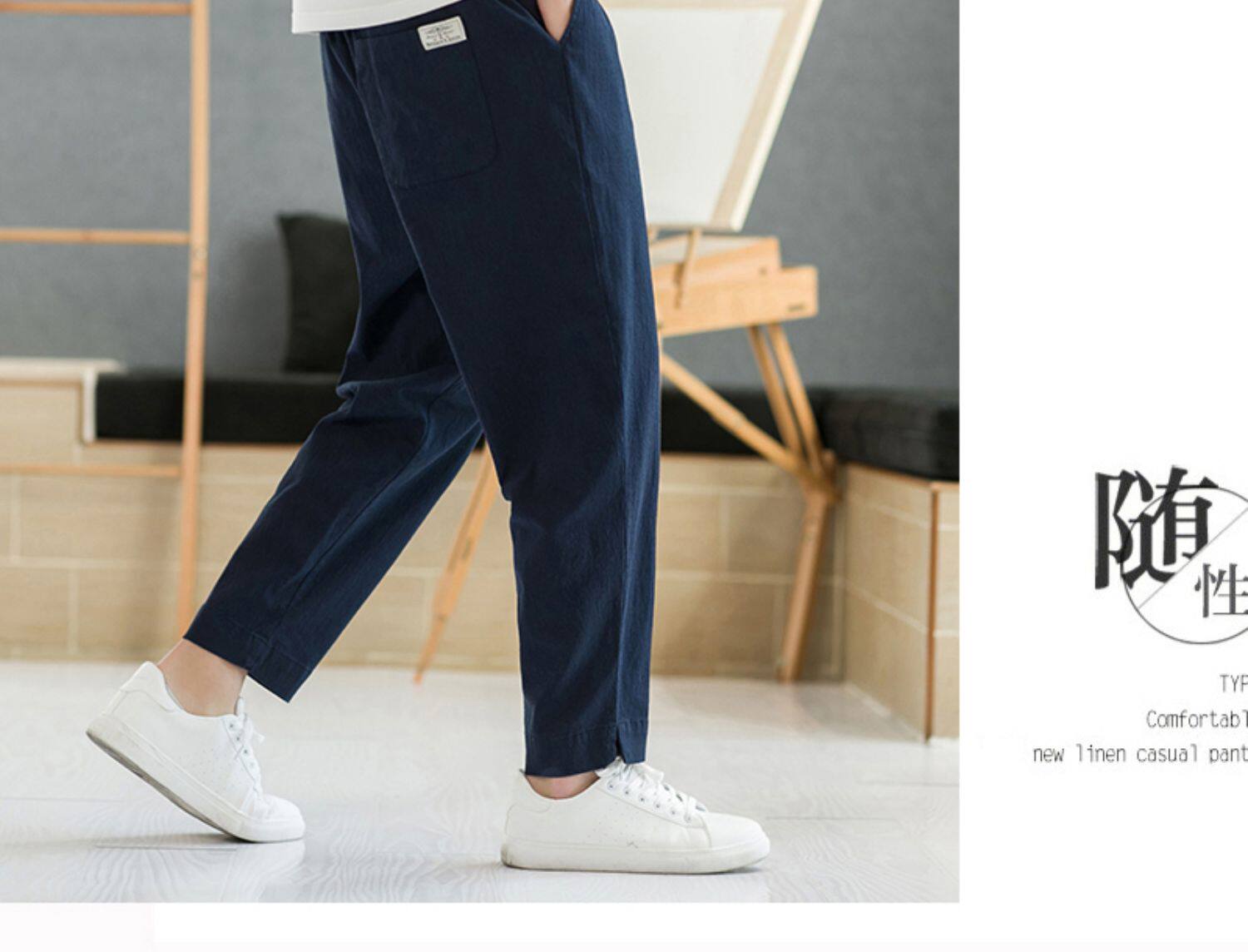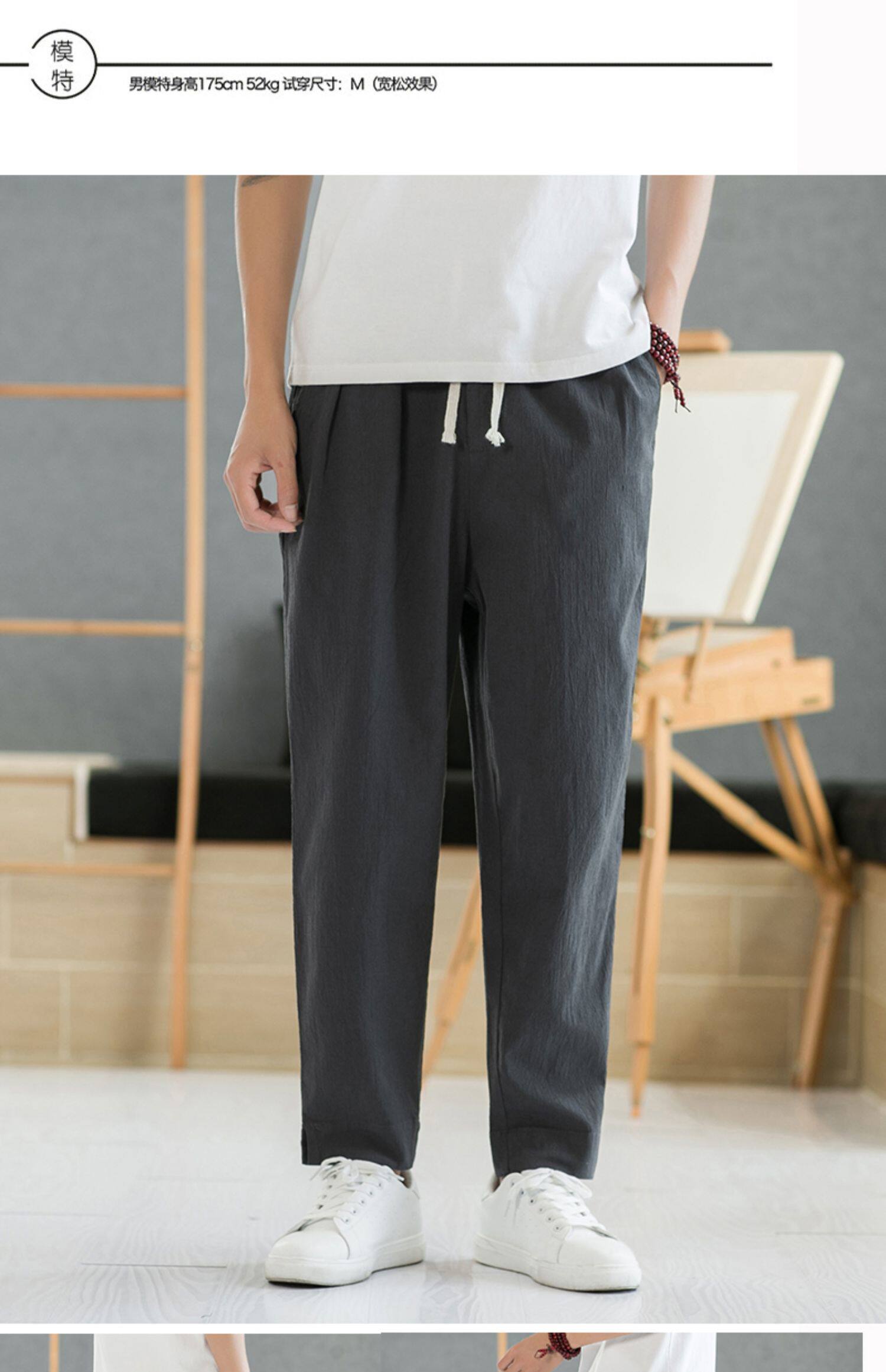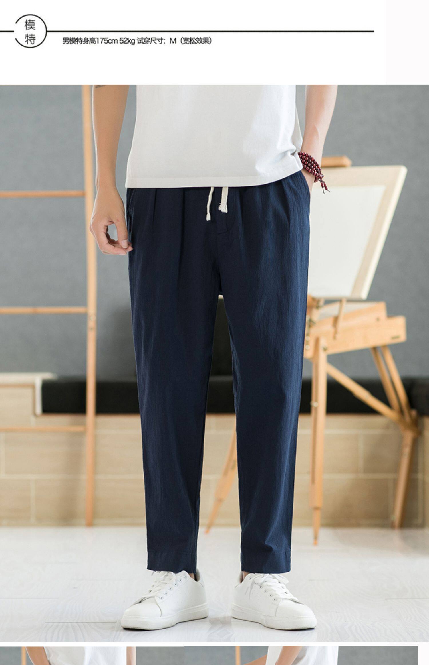 Летние тонкие штаны, из хлопка и льна, свободный прямой крой, китайский стиль
