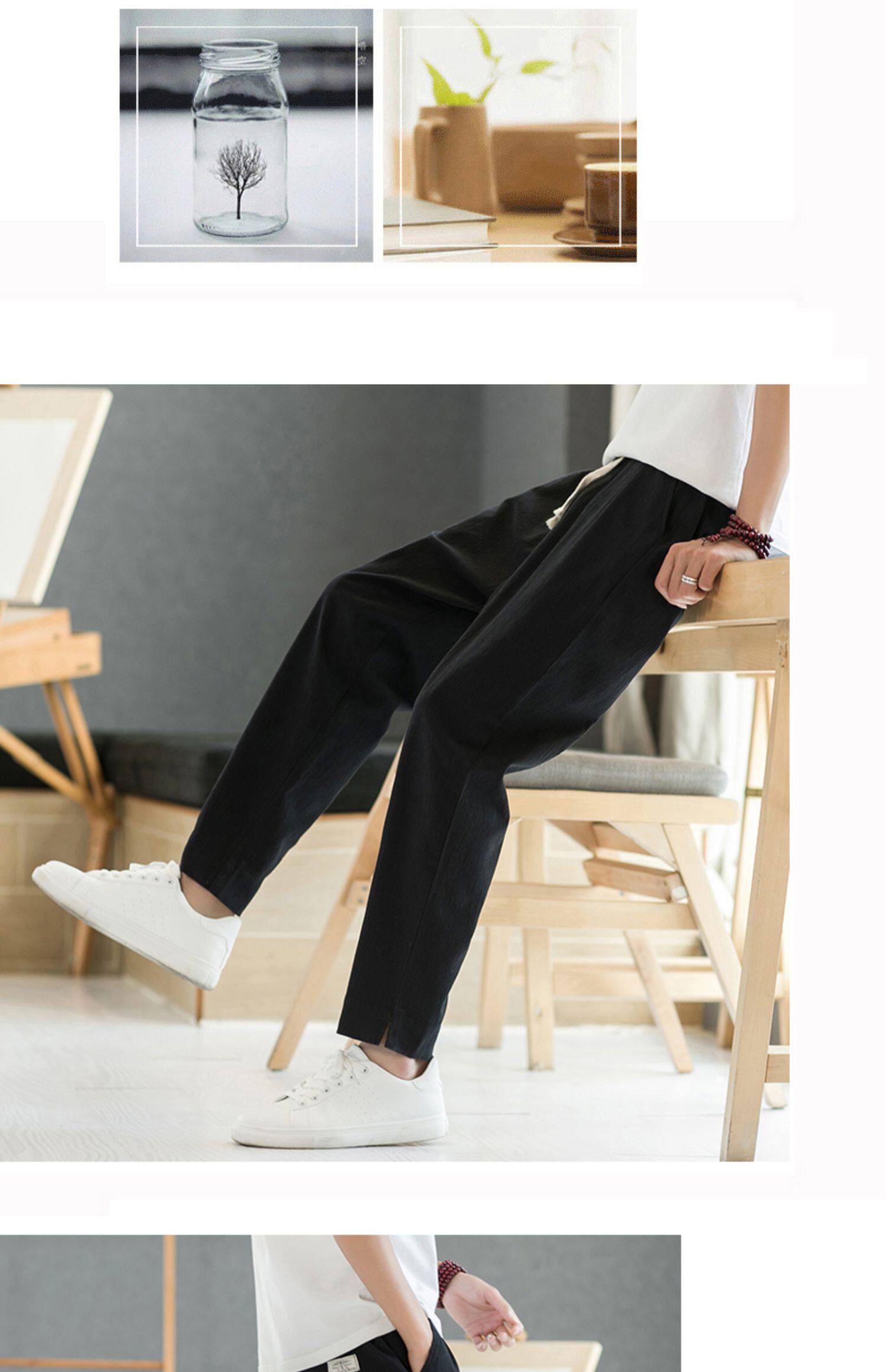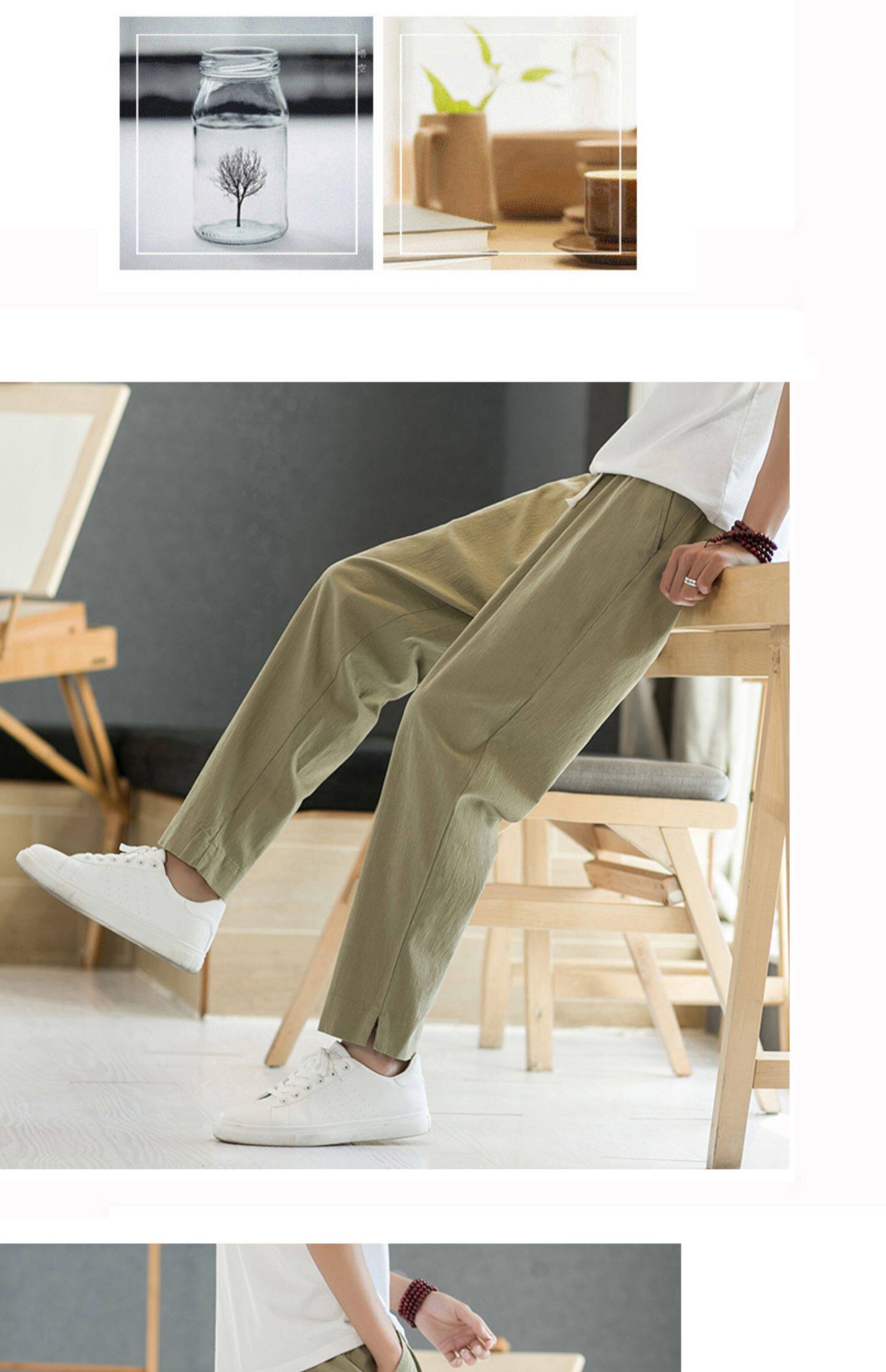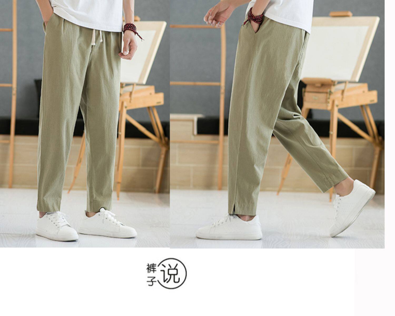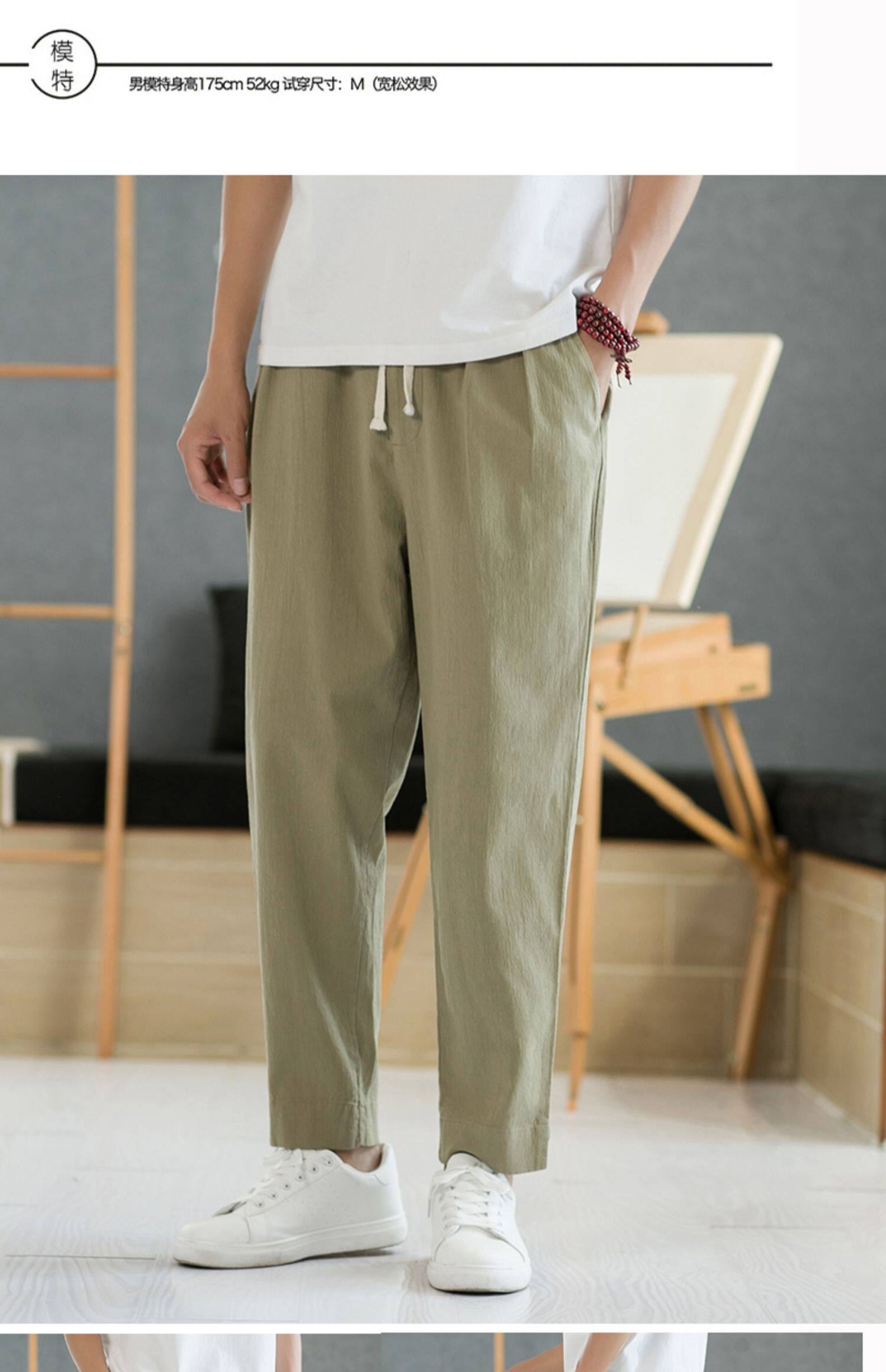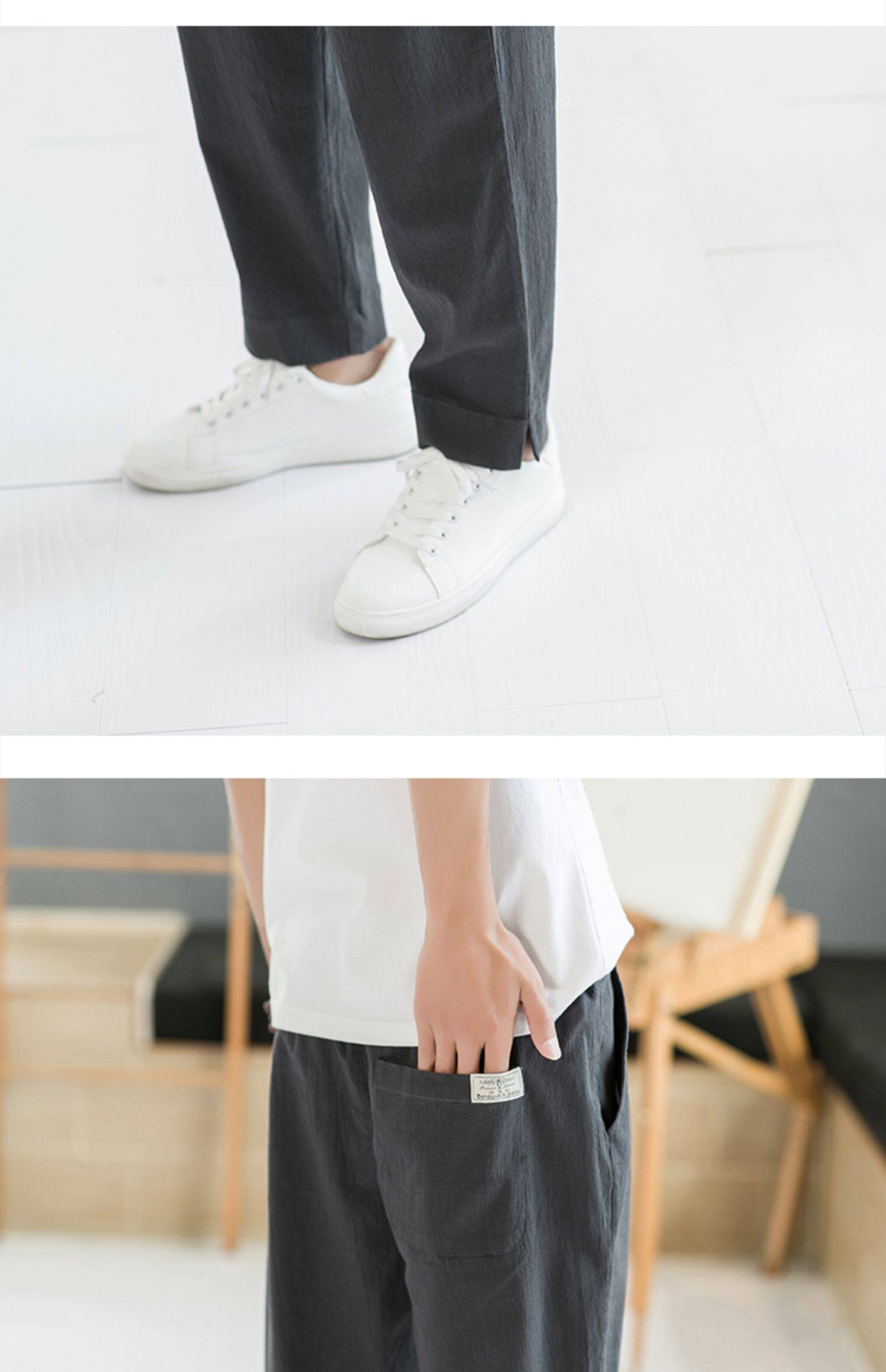 Летние тонкие штаны, из хлопка и льна, свободный прямой крой, китайский стиль