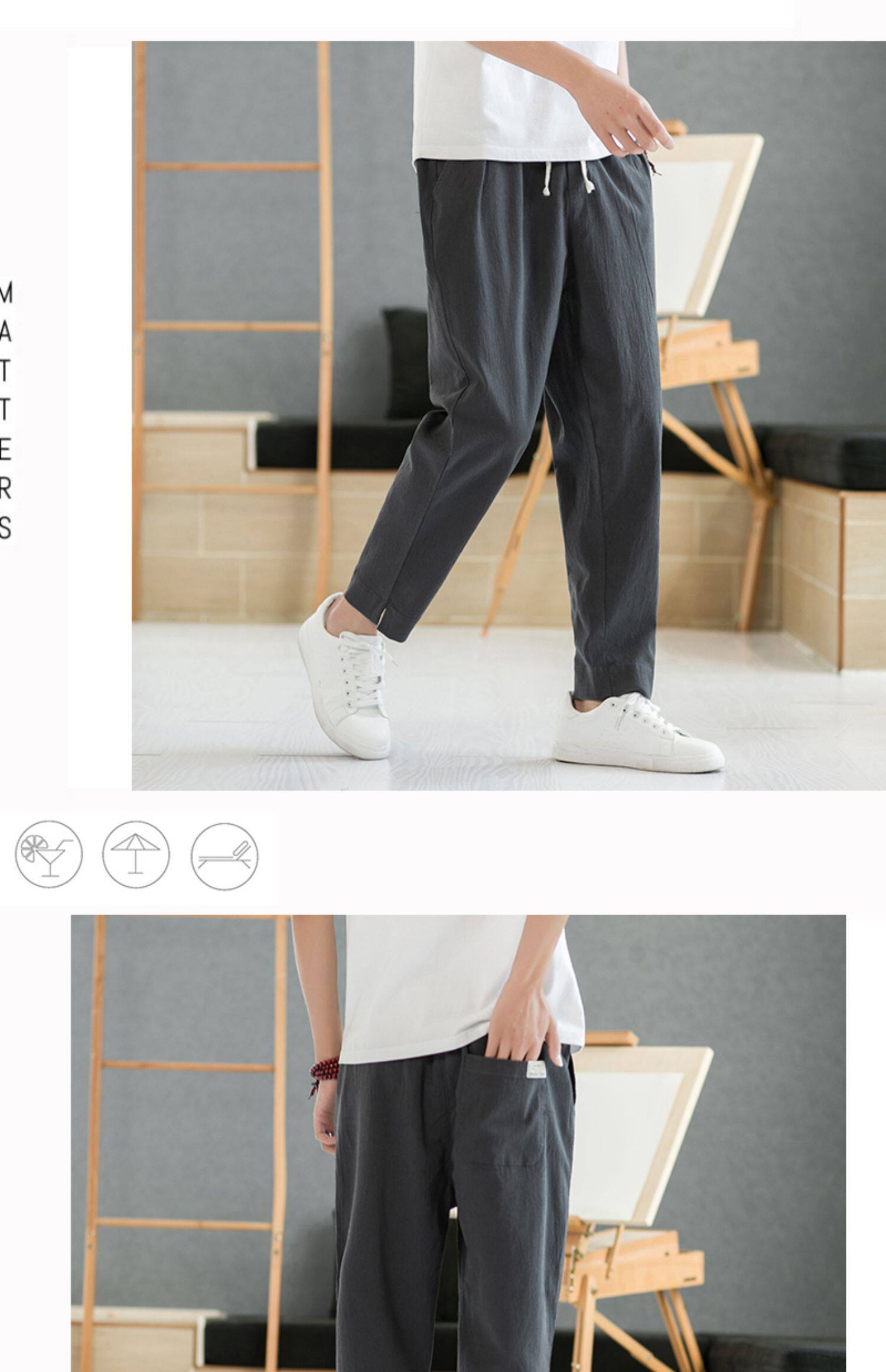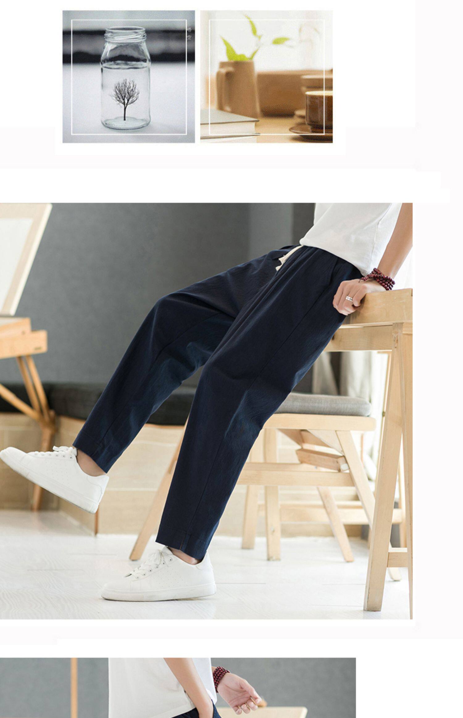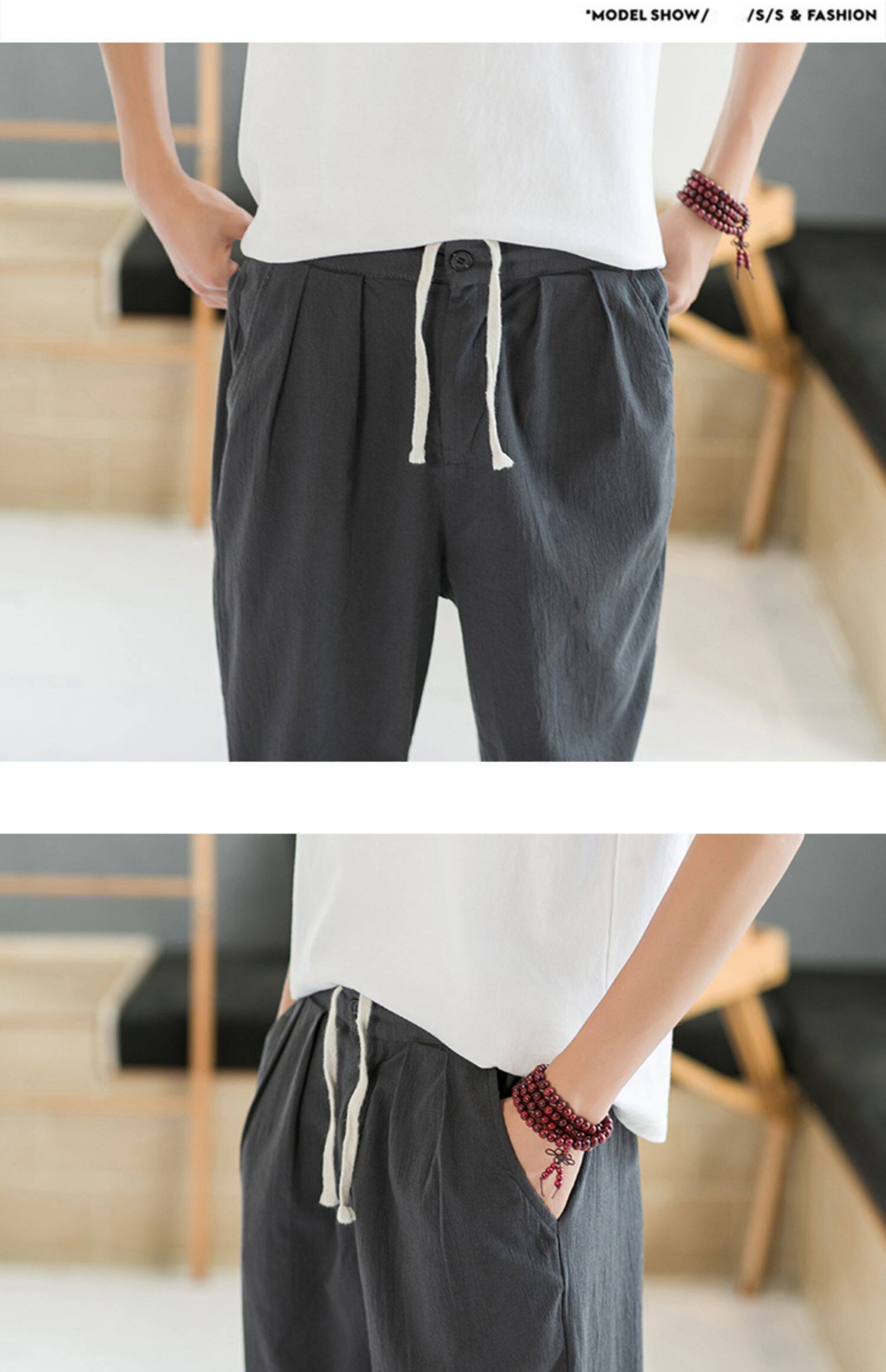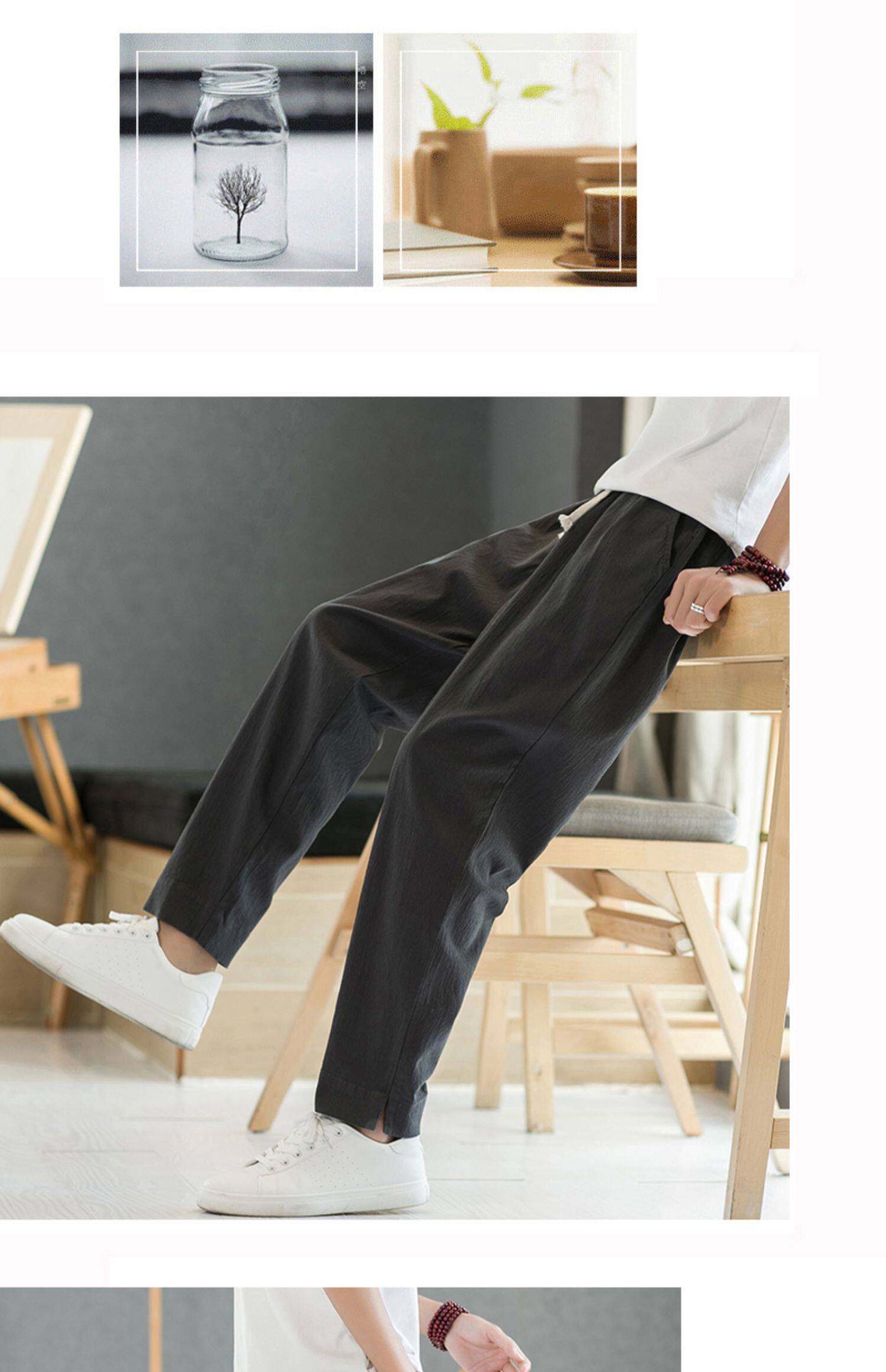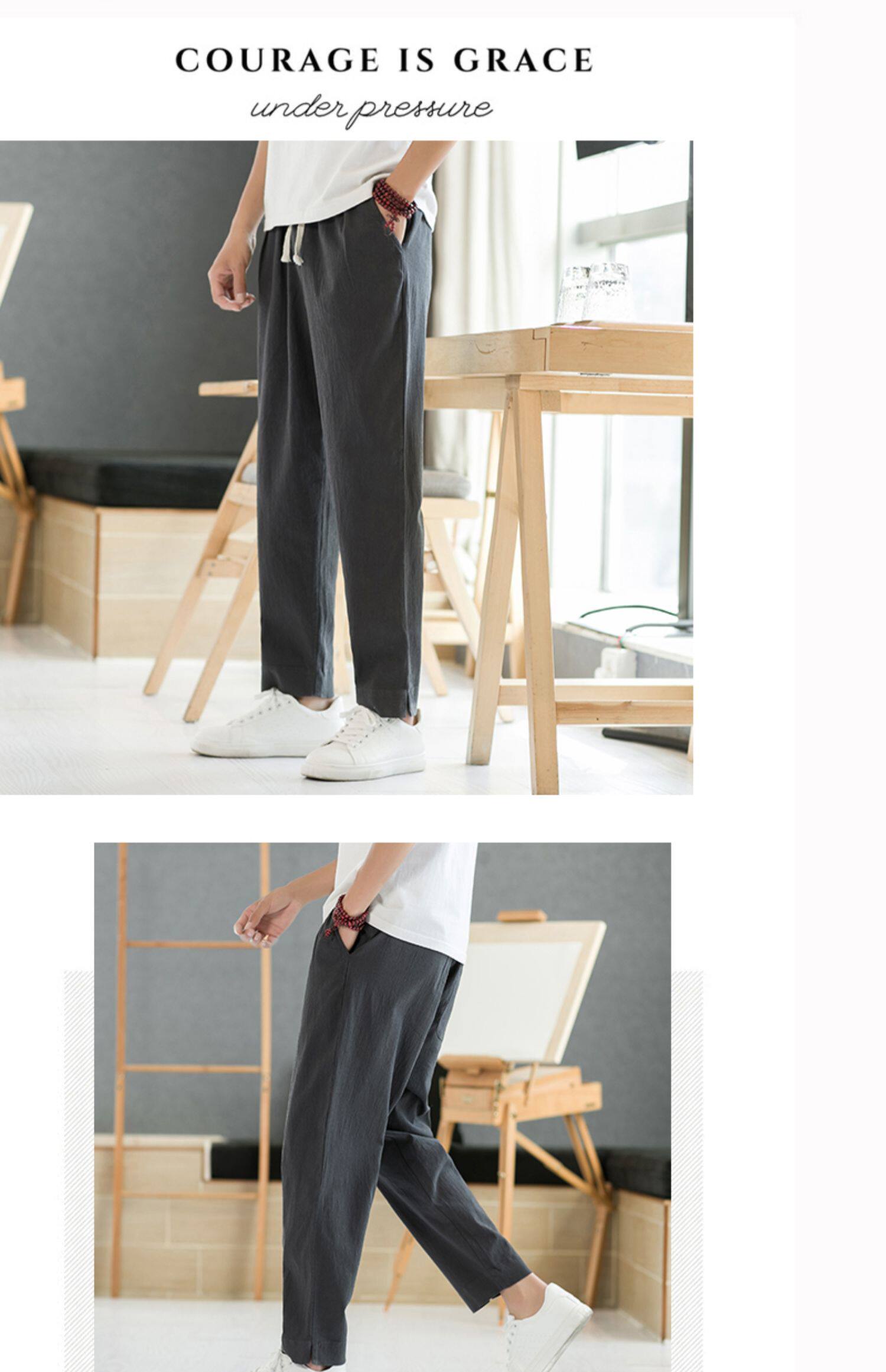 Летние тонкие штаны, из хлопка и льна, свободный прямой крой, китайский стиль