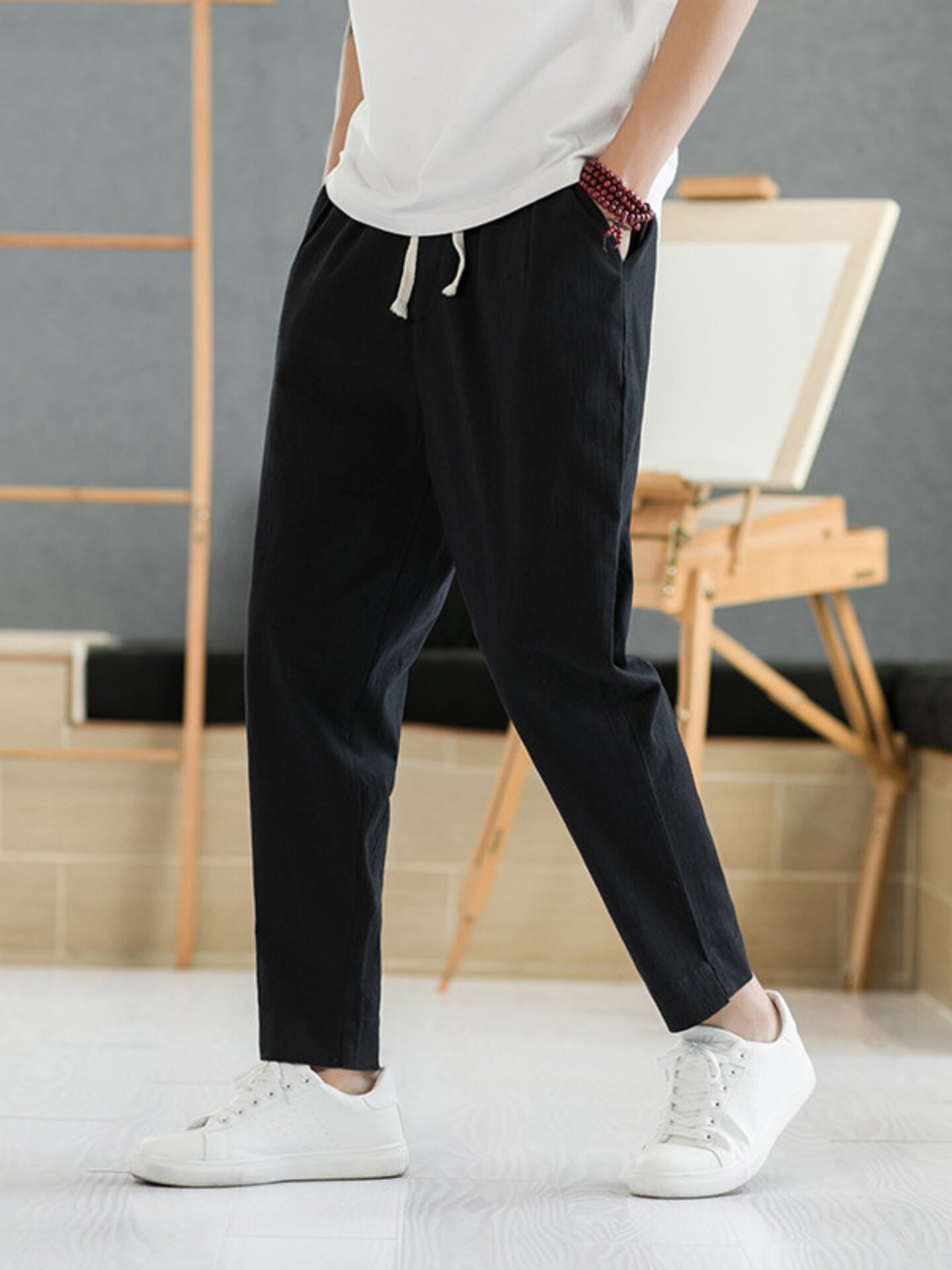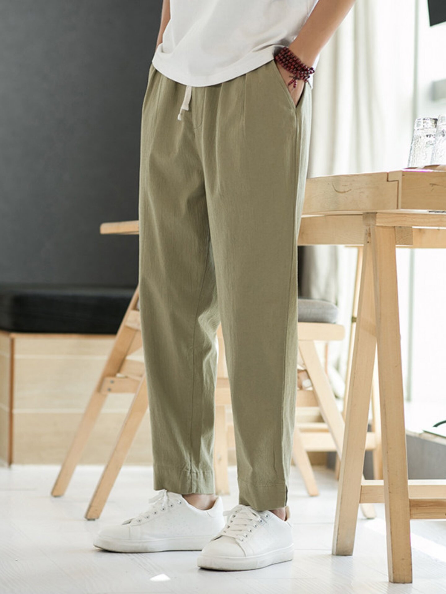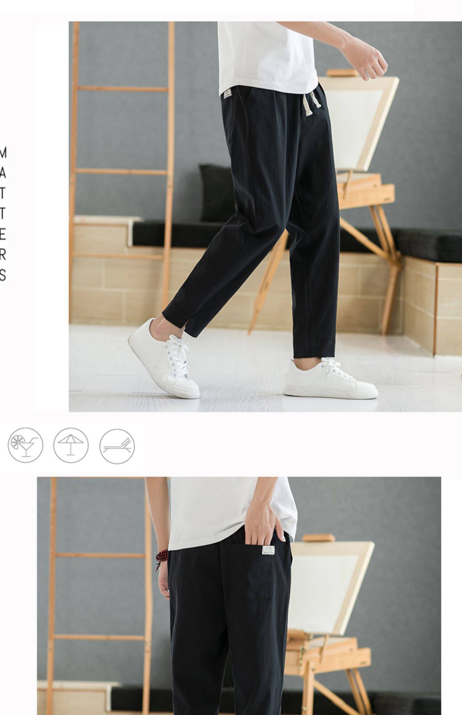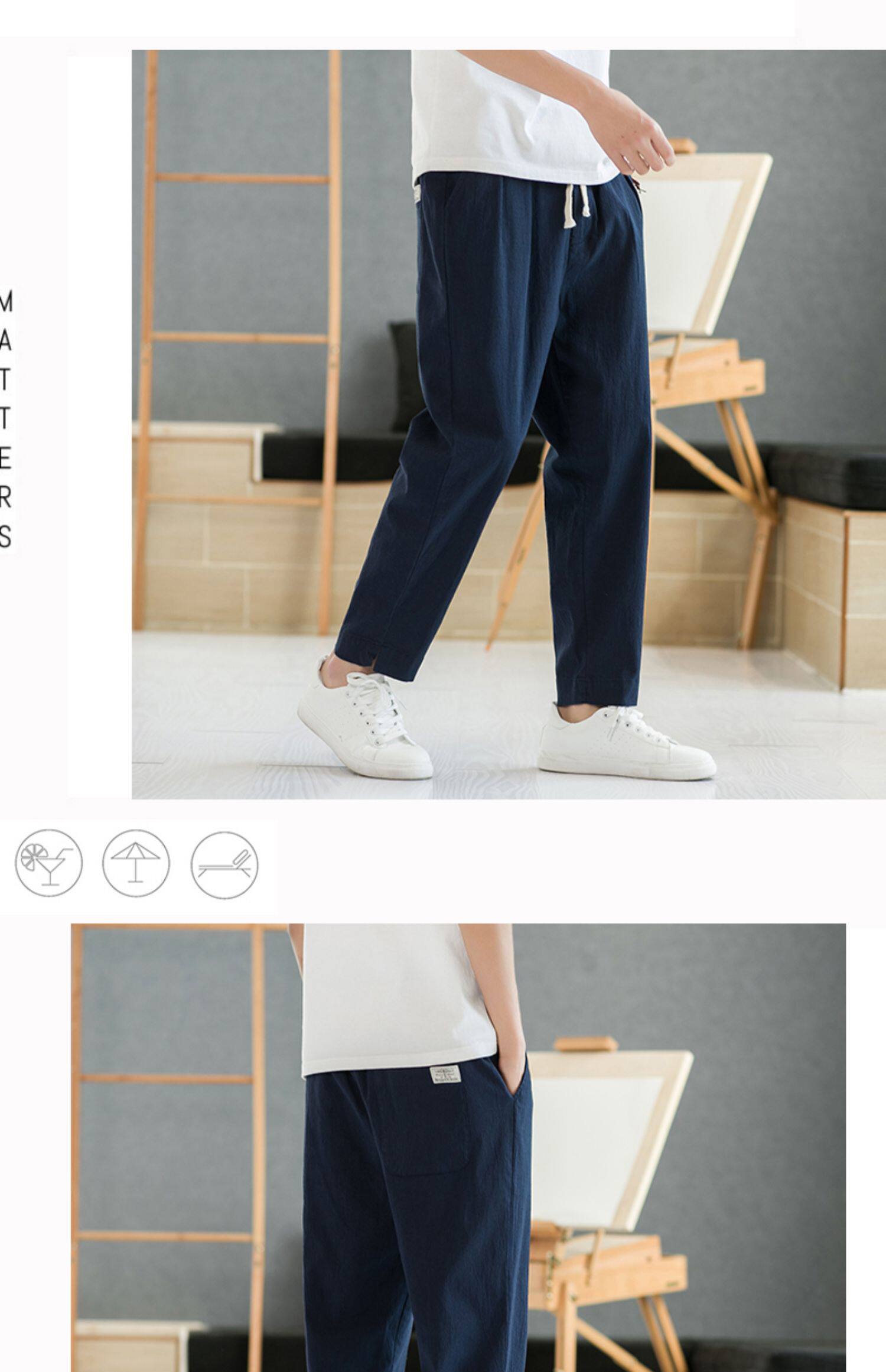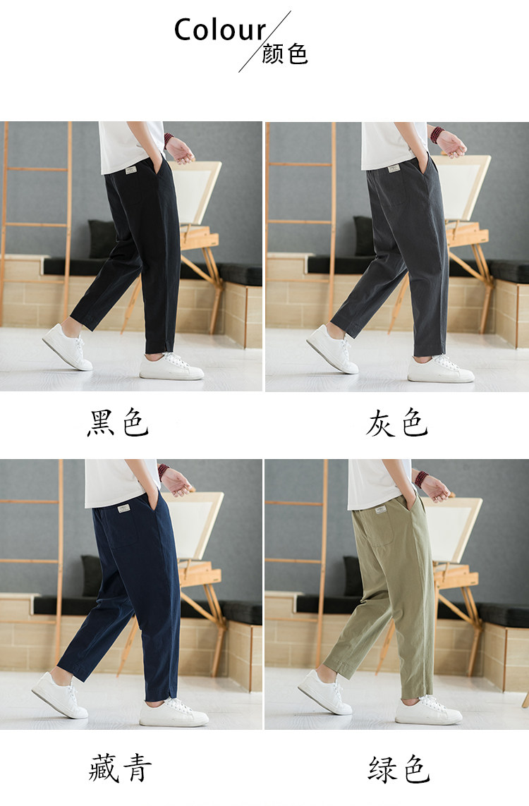 Летние тонкие штаны, из хлопка и льна, свободный прямой крой, китайский стиль