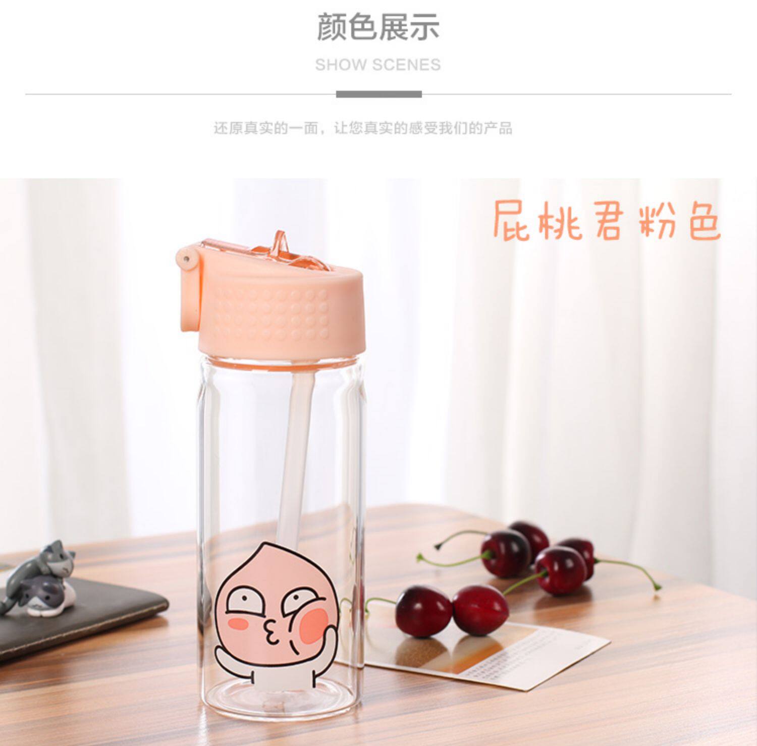 TikTok, милая стеклянная портативная детская трубочка со стаканом для школьников