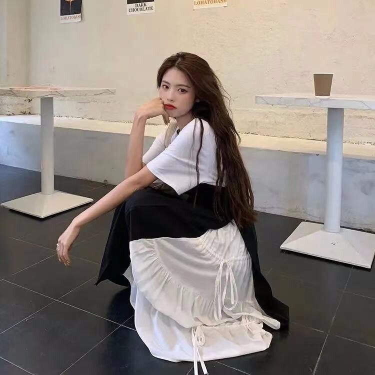 Платье, комплект, дизайнерская длинная юбка, в западном стиле, французский стиль, коллекция 2022, эффект подтяжки, большой размер, тренд сезона
