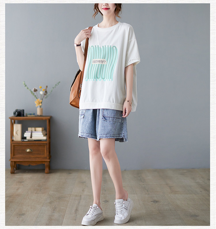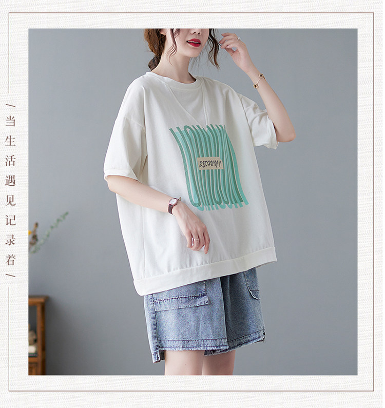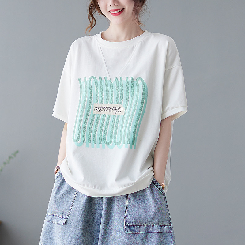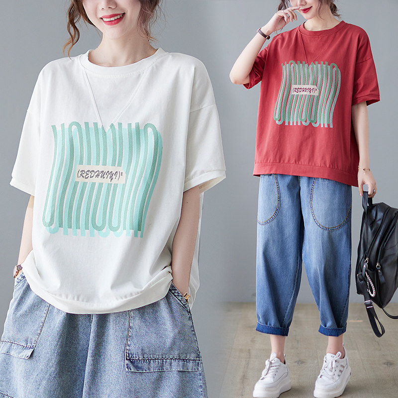 Летняя футболка с коротким рукавом с круглым воротником, большой размер, коллекция 2021, свободный крой, подходит для полных девушек, по фигуре