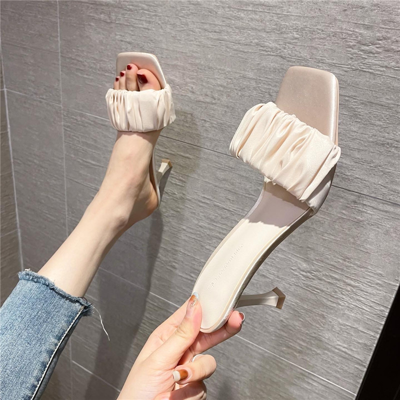 Летние универсальные слайдеры, тапочки, туфли на высоком каблуке, обувь, 2023, популярно в интернете, французский стиль