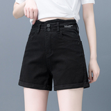 Черная джинсовая юбка, шорты, летние тонкие штаны, высокая талия, свободный крой, А-силуэт, большой размер
