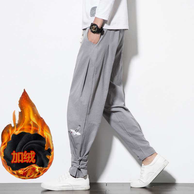 18 зимних утолщенных флисовых шароваров в стиле ретро, мужская мода c