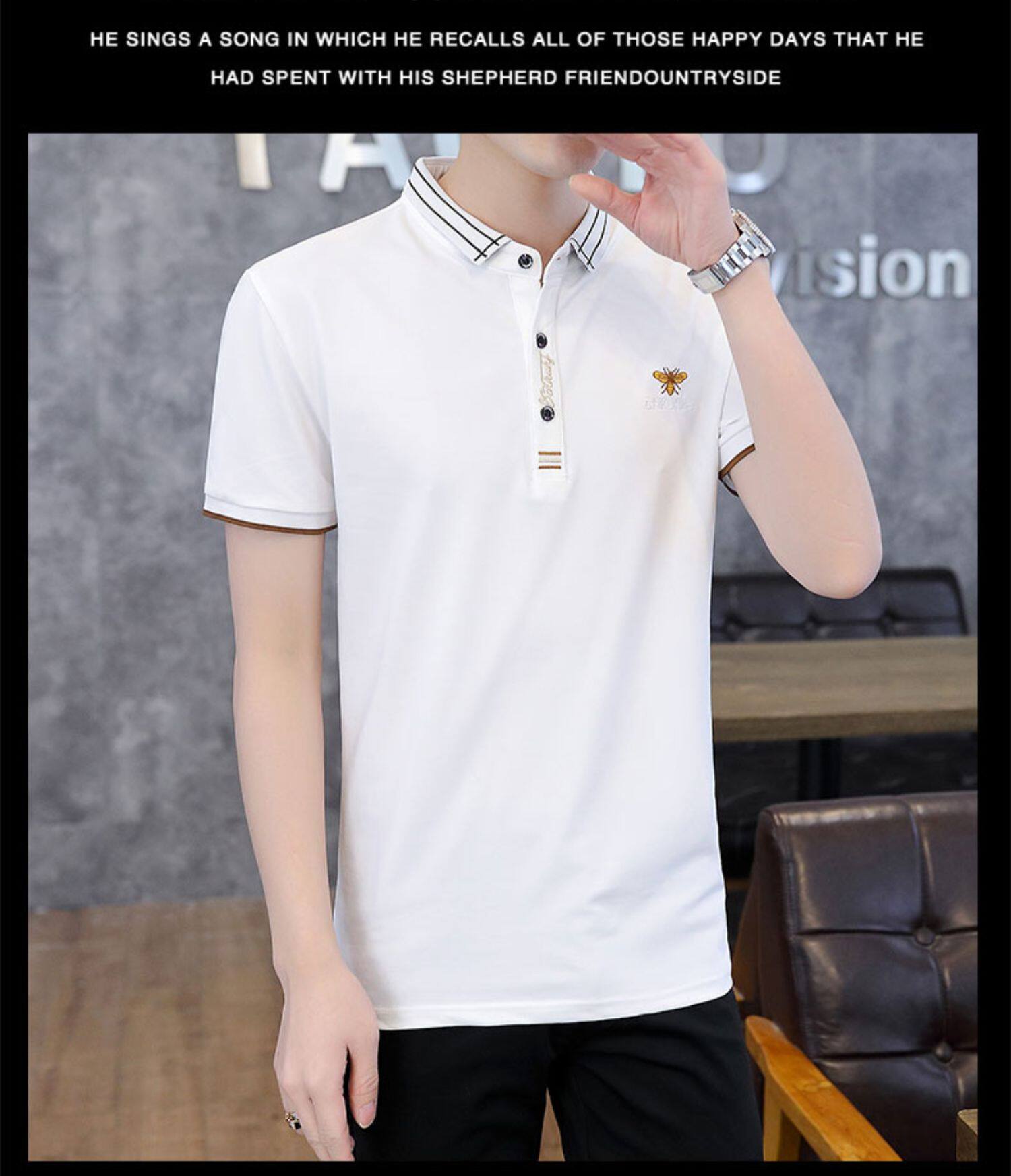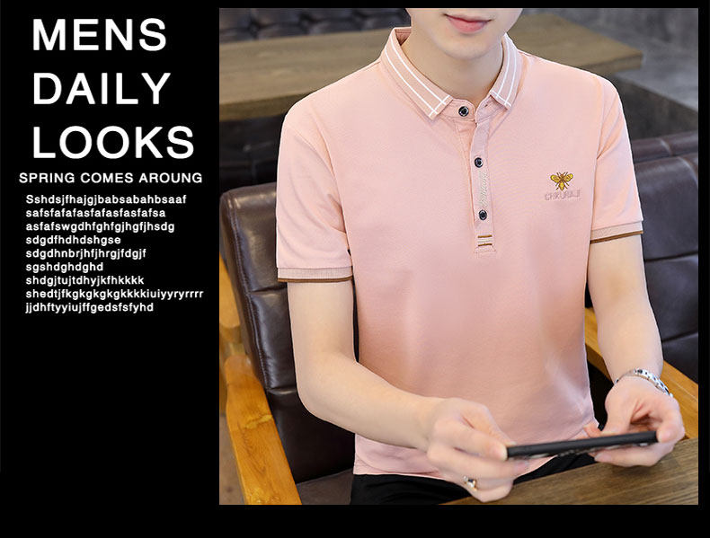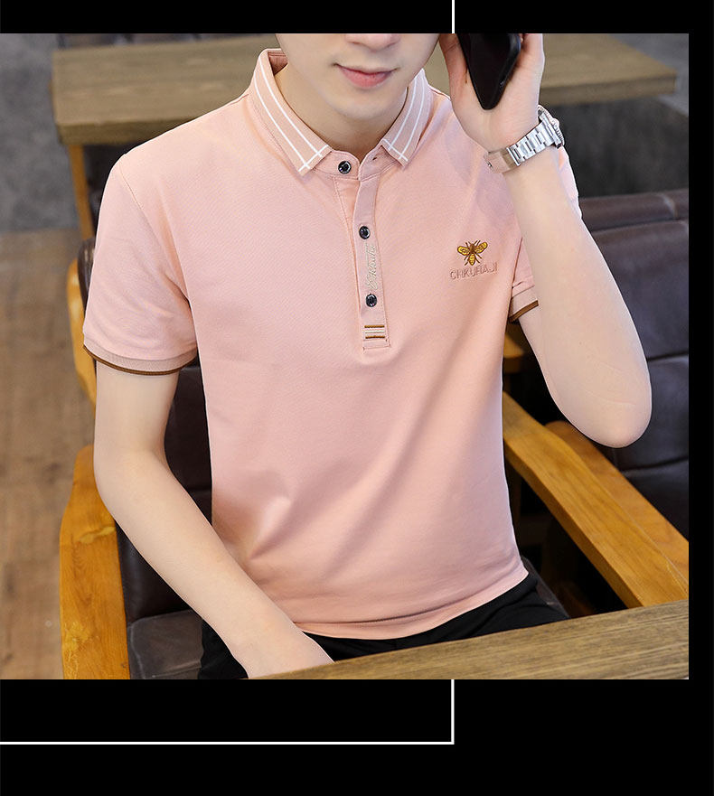 Летняя шелковая хлопковая футболка polo, короткий рукав, в корейском стиле, облегающий крой